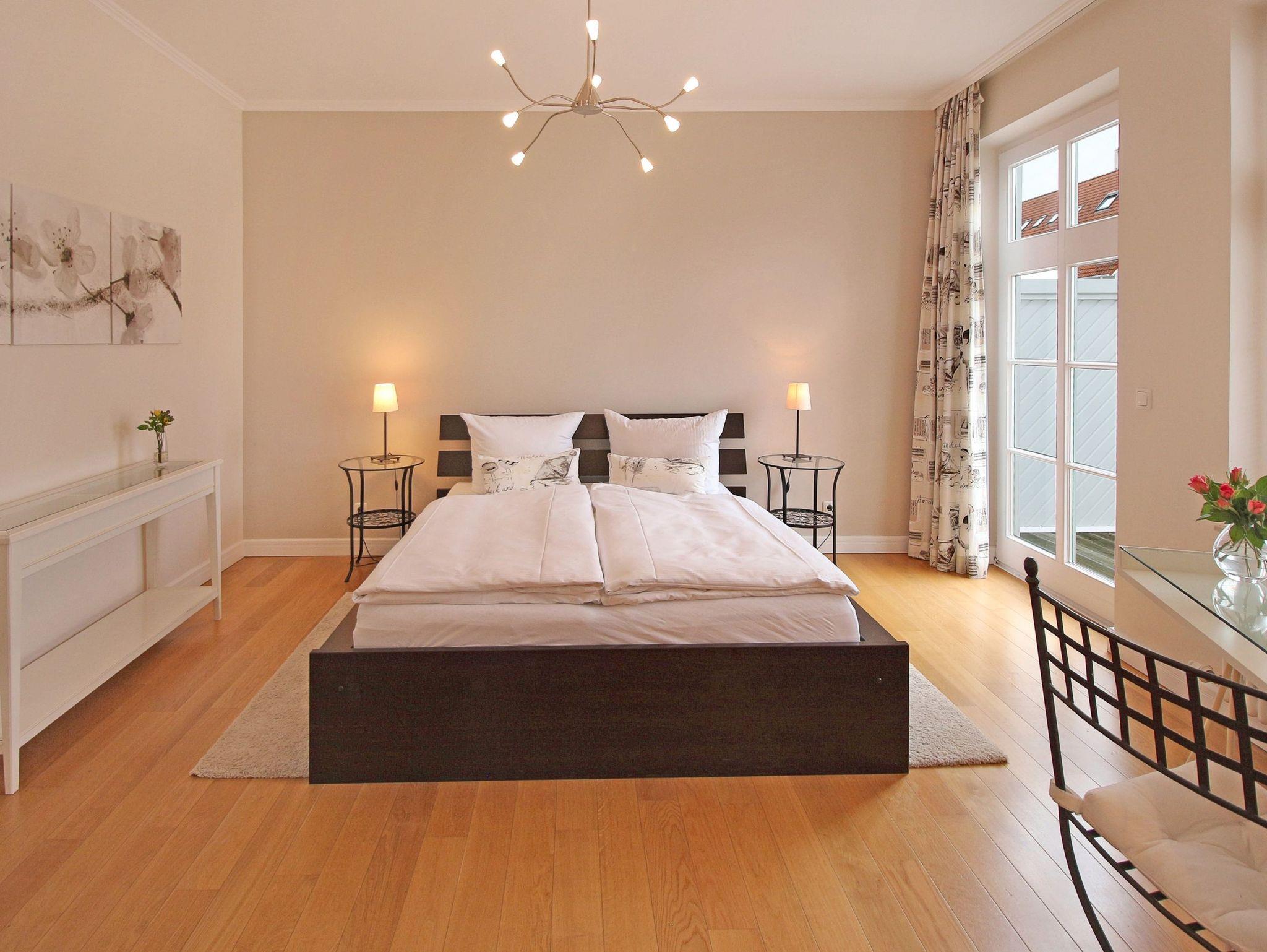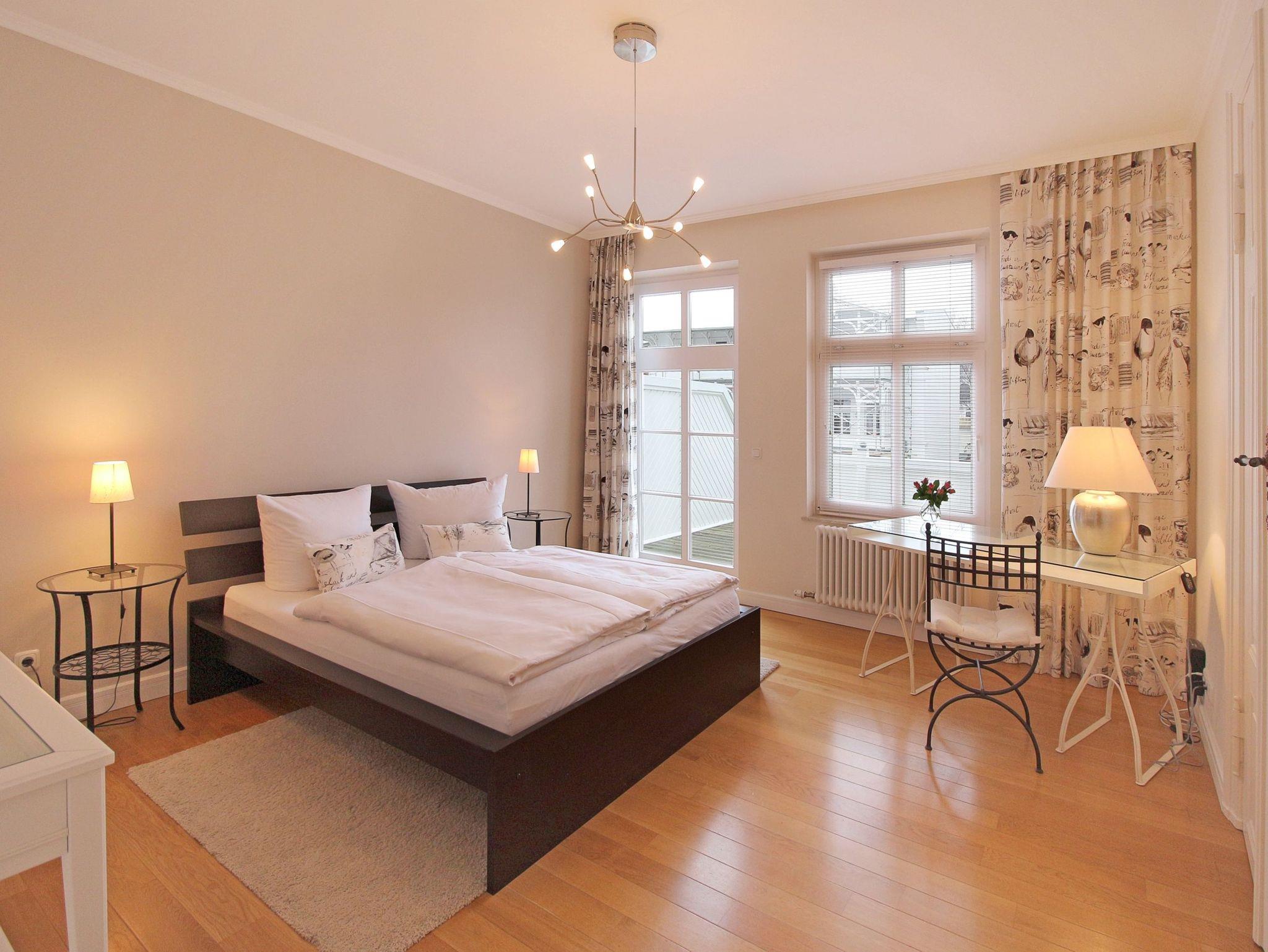 Von hier aus gelangen Sie auf den großen! Balkon - Sie können vom Balkon aus direkt bis zur Binzer Seebrücke und auf die Ostsee schauen. Im zweiten Schlafzimmer befindet sich ebenfalls ein weiteres Doppelbett. Das großzügige Bad bietet neben Dusche und WC auch eine Badewanne.