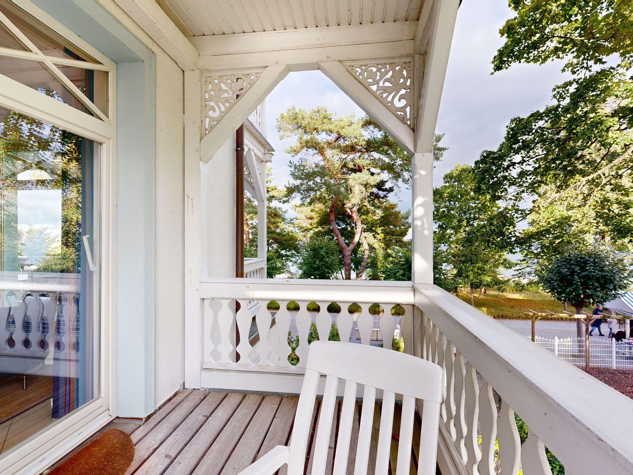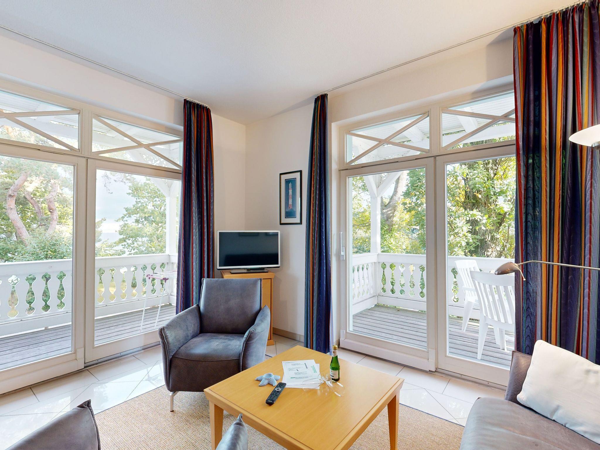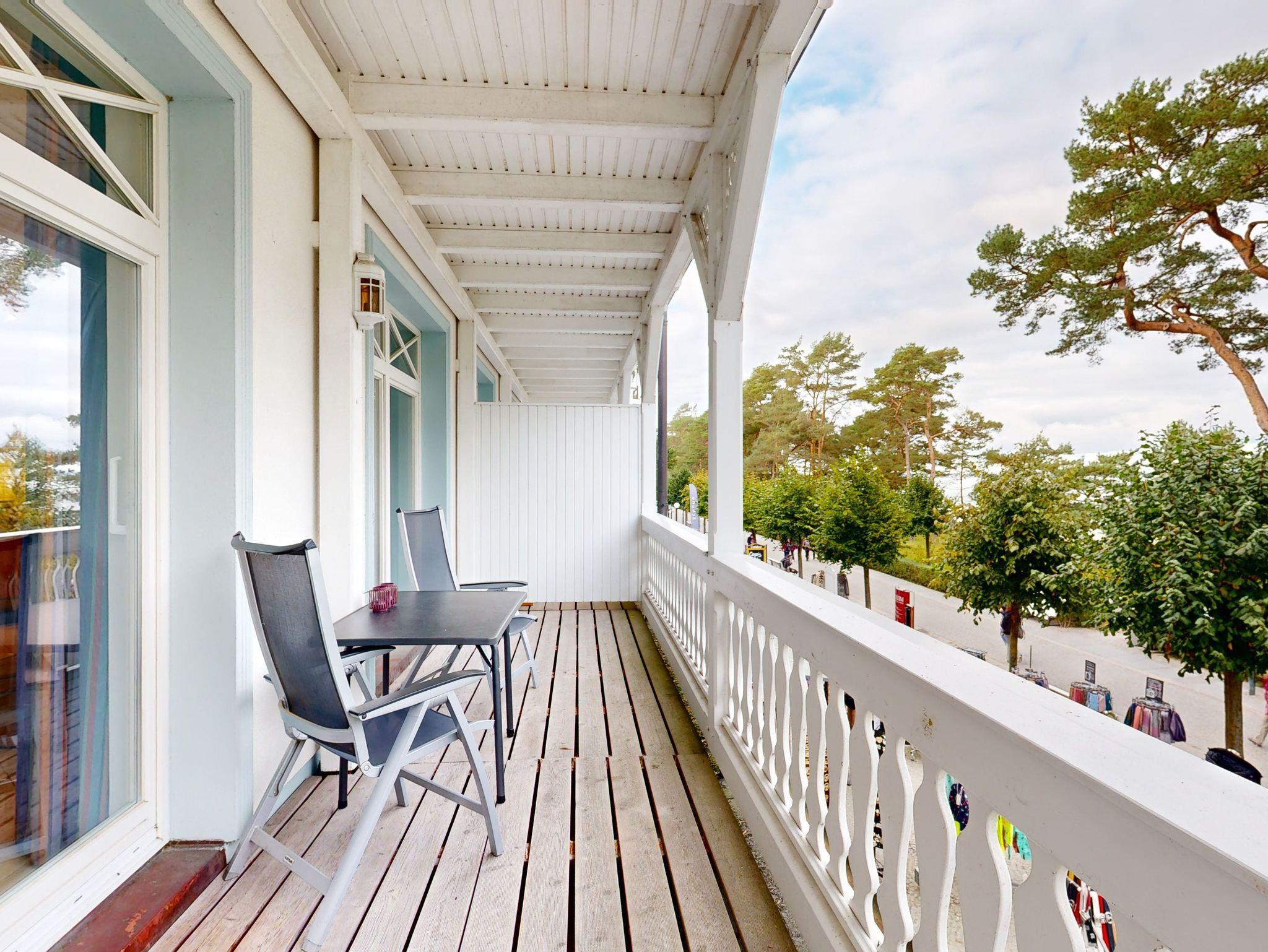 4-Sterne-Ferienwohnung in der Villa Strandburg im 1. OG (2 Zimmer / 58 m²) mit 2 großen Balkone mit herrlichem Ostseeblick, Seebrücke und Kreidefelsen.