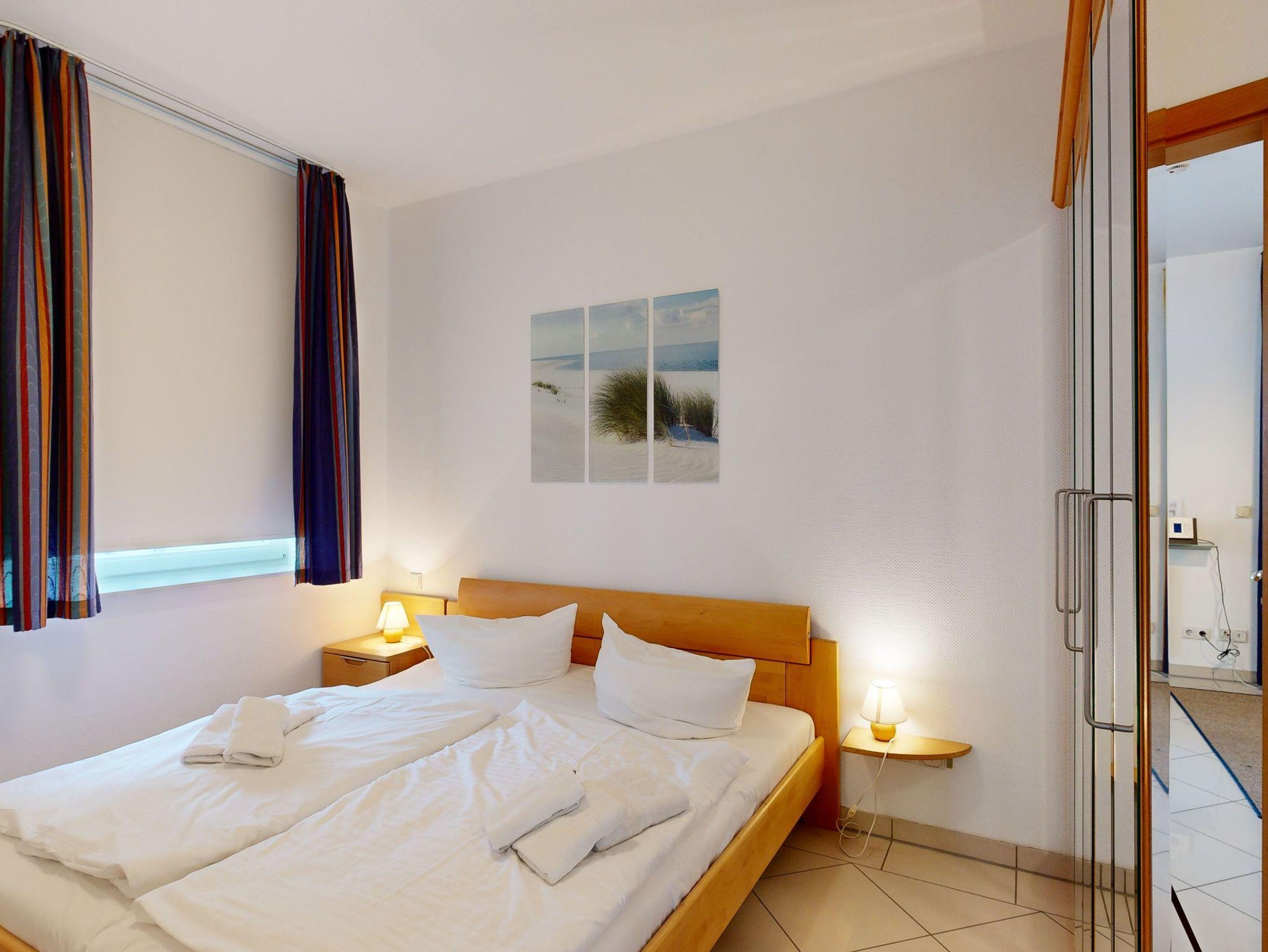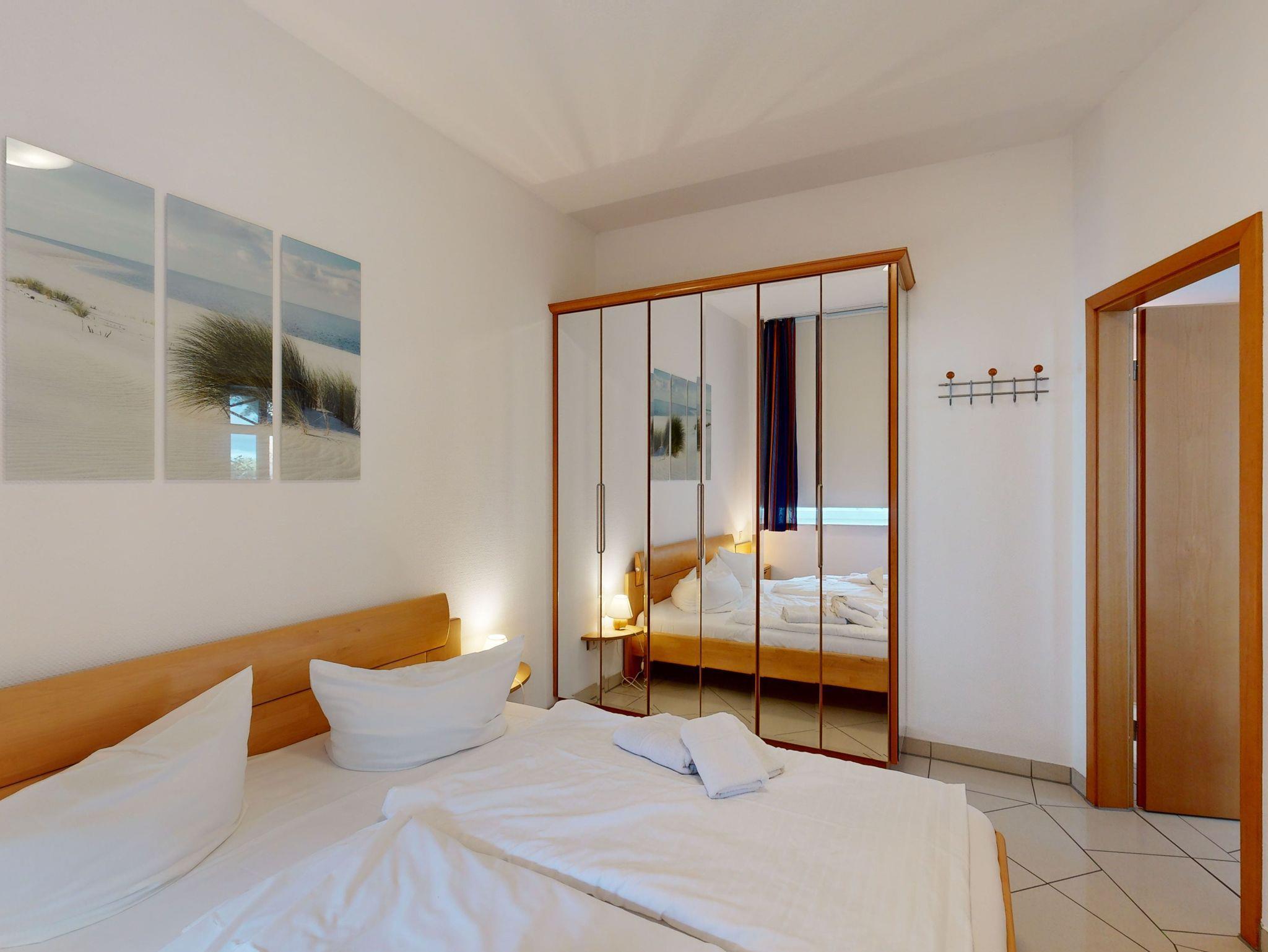 * 1 Schlafzimmer mit einem Doppelbett (180 x 200 cm), getrennte Matratzen
