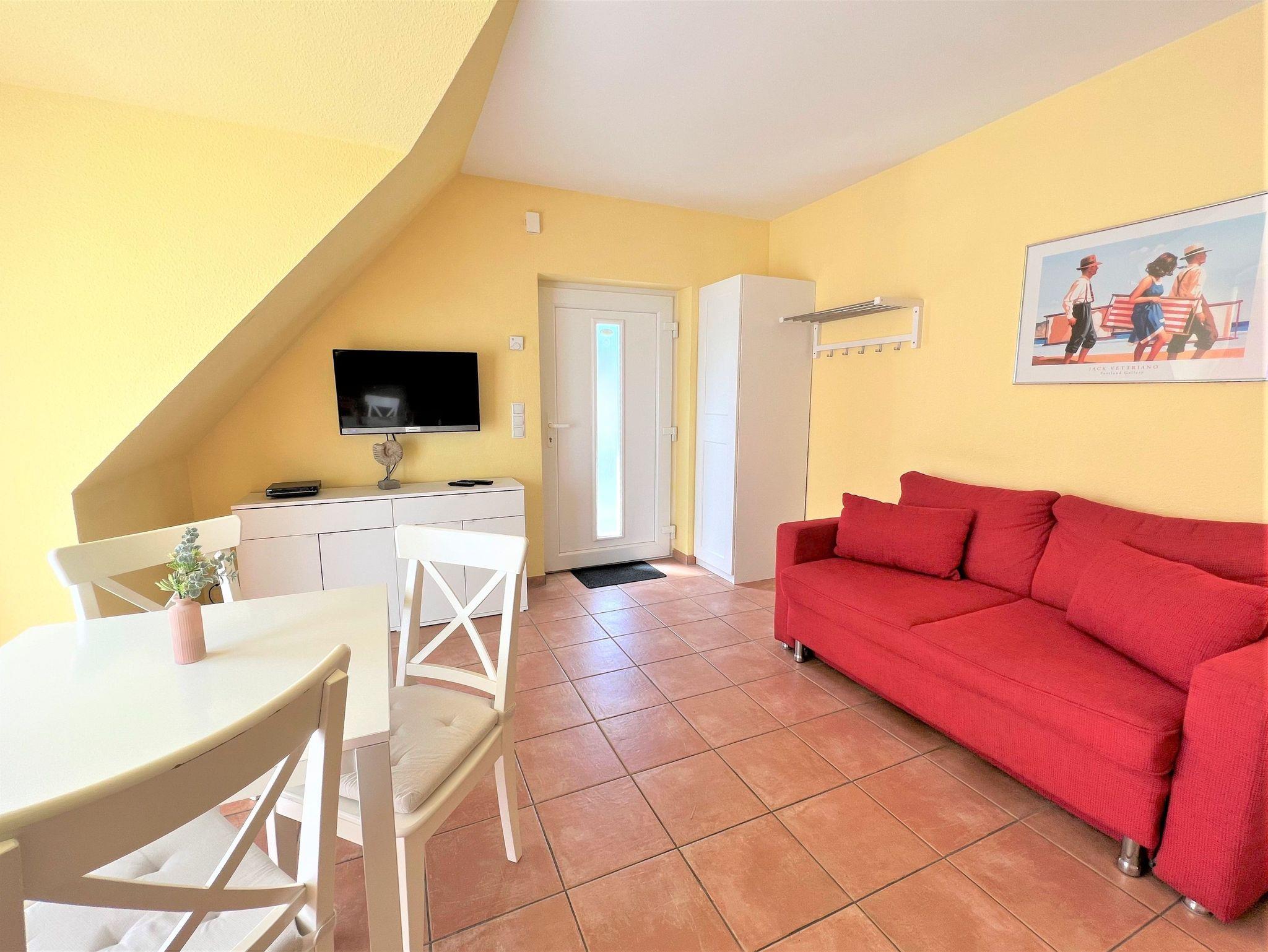 Das schöne 2-Zimmer-Apartment (40m²) befindet sich in der Dollahner Straße 15f im Ostseebad Binz auf Rügen. Die Wohnung ist komplett ausgestattet und bietet alles, was Sie für einen erholsamen Aufenthalt benötigen. Das Apartment verfügt über ein Schlafzimmer mit Doppelbett, ein Wohnzimmer mit Sofabetten für eine weitere Personen sowie eine komplette Küche mit Herd, Kühlschrank und Geschirrspülmaschine. Zu den weiteren Annehmlichkeiten gehören WLAN, Flachbildfernseher und ein Parkplatz auf dem Innenhof.