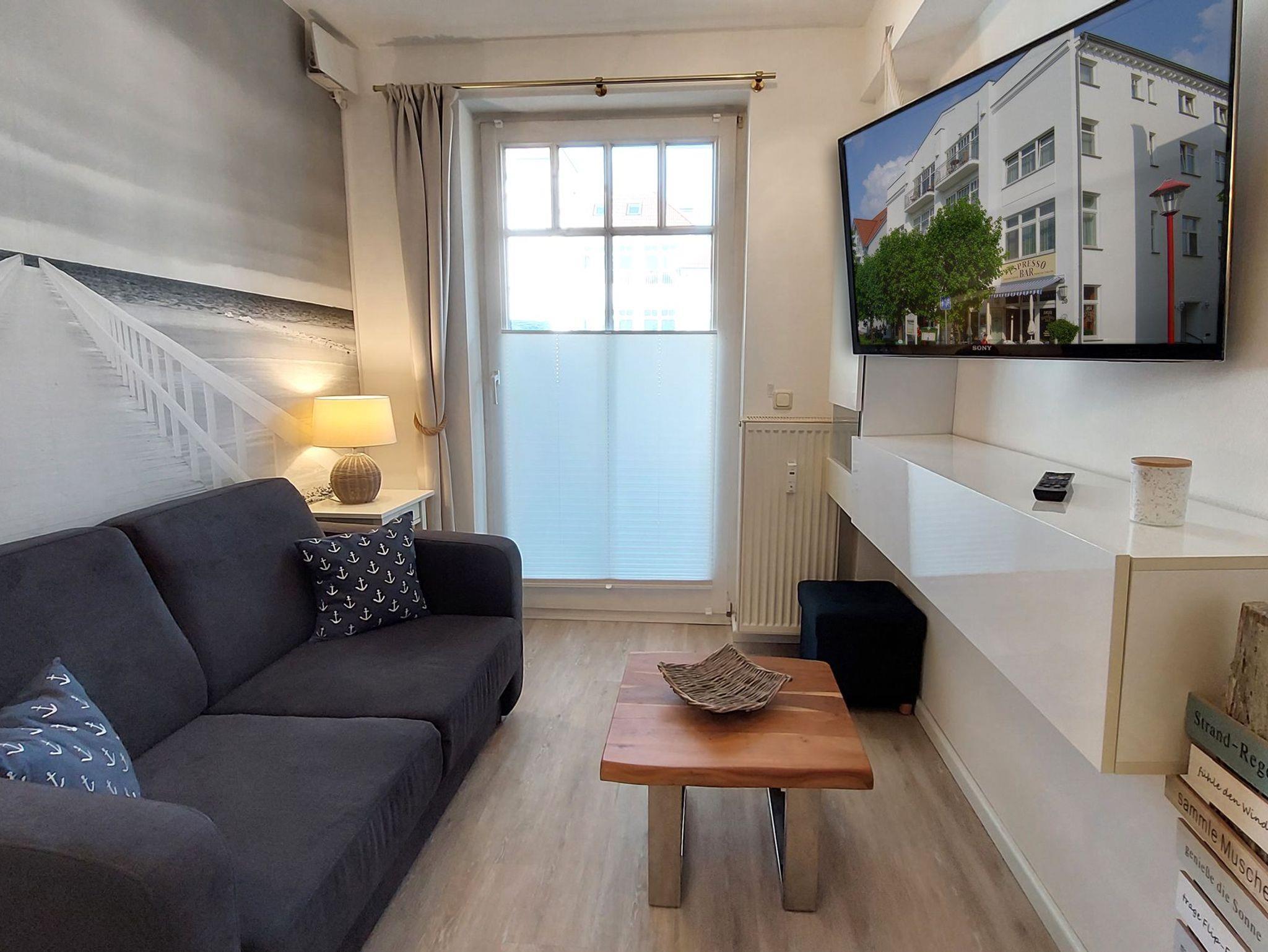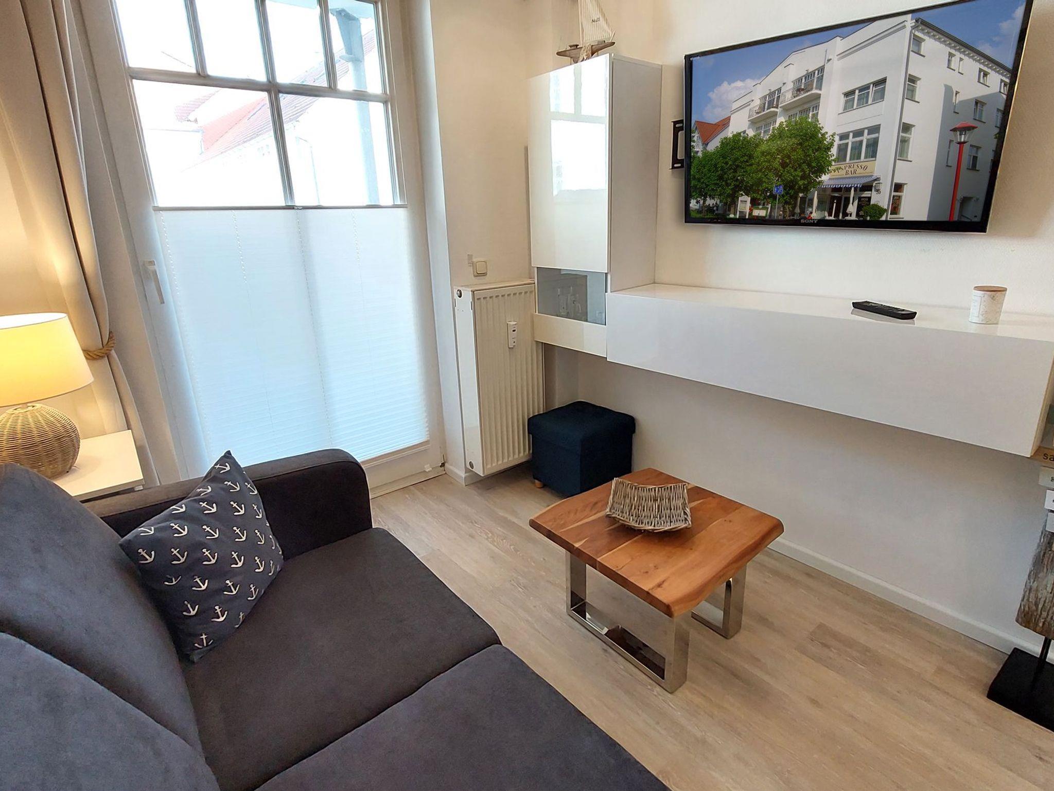 Das Apartment ist bequem per Fahrstuhl erreichbar und verfügt über einen Frühstücksbalkon Richtung Ostsee.