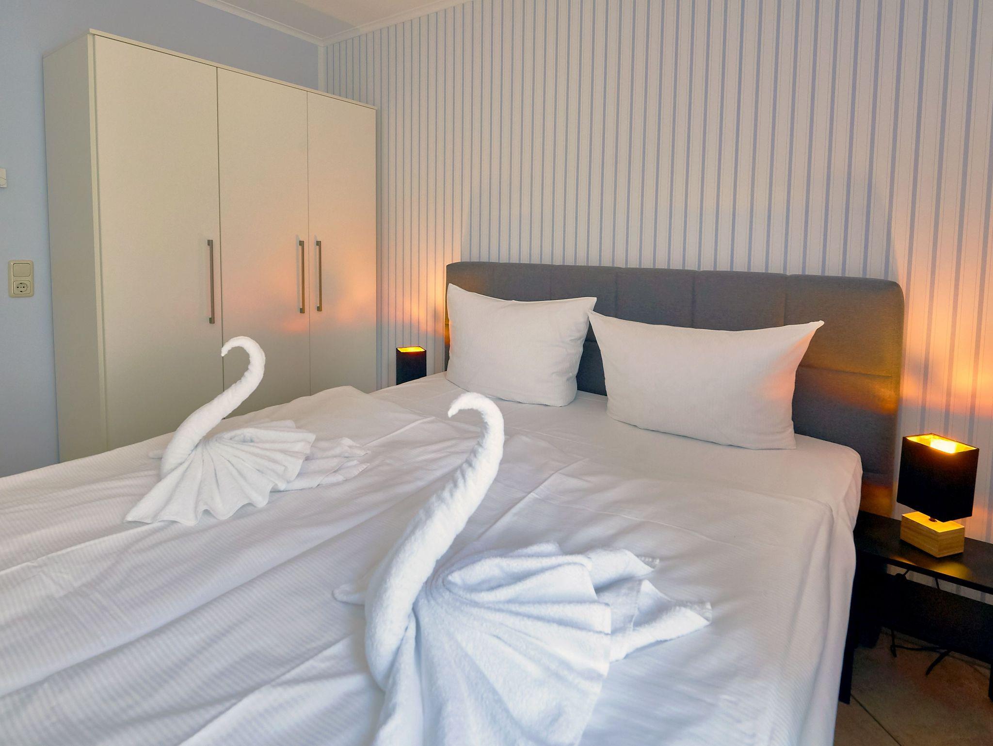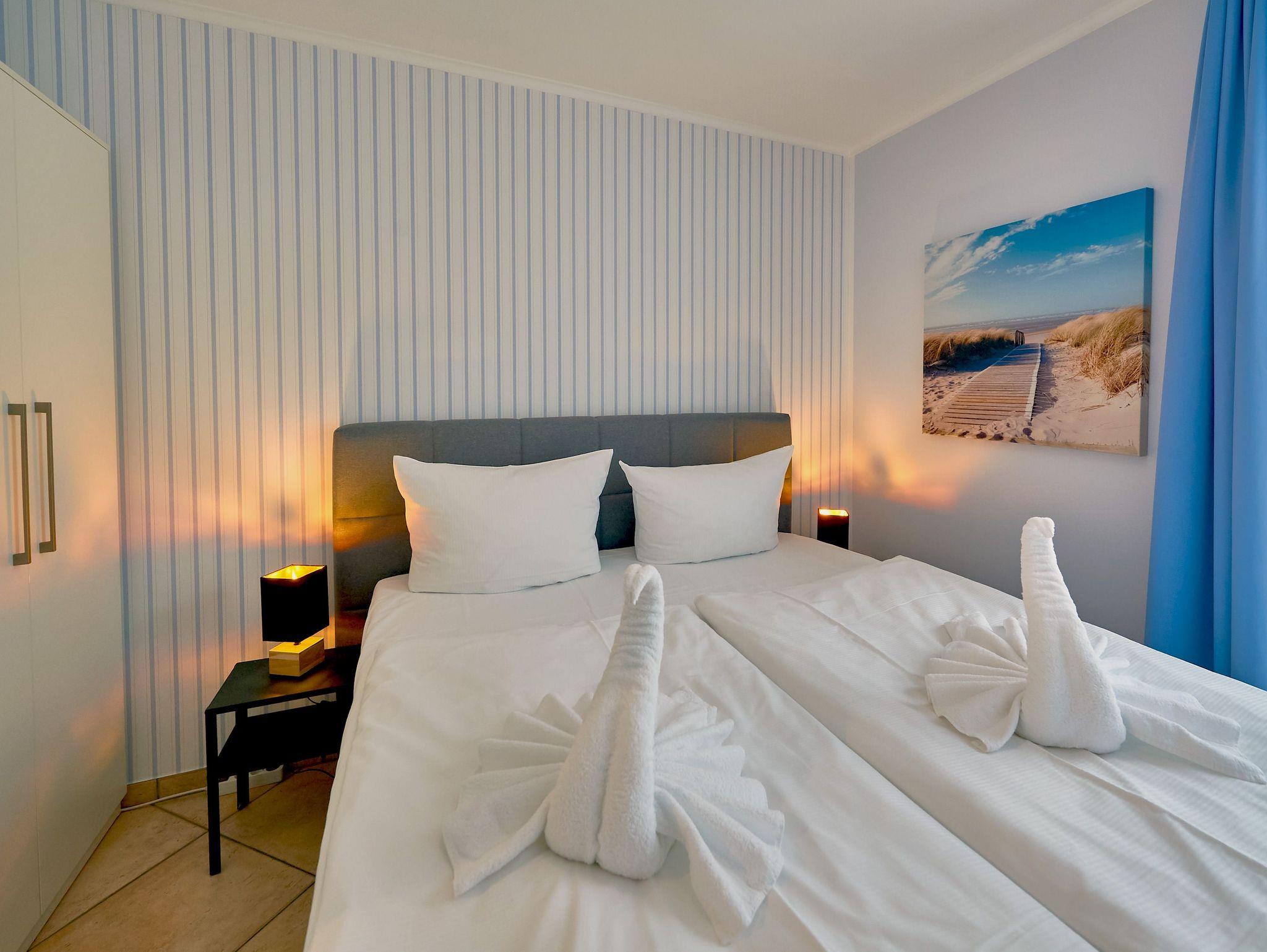 Die beiden Schlafzimmer sind mit jeweils einem Doppelbett ausgestattet. Das Appartement verfügt darüber hinaus über ein modernes Duschbad.