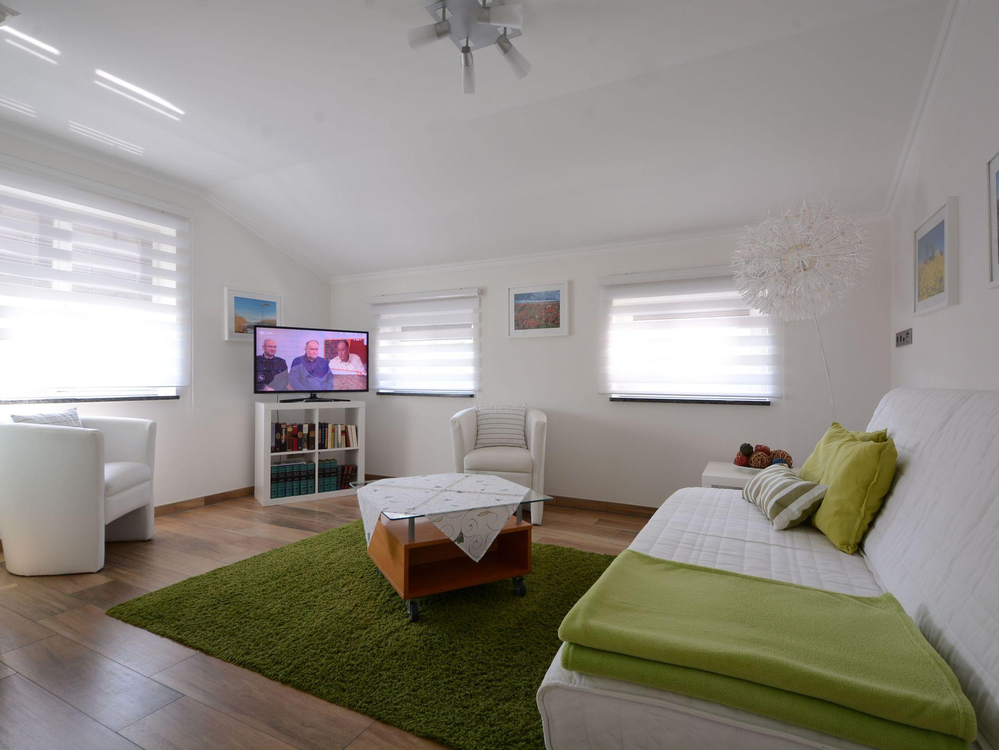 Die Unterhaltungselektronik des Wohnzimmers besteht aus einem Full-HD-Smart-TV-Fernseher optional mit Blu-Ray/DVD-Spieler. Über W-LAN können Sie kostenfrei den ausschließlich für diese Ferienwohnung eingerichteten Internetanschluss nutzen, auch zusammen mit den W-LAN-fähigen Fernsehgeräten.