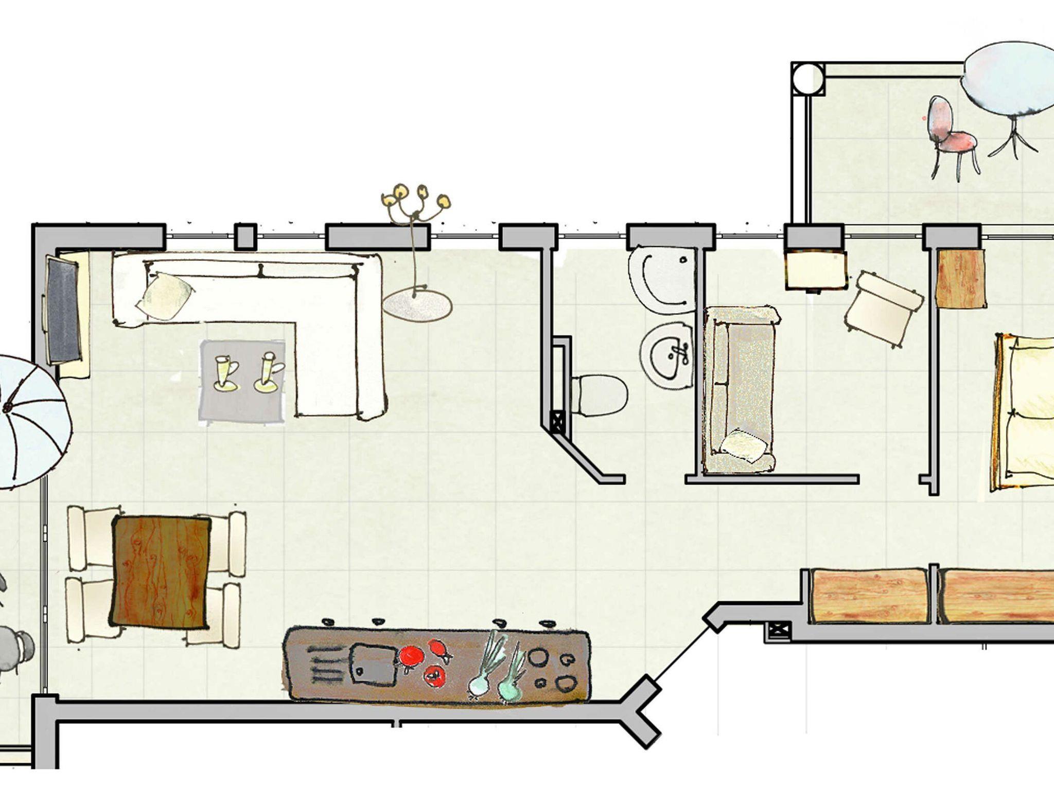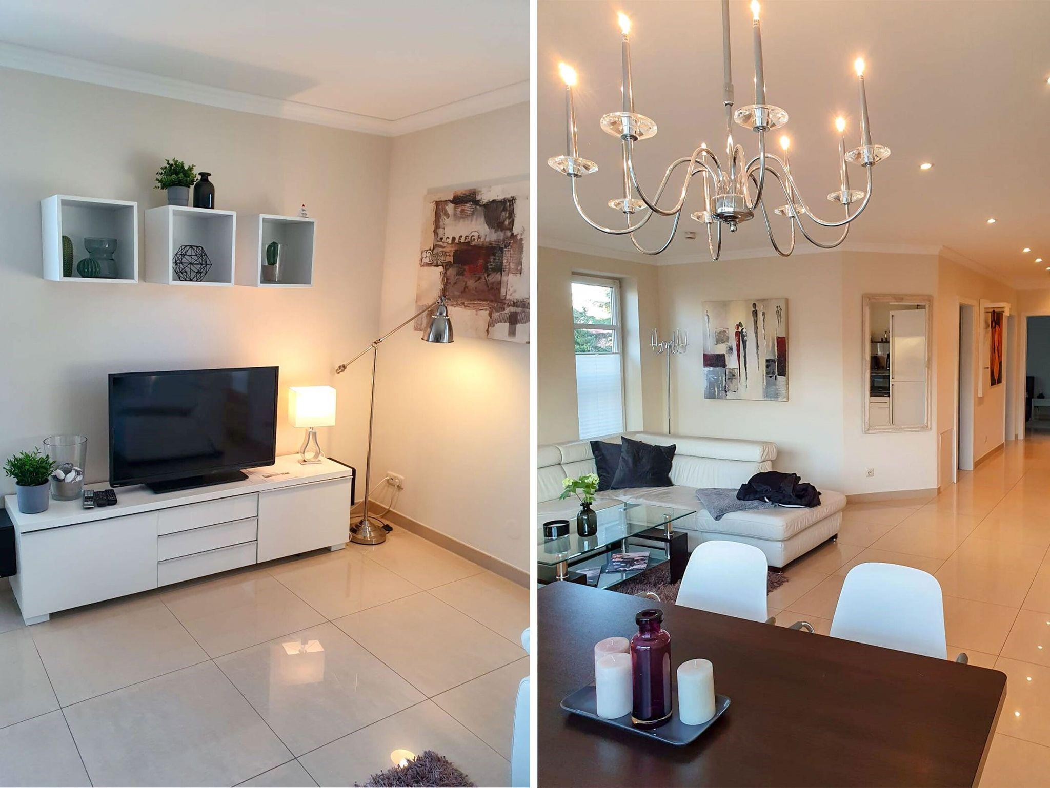 Der komfortable Wohnbereich Ihres Urlaubsdomizils verfügt über eine bequeme Sitzecke mit Schlafmöglichkeit, einen großformatigen Fernseher, eine Stereoanlage, einen Blu-Ray-Player, einen Radiowecker sowie eine integrierte hochwertige Küchenzeile mit Spülmaschine, Ceranherd, Backofen, Nespresso-Maschine und Mikrowelle nebst Esstisch. Auf den beiden großen Balkonen, ausgestattet mit bequemen Sitzmöbeln, können Sie entweder in der Morgensonne frühstücken oder den Sonnenuntergang beim Wein genießen - einfach herrlich.