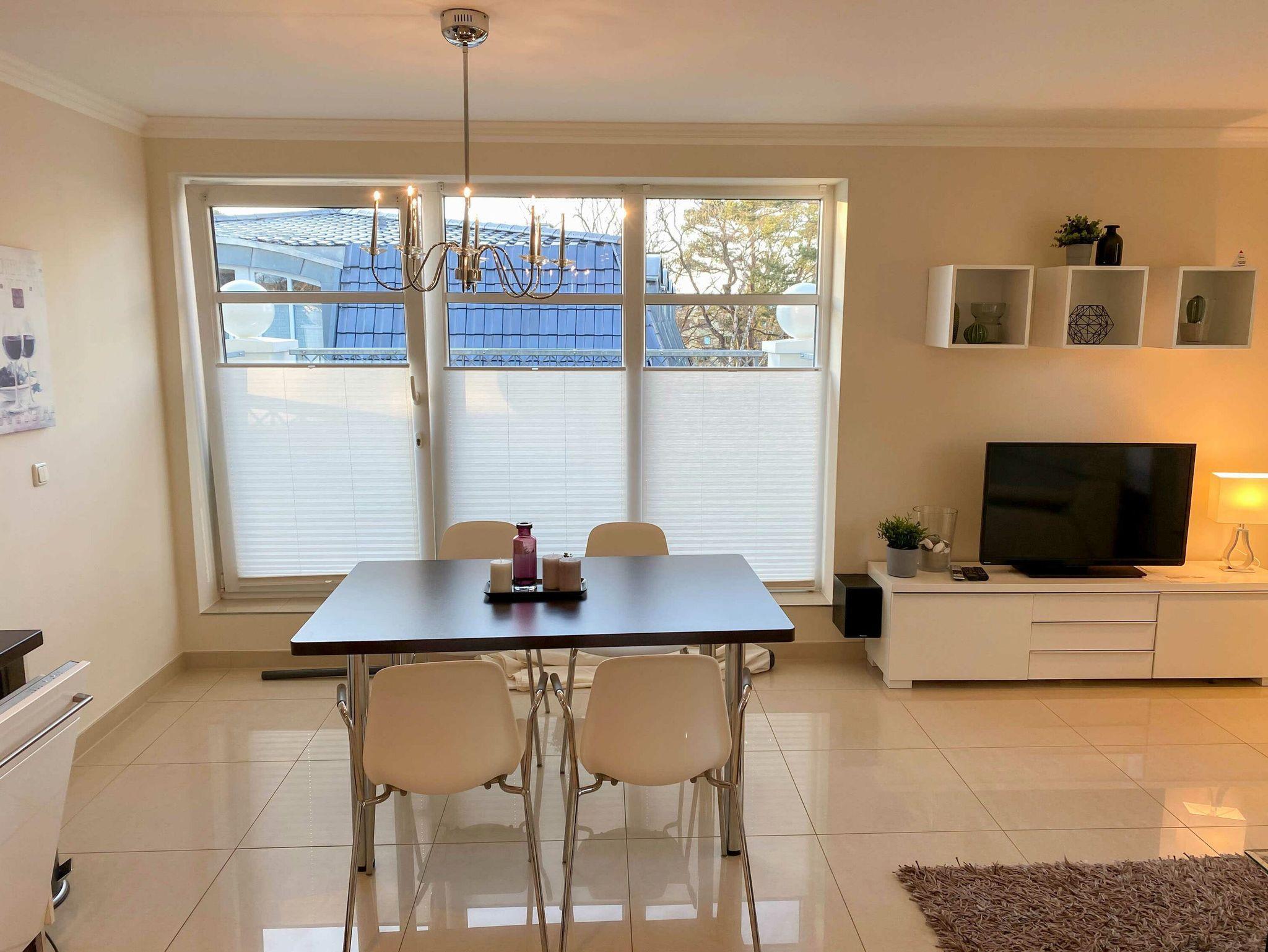 Penthouse Feeling - diese großzügig und exklusiv eingerichtete Nichtraucher-Ferienwohnung mit zwei Balkonen erwartet Sie im Dachgeschoss der Dünenresidenz und ist bequem mit dem Fahrstuhl zu erreichen. Komplett gefliest und mit Fußbodenheizung sowie kostenfreiem W-LAN ausgestattet, ist dieses gut 75 m² große 3-Raum-Appartement mit bis zu 5 Personen buchbar.