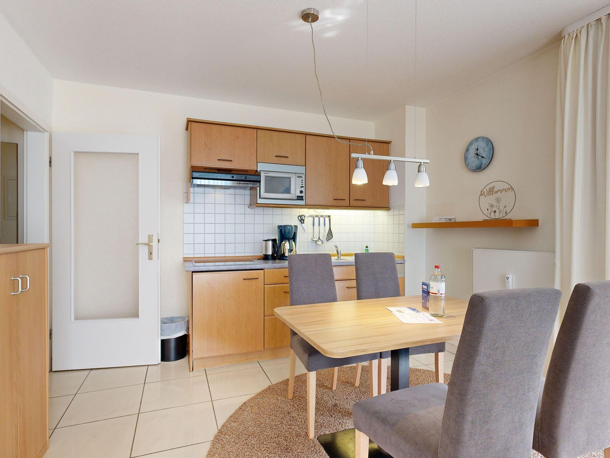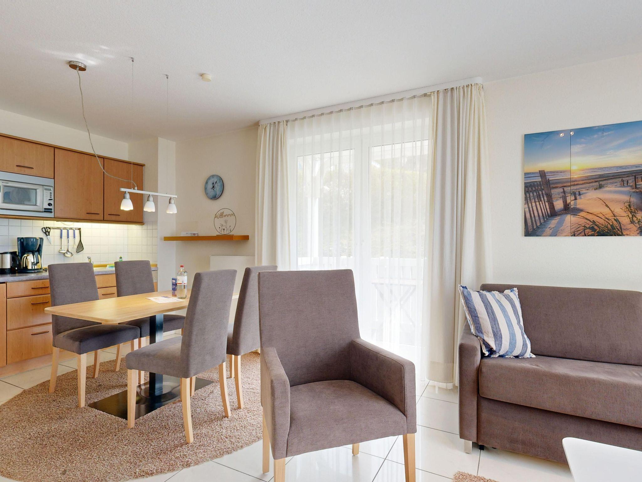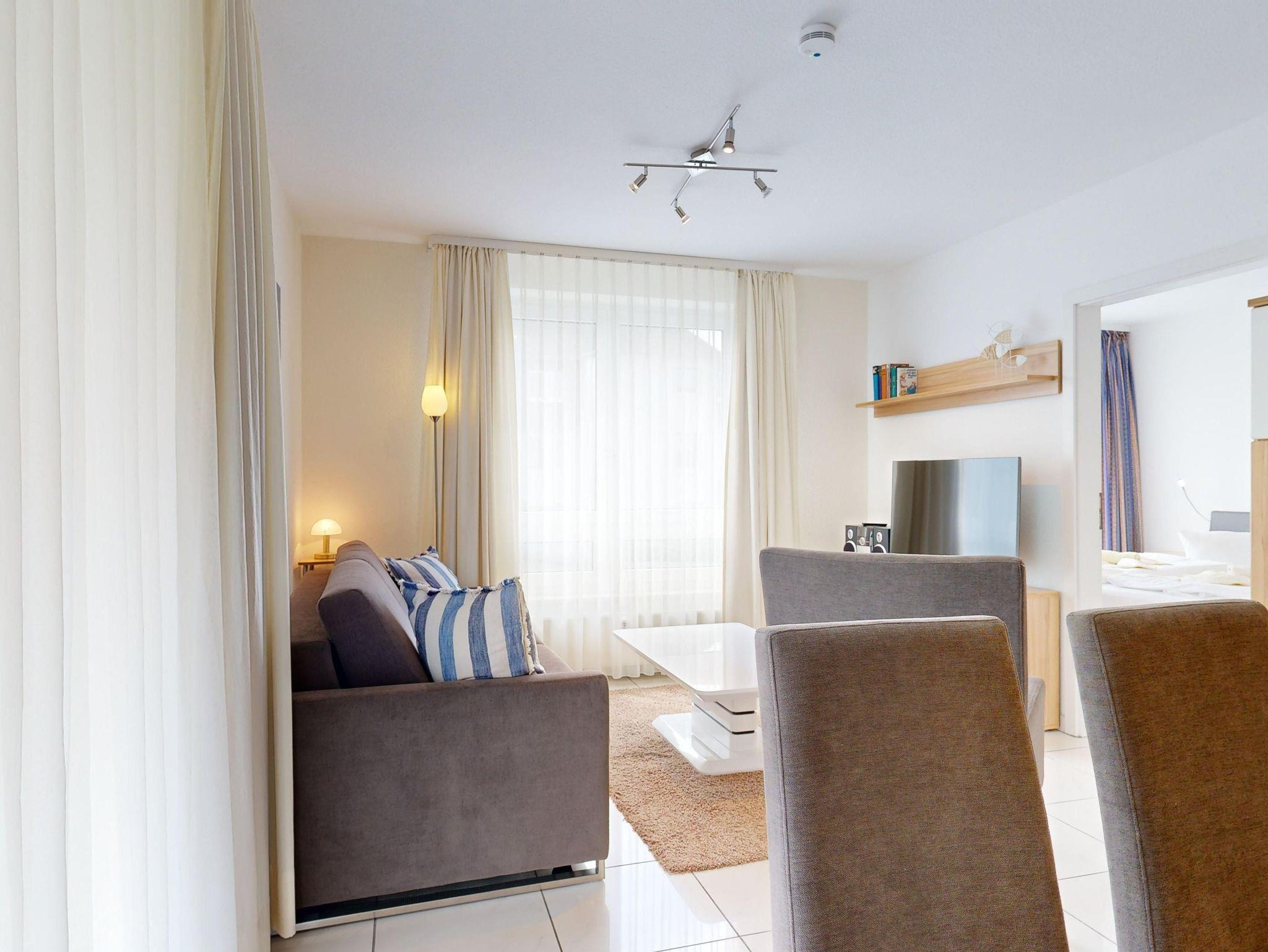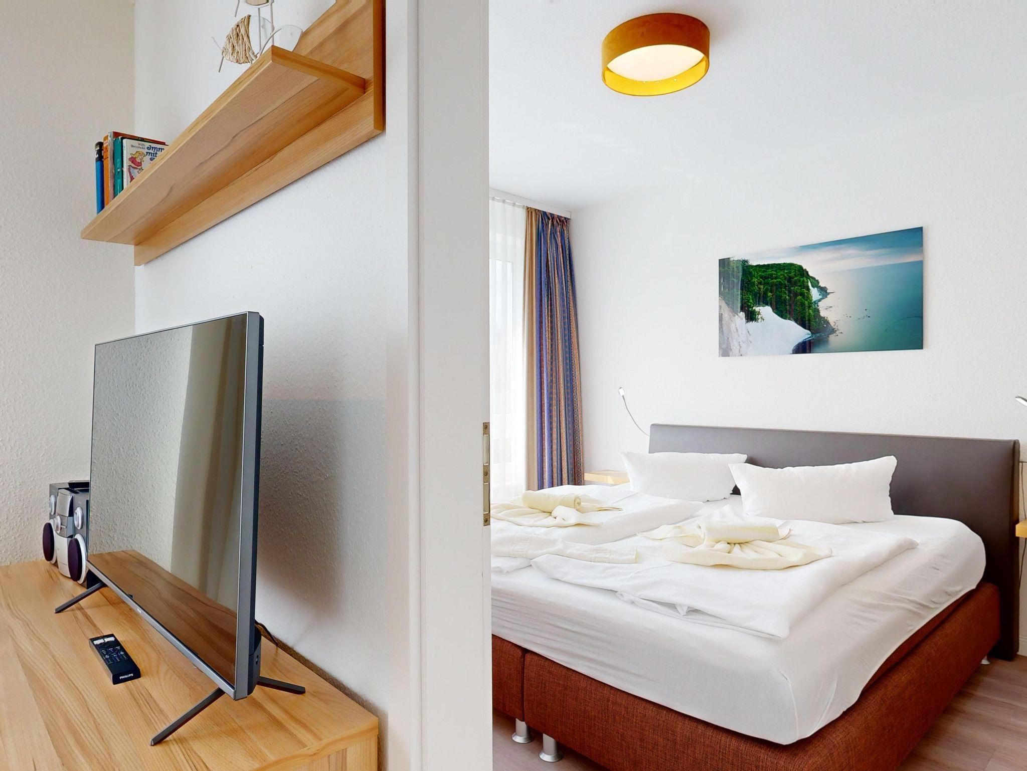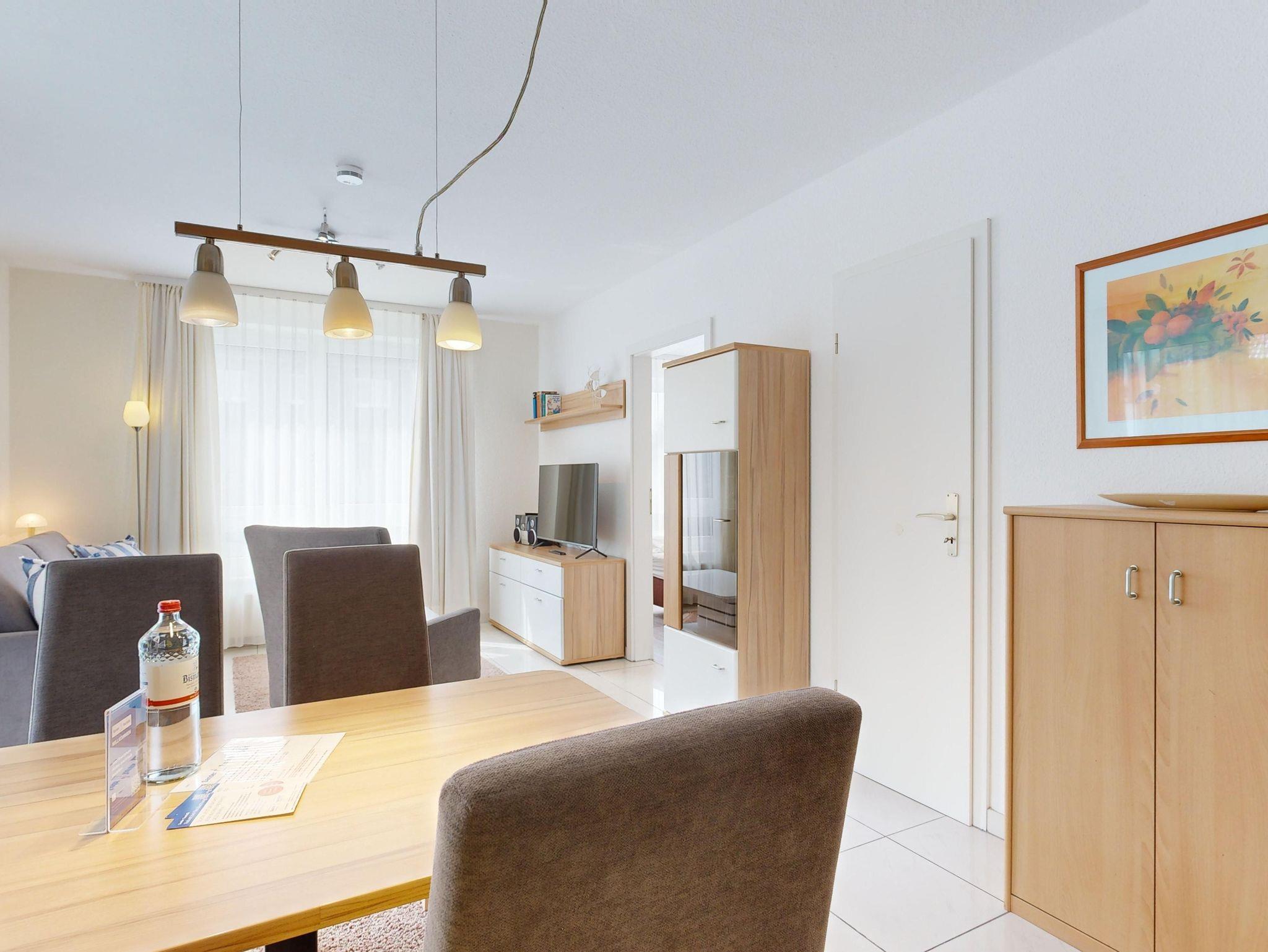 Ferienwohnung Binzer Sterne 03 für bis zu 4 Personen im Erdgeschoss (2 Zimmer / 45 m²) des Appartementhauses Binzer Sterne, 1 Schlafzimmer, Parkplatz (gegen Gebühr) und freies WLAN.