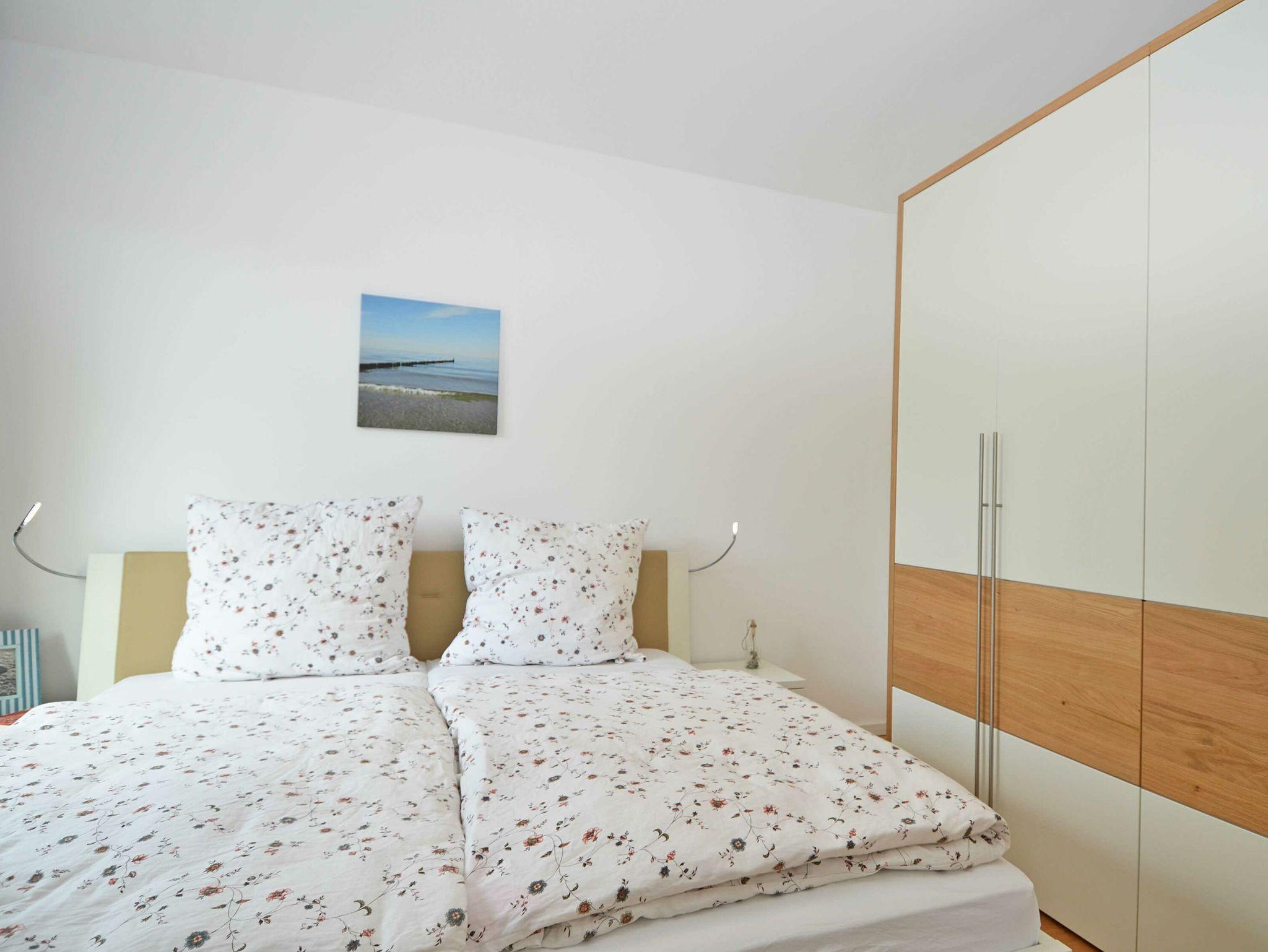 Das Schlafzimmer ist mit einem bequemen Doppelbett (1,80 x 2,00 m) sowie einen weiteren Fernseher ausgestattet. Im modern gefliesten Badezimmer genießen Sie den Komfort einer bodengleichen Dusche und können die wohnungseigene Waschmaschine kostenfrei nutzen. Ein Bügelbrett und ein Bügeleisen sind in Ihrer Fewo ebenfalls vorhanden.