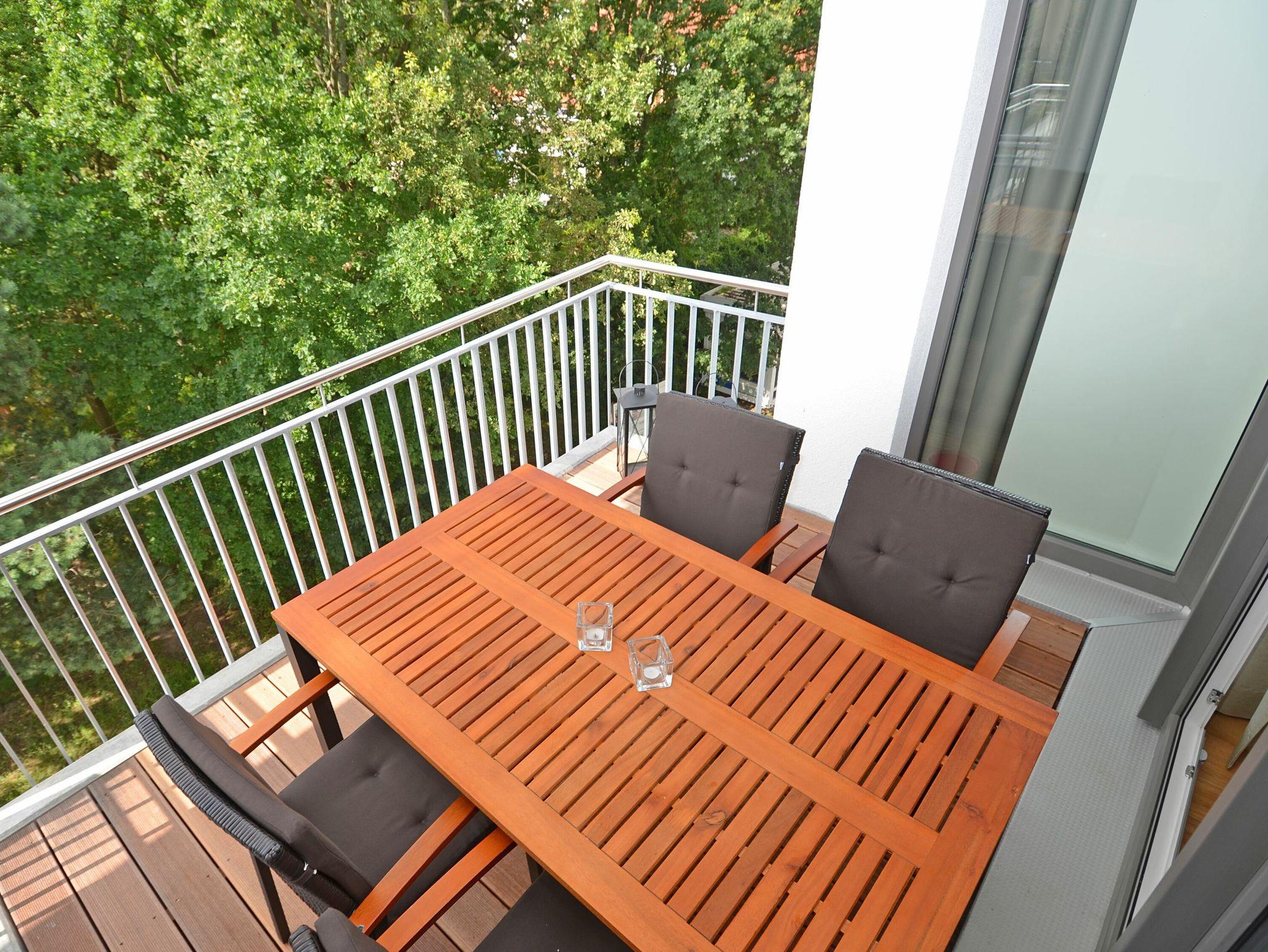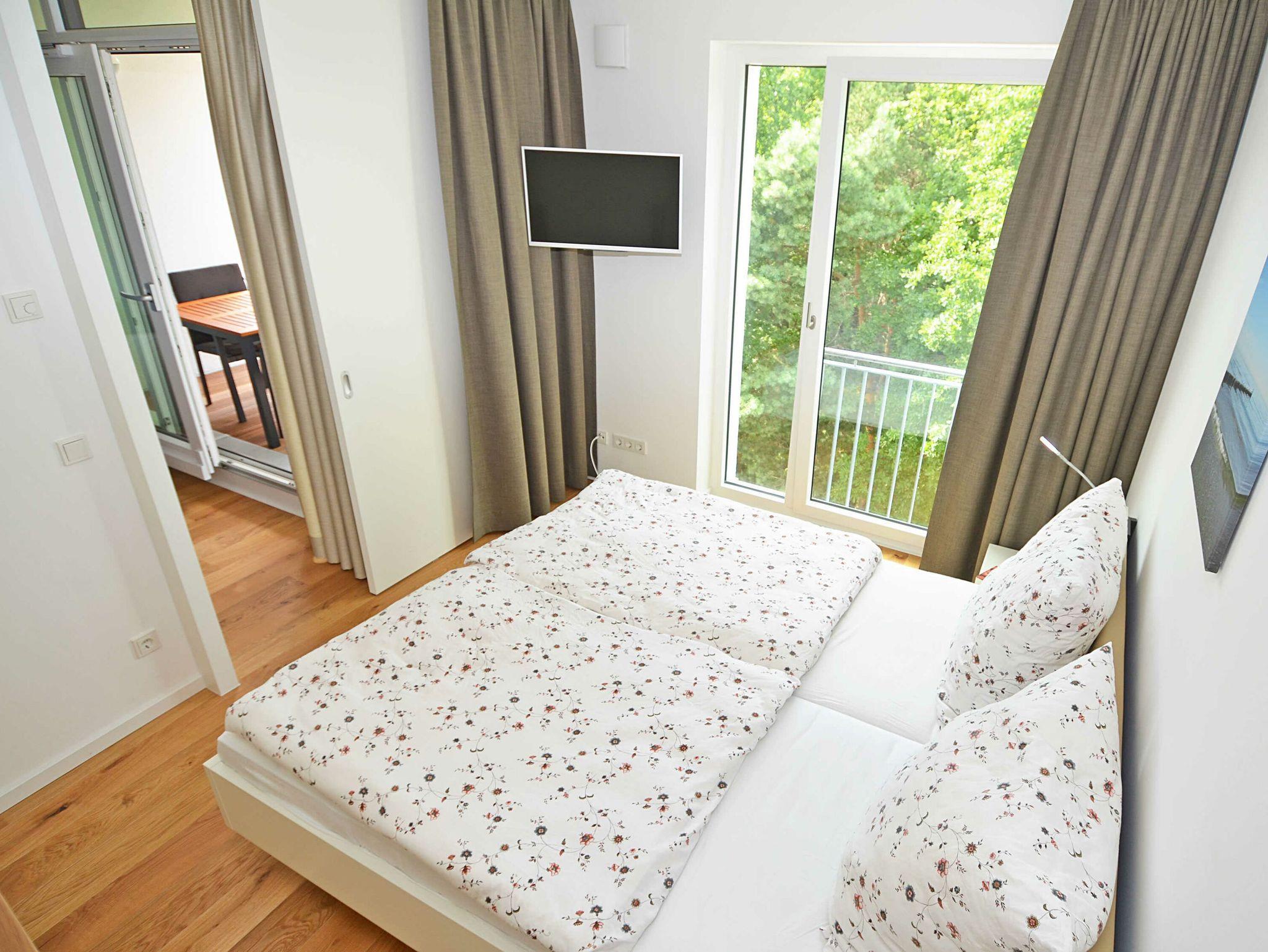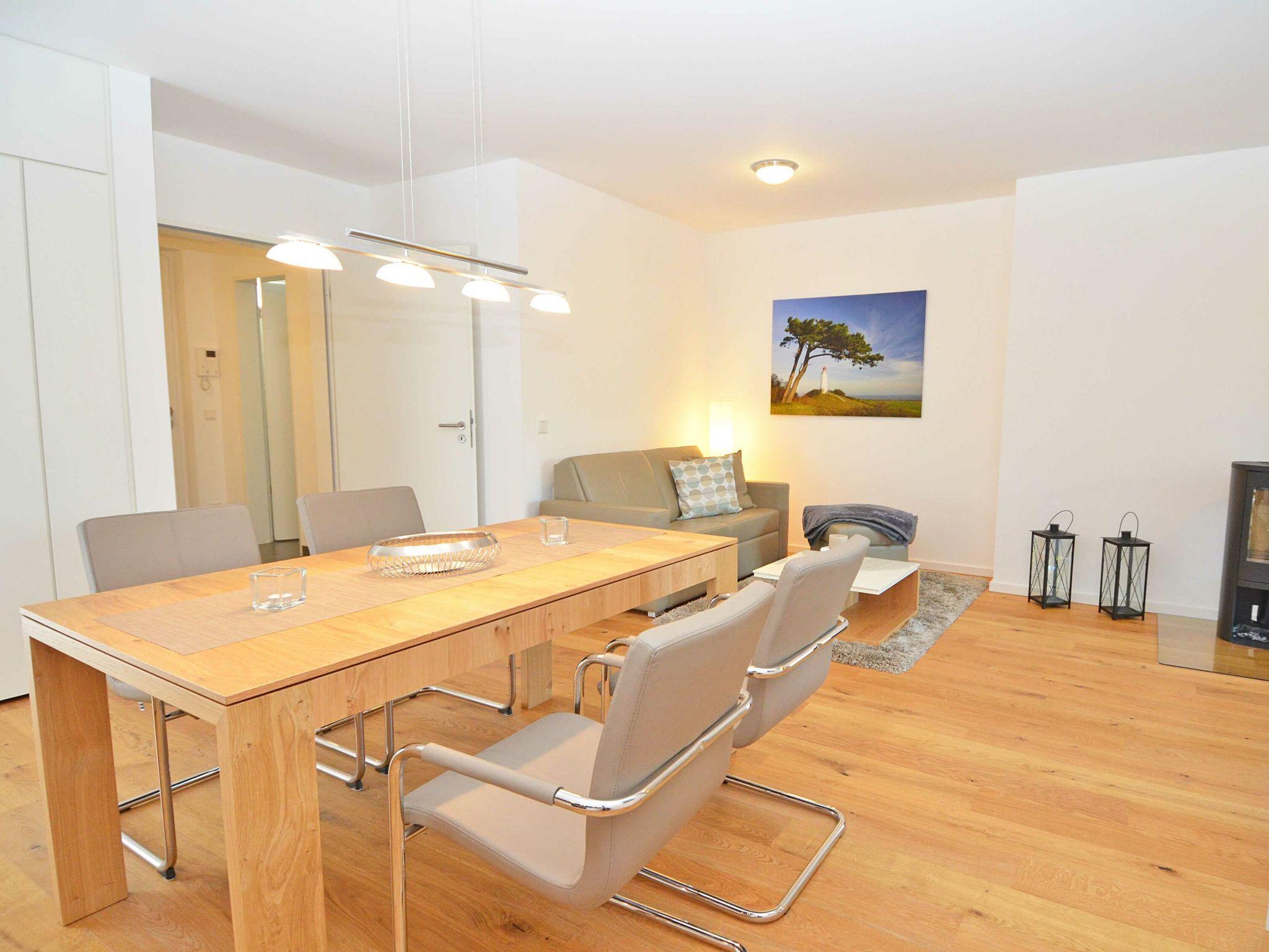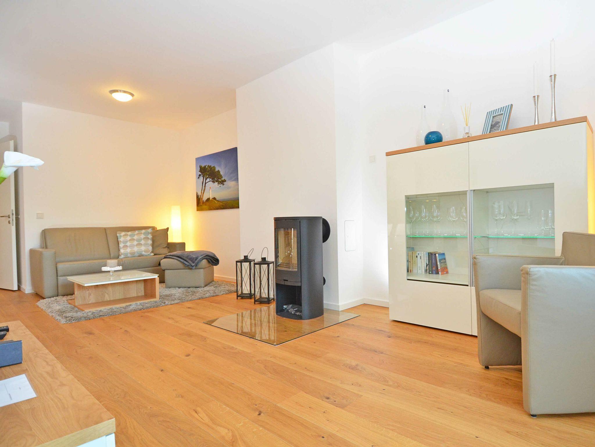 Dieses 68 m² große und sehr geschmackvoll eingerichtete 2-Raum-Appartement im 3. Obergeschoss bezaubert u.a. mit einem Kamin und seitlichem Meerblick vom möblierten Balkon.