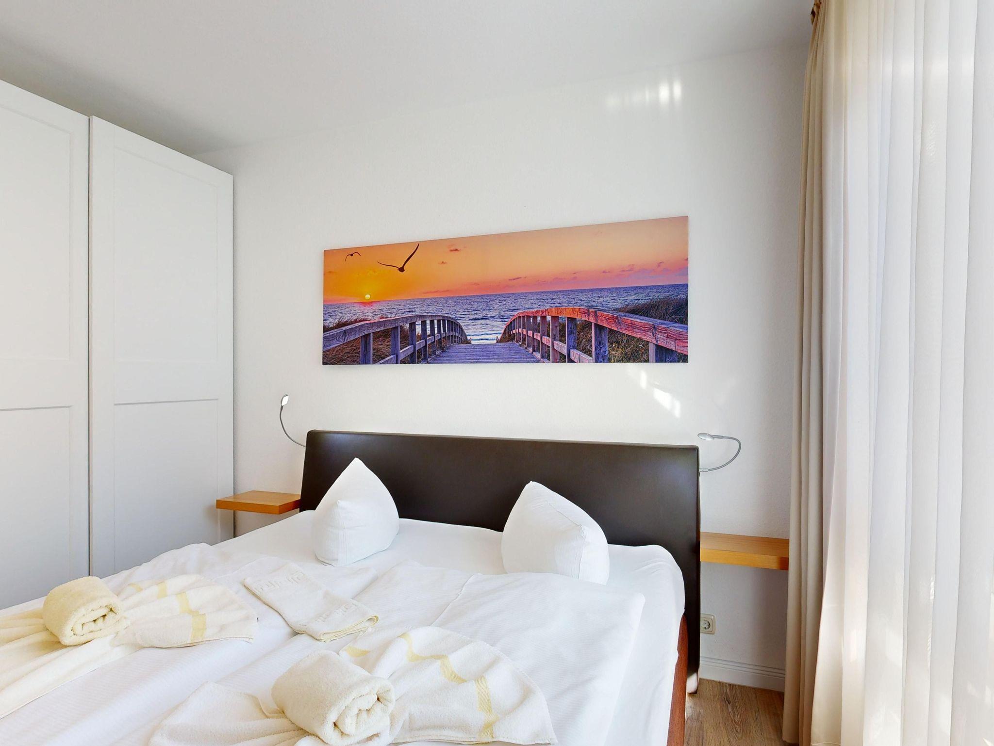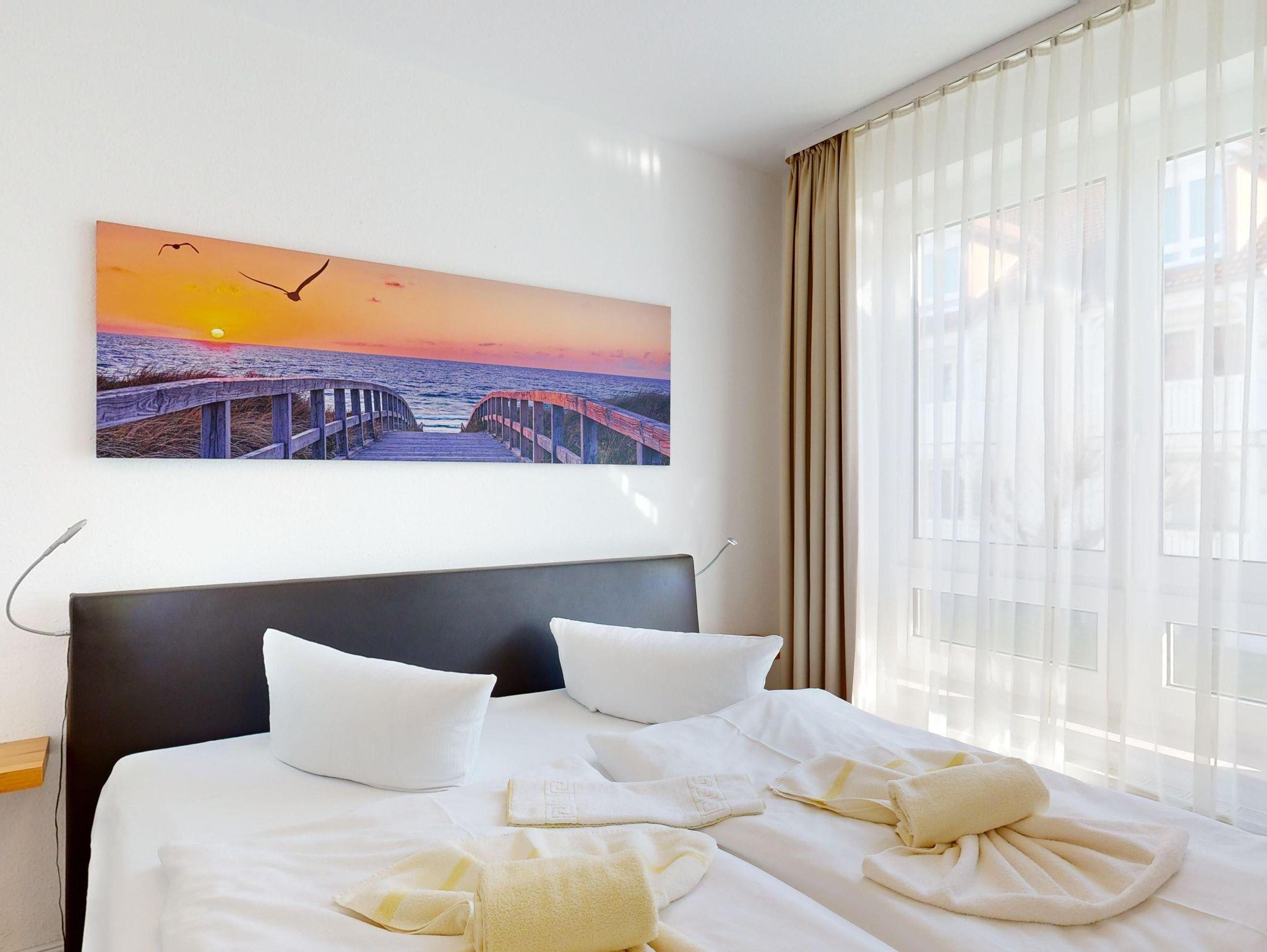 Ferienwohnung Binzer Sterne 32 für bis zu 4 Personen im 1. OG (2 Zimmer / 40 m²) des Appartementhauses Binzer Sterne, 1 Schlafzimmer, Parkplatz (gegen Gebühr) und freies WLAN.