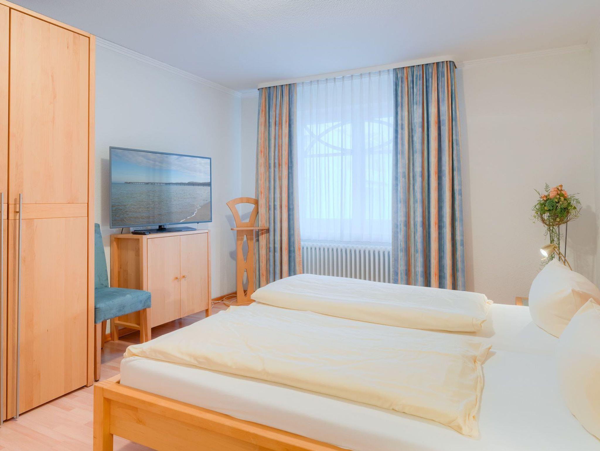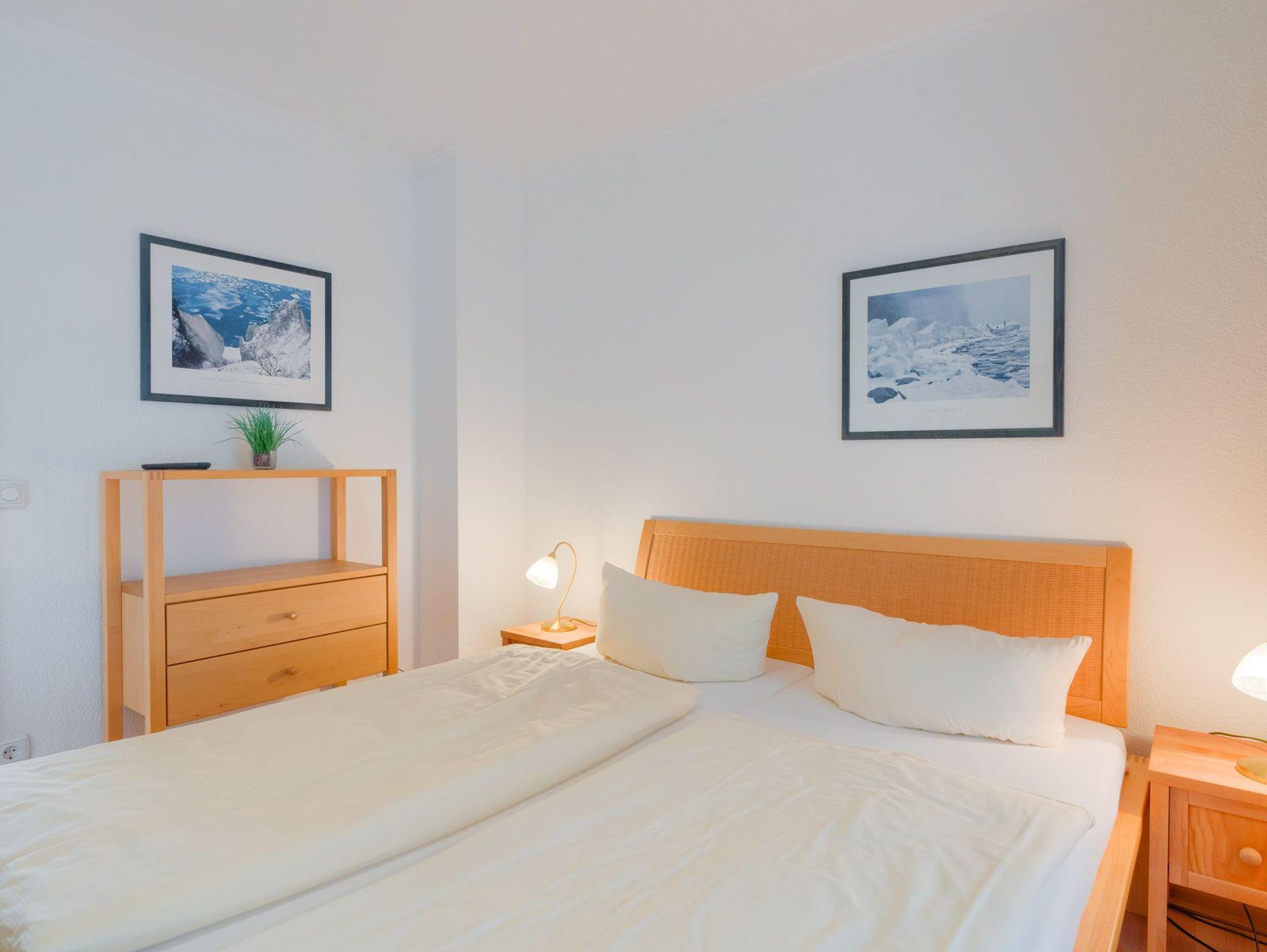 In allen drei Schlafzimmern bietet Ihnen ein Doppelbett ausreichend Platz und Privatsphäre für einen erholsamen Schlaf. Ihre Urlaubskleidung können Sie im geräumigen Kleiderschrank unterbringen. In allen Schlafzimmern stehen zusätzlich Flachbildfernseher bereit.