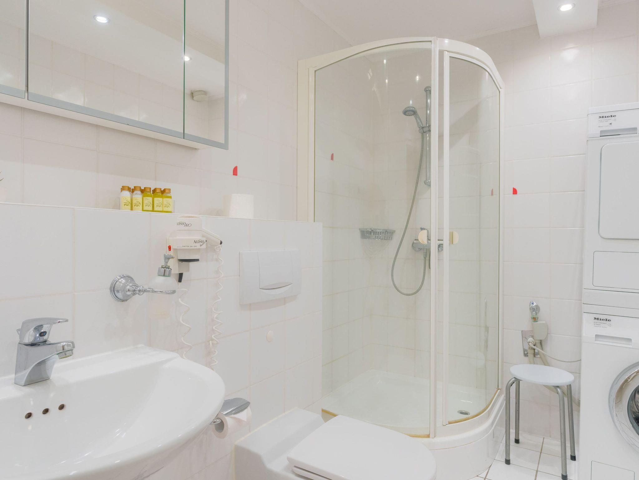 Im zweiten Bad erwartet Sie eine Dusche und ein WC. Hier befindet sich auch eine Waschmaschine und ein Trockner.