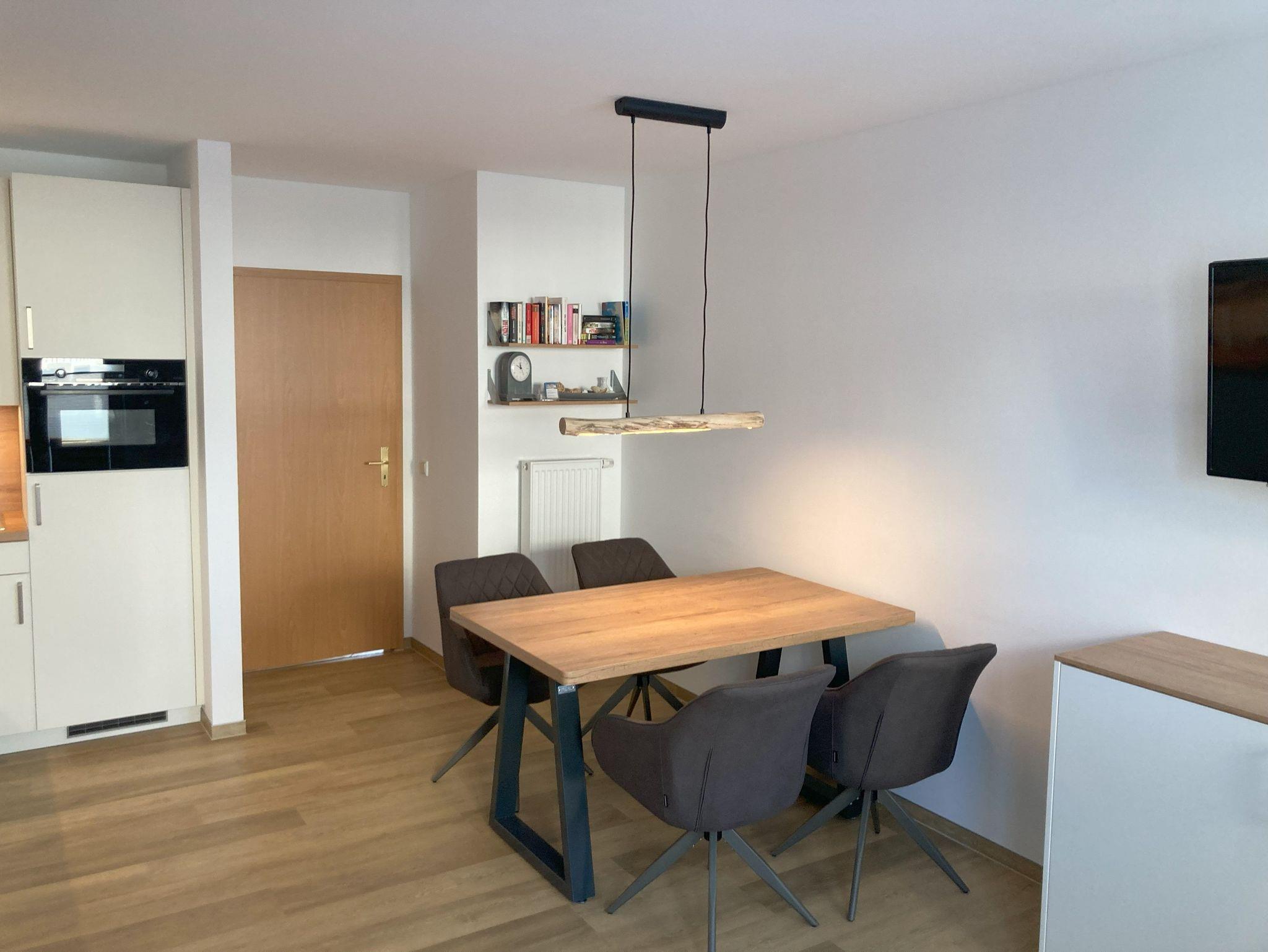 Das moderne 2-Zimmer-Appartment für bis zu 4 Personen bietet auf 47 qm ein helles Wohn- Esszimmer mit offener Küchenzeile (inkl. Induktionskochfeld, Kühlschrank, Geschirrspühler und Mikrowelle mit Backfunktion) mit einem großen Süd-West-Balkon. Hier stehen Ihnen ein Flat-TV und ein CD/Radio zur Verfügung.