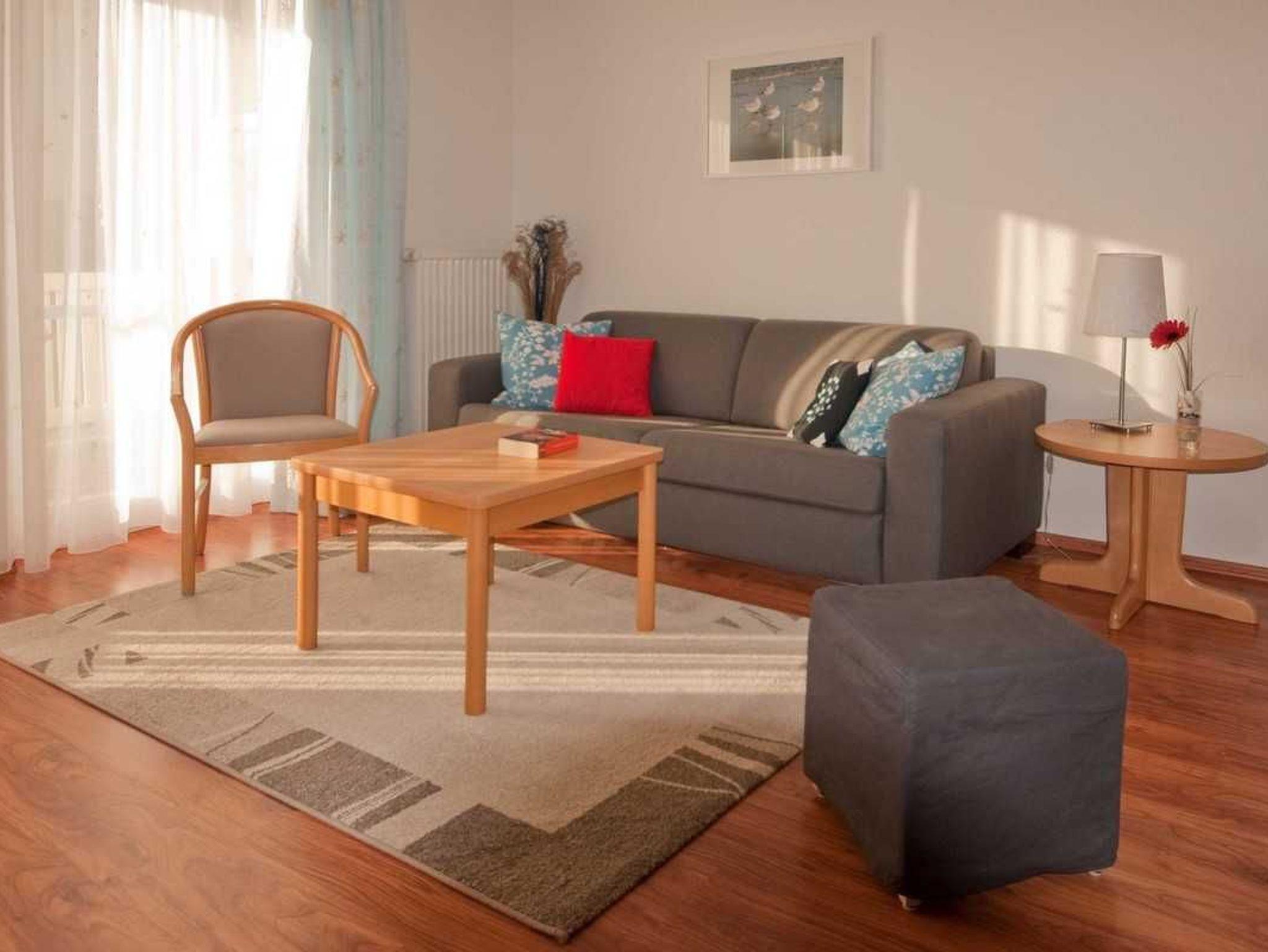 Das sehr schöne 2-Zimmer-Appartment für bis zu 4 Personen bietet auf 47 qm ein helles Wohn- Esszimmer mit offener Küchenzeile (inkl. Herd, Kühlschrank und Mikrowelle) mit einem großen Süd-West-Balkon. Hier stehen Ihnen ein Flat-TV mit DVD-Player und ein CD/Radio zur Verfügung.