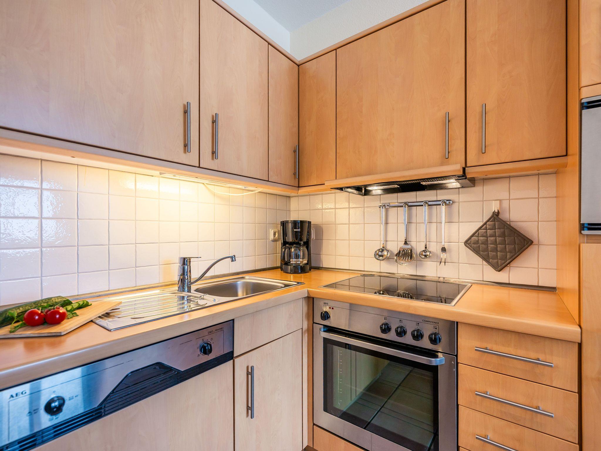 • Küche :Mikrowelle, Backofen, Geschirrspülmaschine, Kühlschrank mit Gefrierfach, Kaffeemaschine, Toaster und Wasserkocher