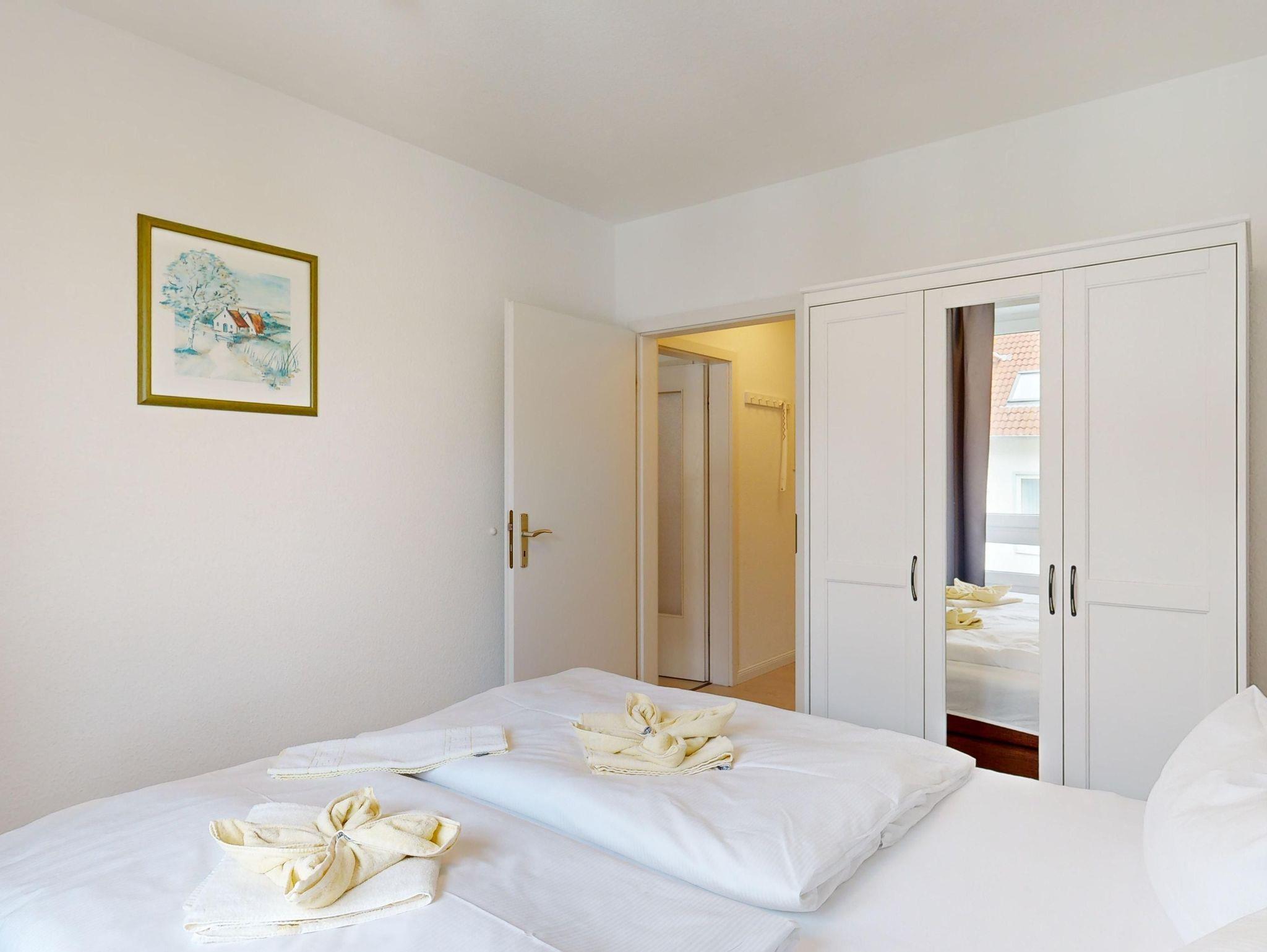 Ferienwohnung Binzer Sterne 16 für bis zu 4 Personen im 1. OG (2 Zimmer / 40 m²) des Appartementhauses Binzer Sterne, 1 Schlafzimmer, Parkplatz (gegen Gebühr) und freies WLAN.