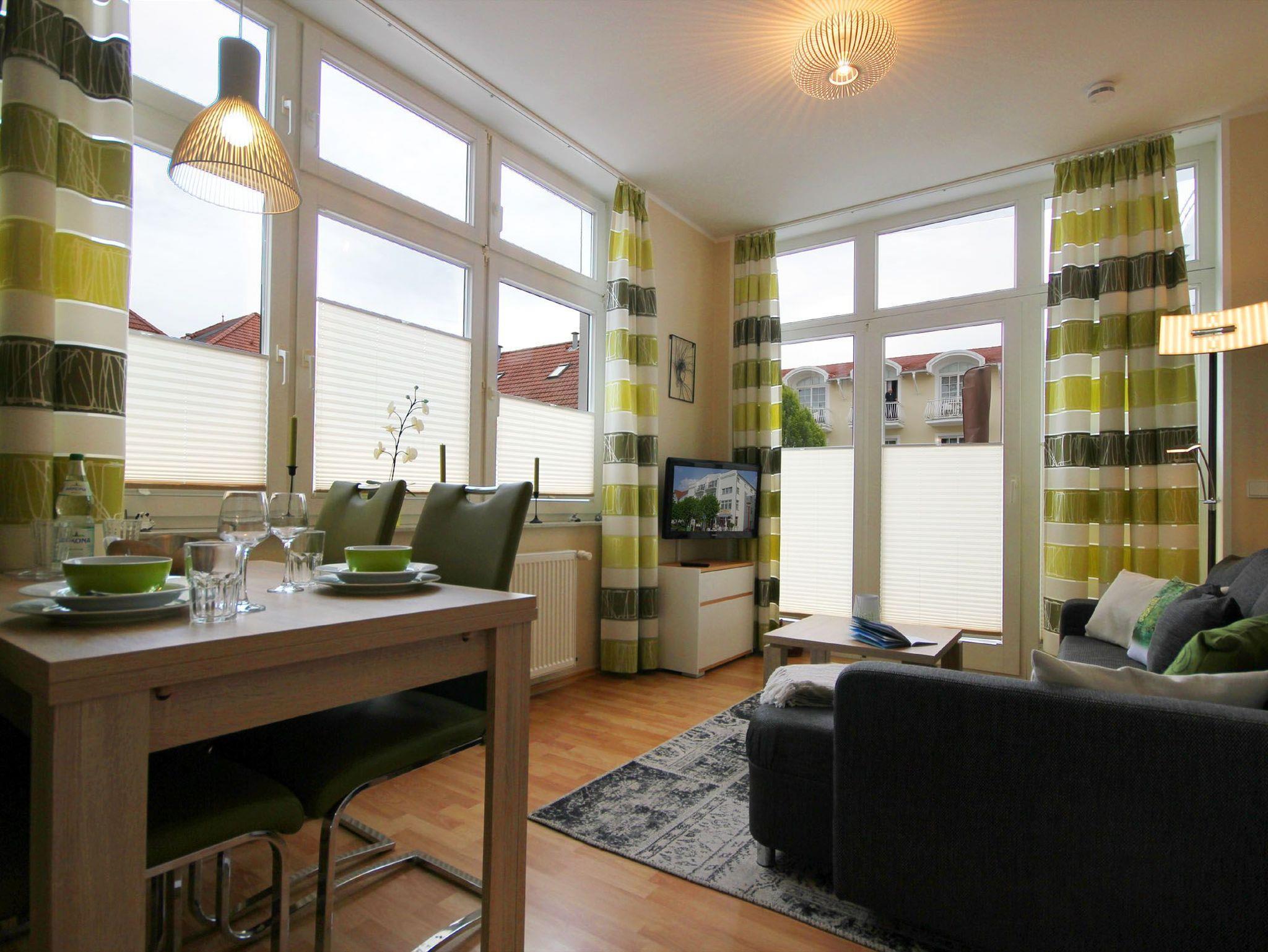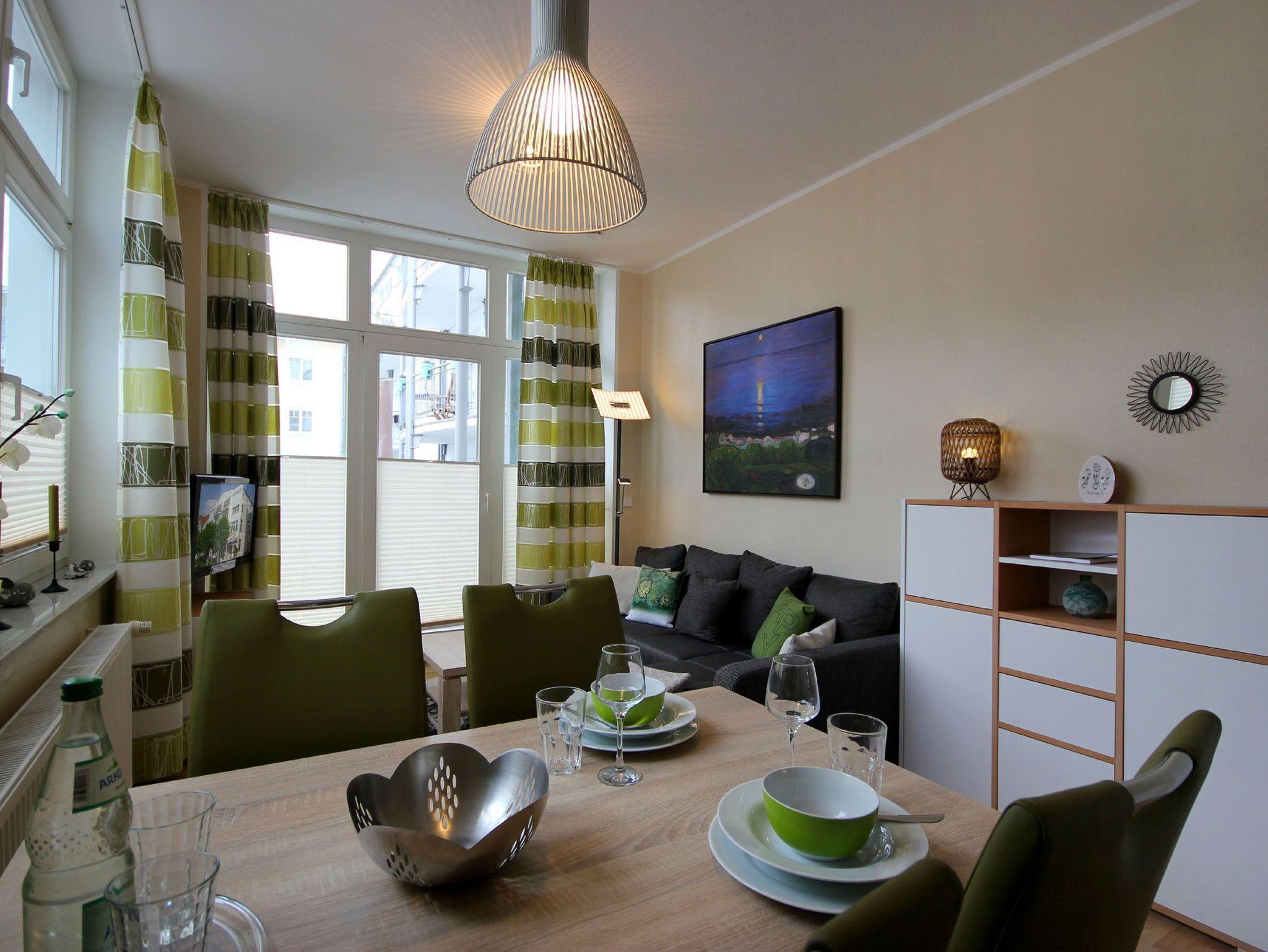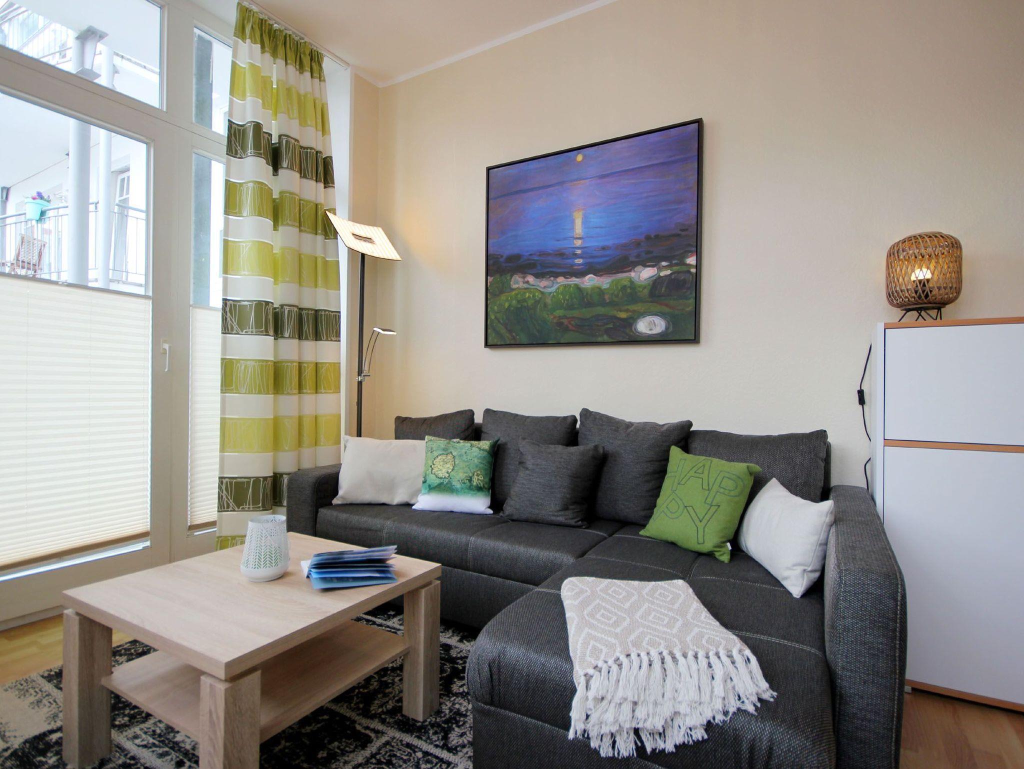 Moderne 2-Zimmerwohnung in Binz mit Balkon, WLAN und Küche, nur 50 m vom Strand entfernt.