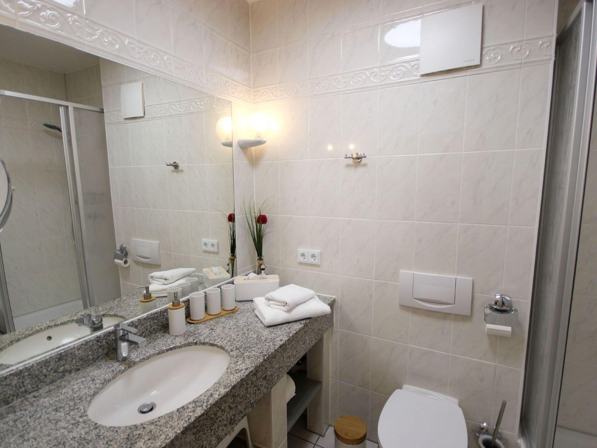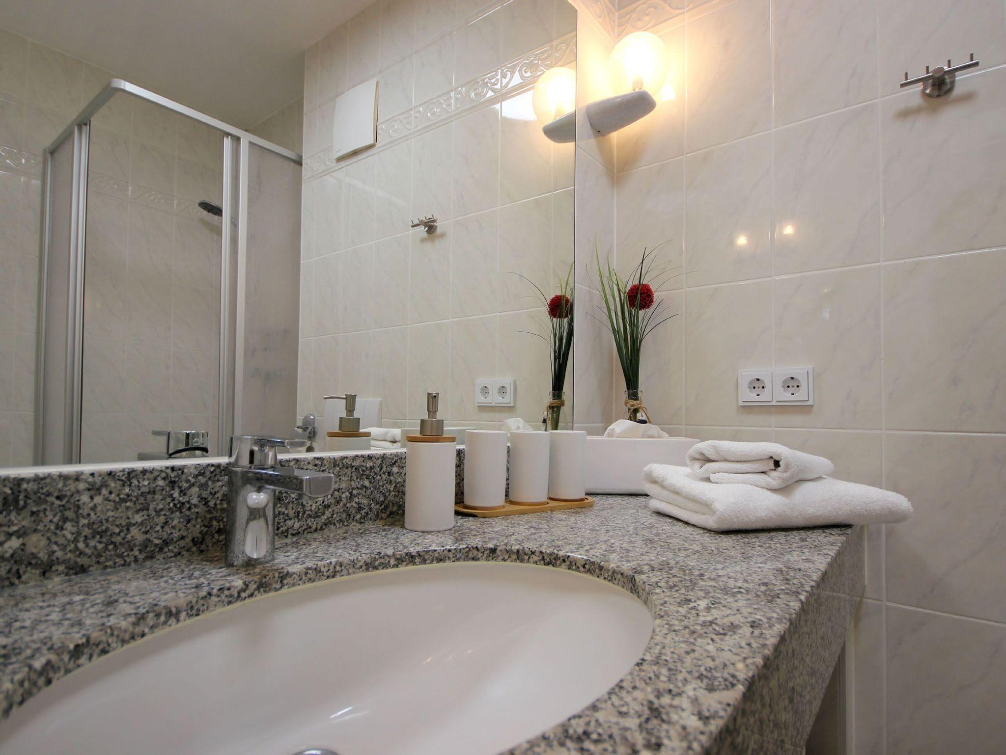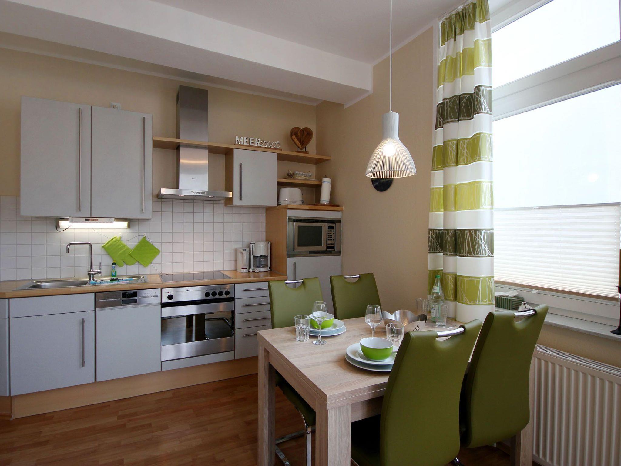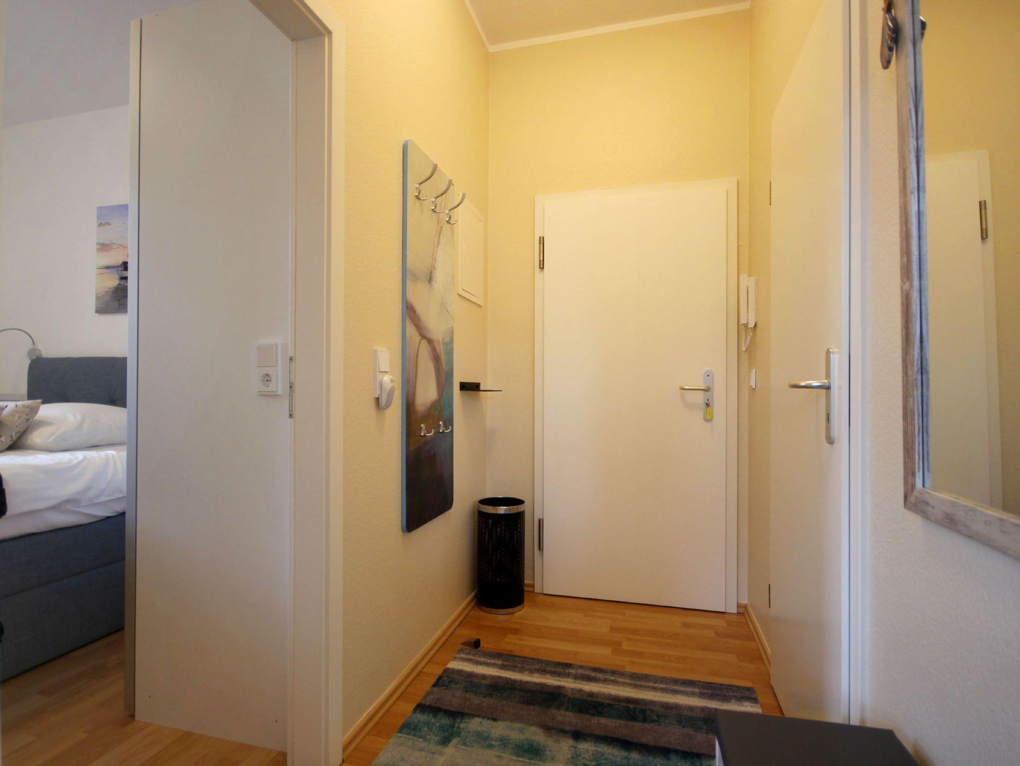 Dem gemütlichen Wohnraum schließt sich die Wohnküche und der Balkon an. Im separaten Schlafraum finden Sie ein Boxspringbett sowie einen Kleiderschrank. Vom vorgelagerten Flur aus erreichen Sie das helle Bad mit Waschbecken, Kosmetikspiegel, Dusche/WC und Fön. Im Wohnraum gibt es einen separaten Essbereich, eine gemütliche Sitzecke mit Schlaffunktion sowie einen Flachbildfernseher und einen kostenfreien WLAN-Zugang. Die Küche verfügt über einen Backofen, eine Mikrowelle, Cerankochfeld, Kühlschrank mit Gefrierfach, Geschirrspüler, Kaffeemaschine, Toaster, Wasserkocher und diverse andere Küchenhelfer. Ein PKW-Stellplatz steht Ihnen in unmittelbarer Nähe zur Verfügung.