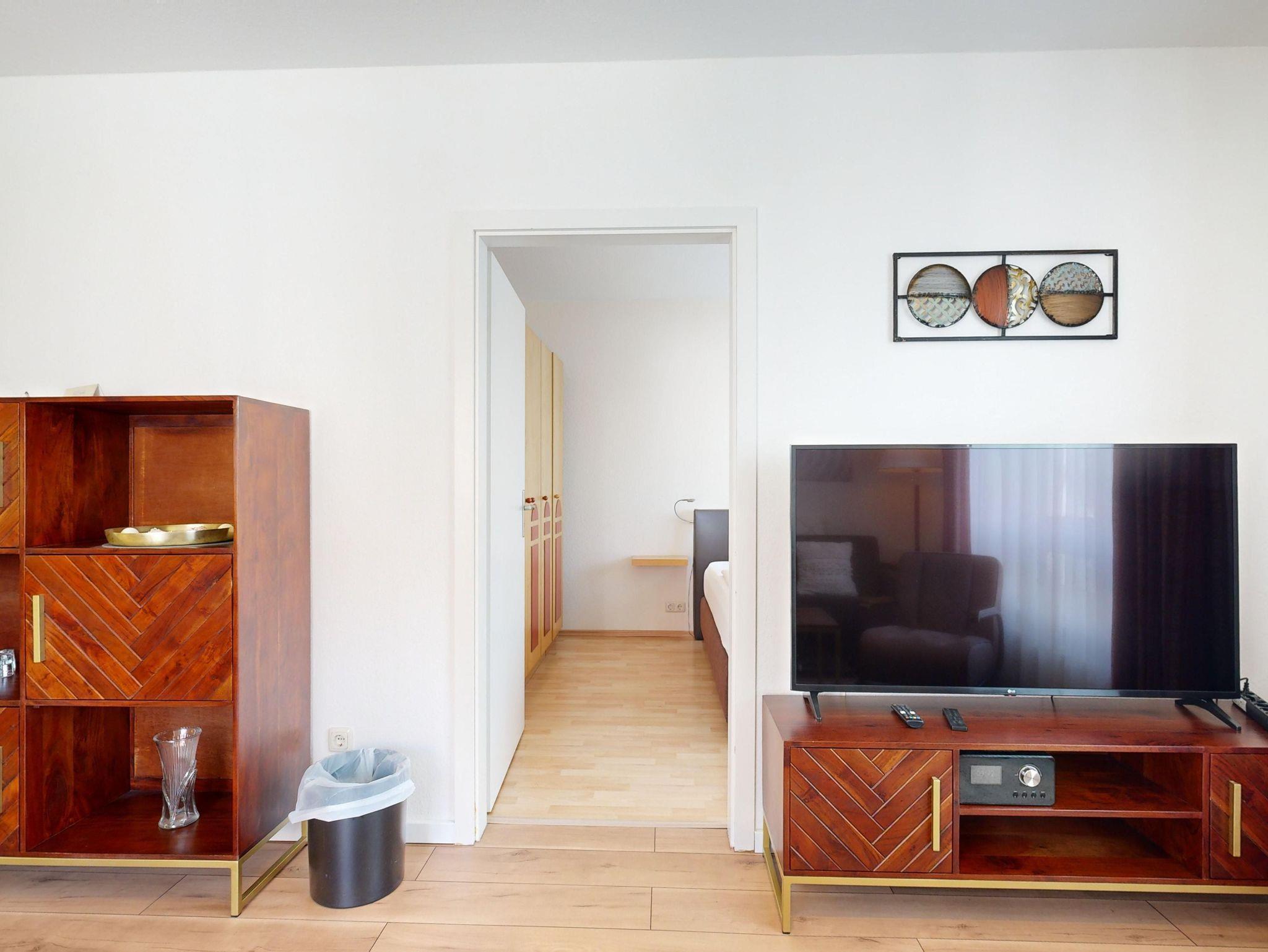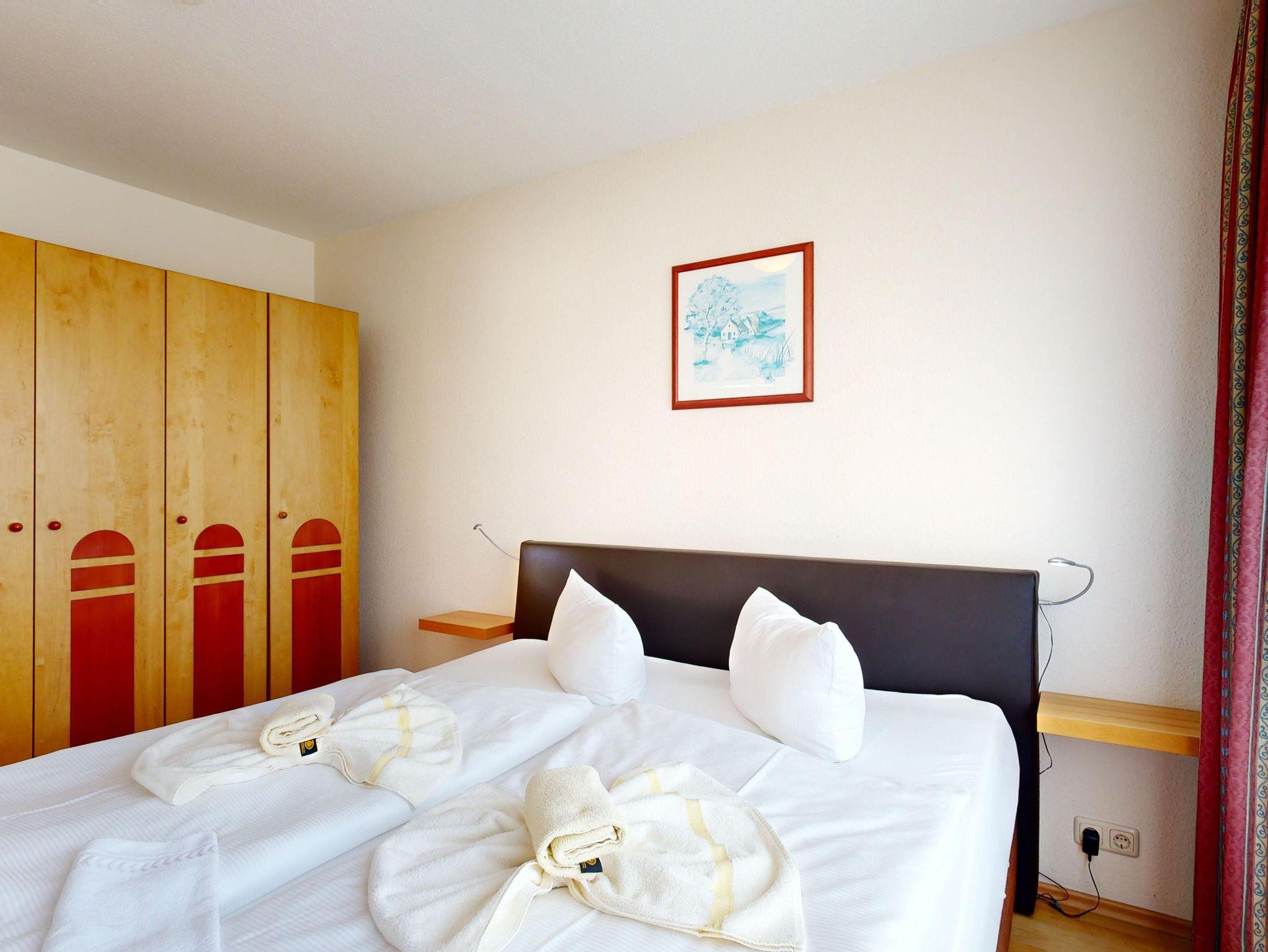 Ferienwohnung Binzer Sterne 30 für bis zu 4 Personen im 1. OG (2 Zimmer / 45 m²) des Appartementhauses Binzer Sterne, 1 Schlafzimmer, Parkplatz (gegen Gebühr) und freies WLAN.