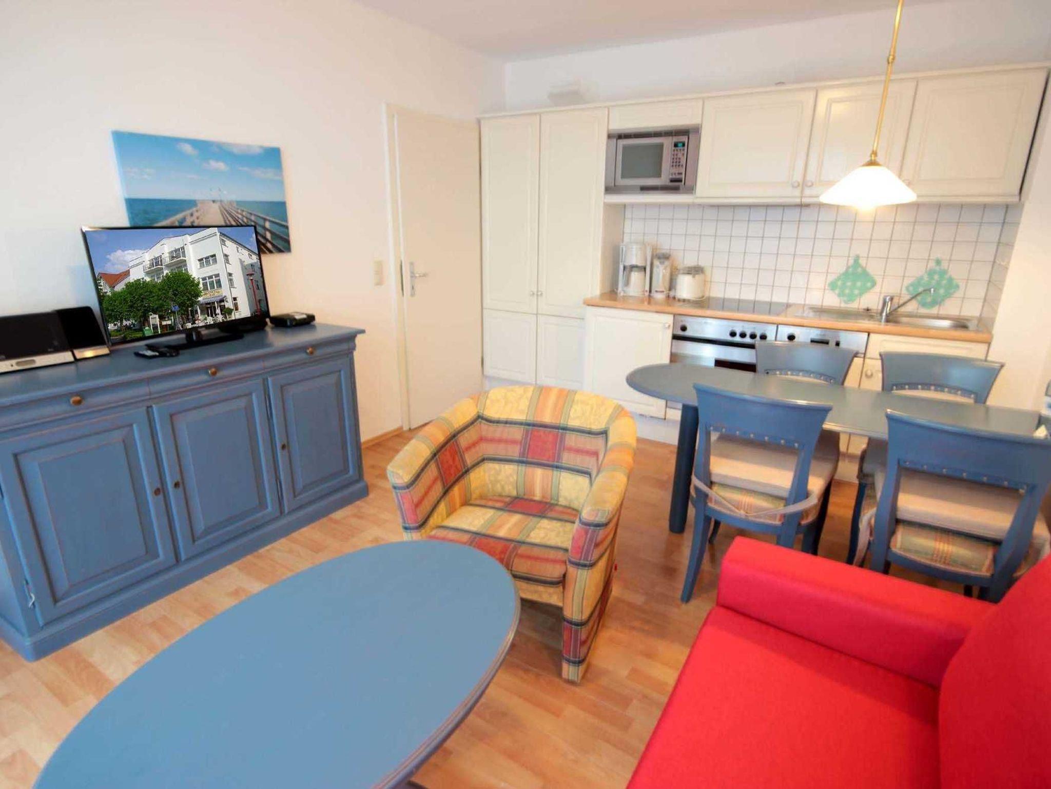 Maritim eingerichtete 2-Zimmerwohnung mit Balkon und Ostseeblick in Binz, ideal für 3 Personen und Haustiere willkommen.