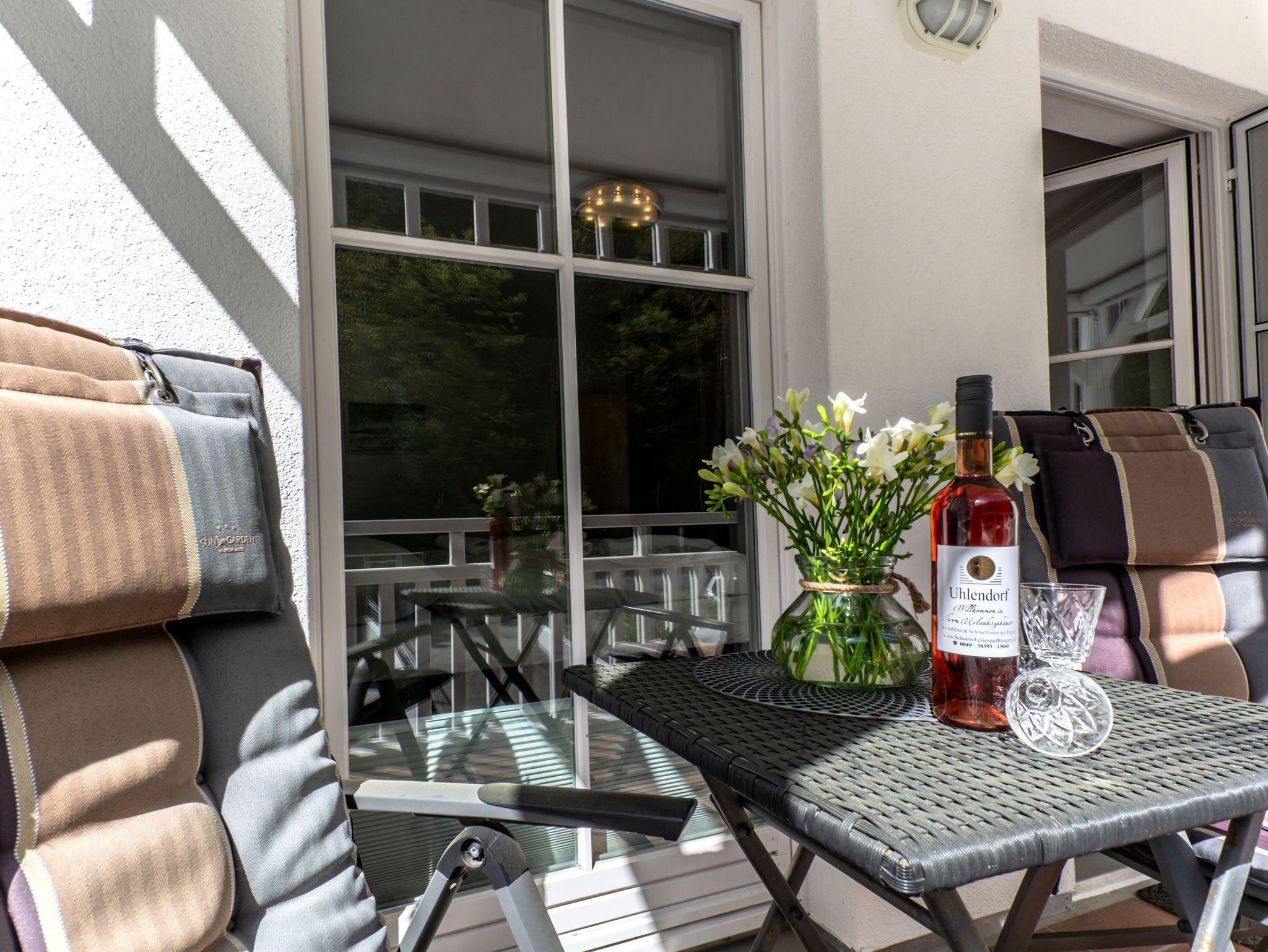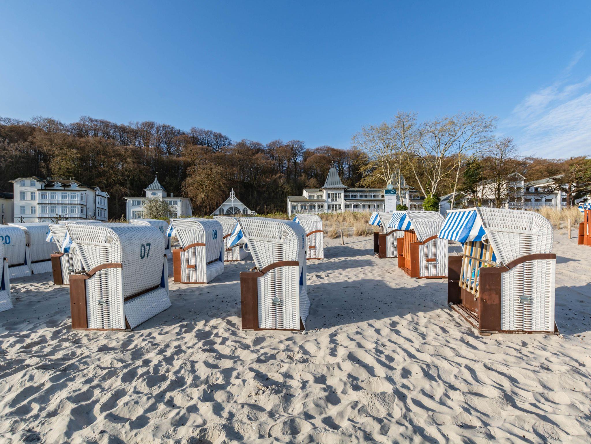 Sie erwarten stilvoll eingerichtete 1 - 3 Zimmer-Ferien-Apartments, mit Balkon mit frontalem Meerblick oder mit Südbalkon mit Blick in den Granitzer Wald, Pkw-Stellplatz am Haus, Waschmaschine und Trockner gegen Gebühr sowie ein Strandkorb in der Sommersaison. In allen Apartments steht Ihnen WLAN zur Verfügung. Ein Fahrstuhl ist im Seeschloss vorhanden, womit Sie ganz komfortabel die Apartments erreichen.