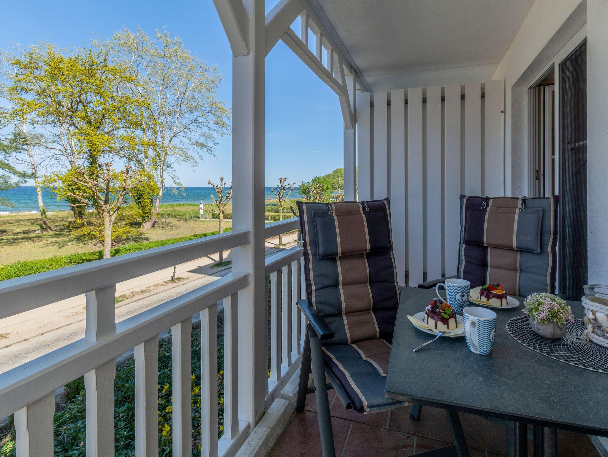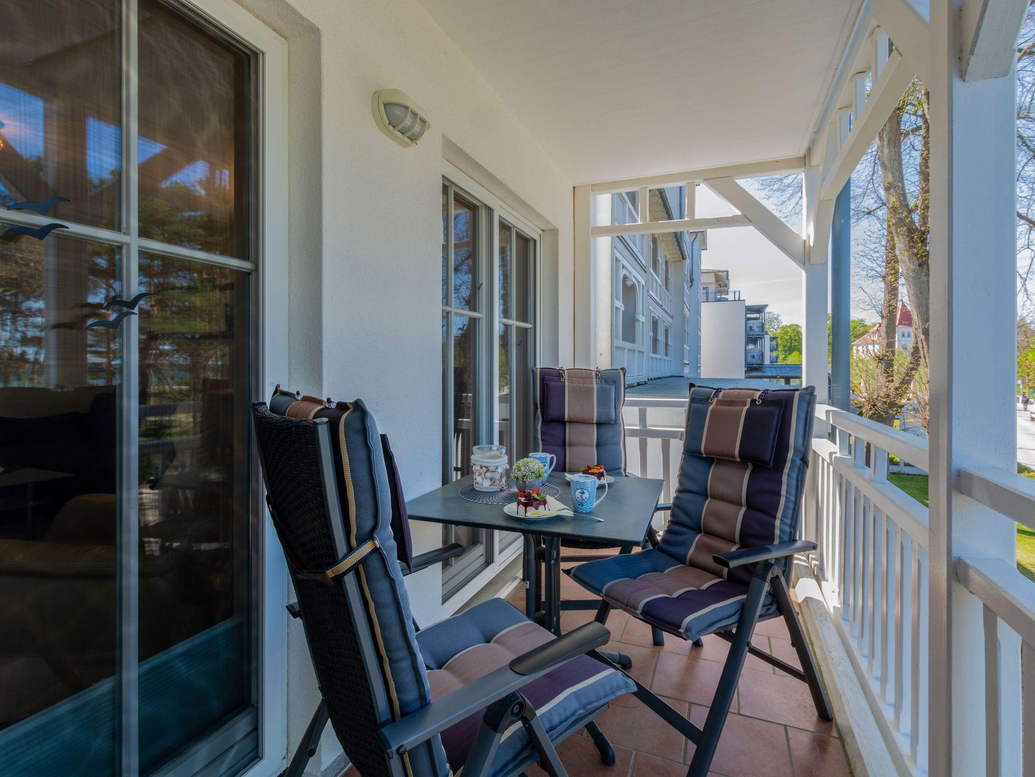 Stilvolles Apartment direkt an der Strandpromenade von Binz mit Meerblick und Balkon.