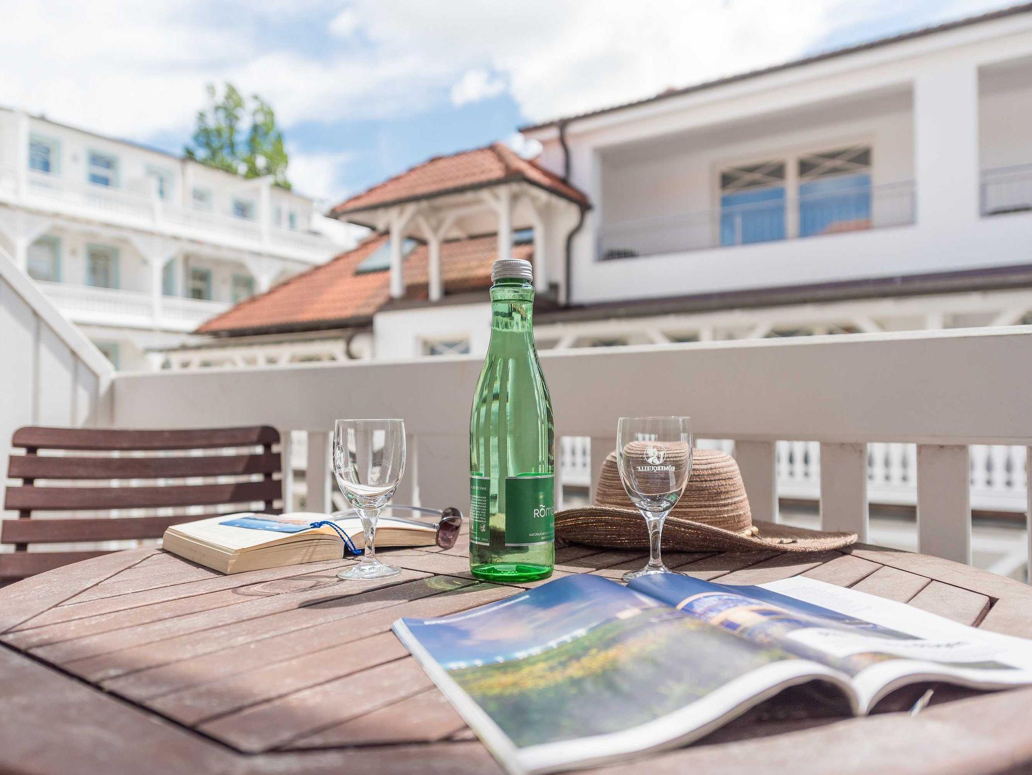 Alle unsere Zimmer sind liebevoll eingerichtet und bestechen mit einmaligem Komfort. Die modernen Bäder sind kleine Wohlfühl-Oasen mit viel Raum zur freien Entfaltung, alle Räumlichkeiten sind mit TV, Telefon, Zimmersafe und einer Minibar ausgestattet. Unsere mondänen Suiten verfügen außerdem über einen vollausgestatteten Küchenbereich sowie eine einladende Badewanne ? zum Träumen und Genießen. Besonders eindrucksvoll: Aus vielen unserer Doppelzimmer und Juniorsuiten haben Sie einen unvergesslichen Panoramablick auf die Ostsee.