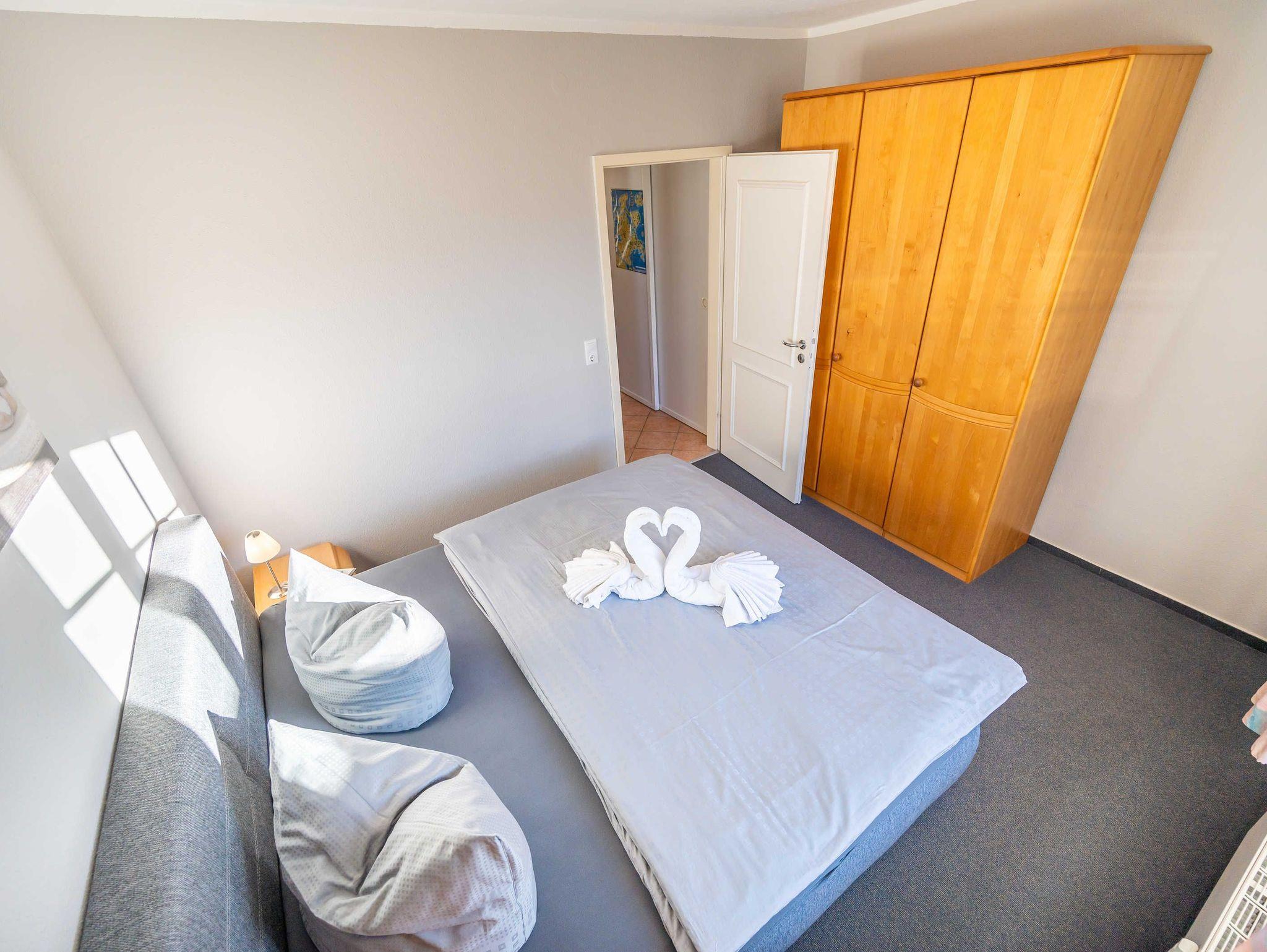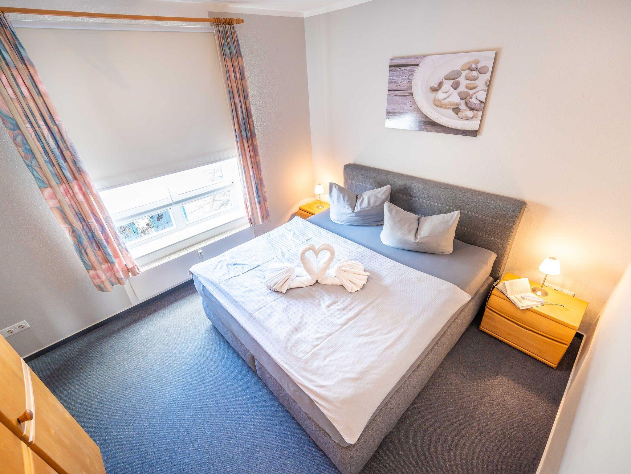 Strandnahes 3-Raum-Appartement im 2. OG gelegen und bis 4 Personen belegbar. Sehr geschmackvoll eingerichtet mit allem Komfort, wie gut ausgestattete Küchenzeile mit Mikrowelle, Geschirrspüler, Ceran-Kochfeld, Backofen offen zum Wohnbereich. Schlafzimmer mit Boxspringbett und großzügigen Schrank. Badezimmer mit Dusche und WC. Liebevoll eingerichteter Wohnraum mit bequemer Couch und Sessel, TV, Radio und W-LAN . 2. Schlafraum mit Etagenbett sowie TV ausgestattet. Angrenzender möblierter Balkon.