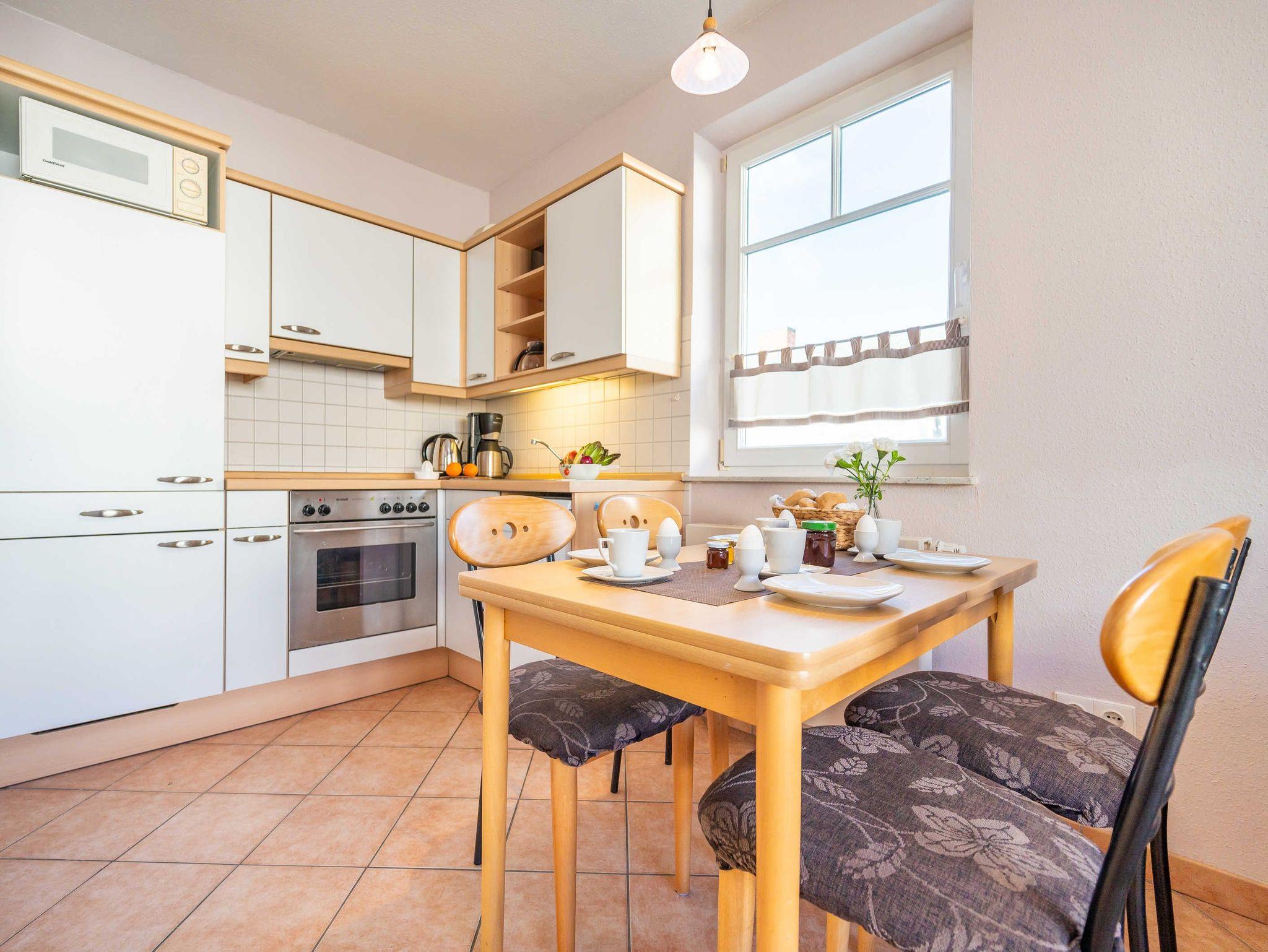 Dieses Appartement zeichnet sich durch besondere Helligkeit ( große Fensterfront ) aus. Münzwaschmaschine und Münztrockner im Haus.1 PKW-Stellplatz sowie Abstellmöglichkeit für Fahrräder (abschließbarer Gemeinschaftsraum ) stehen auf dem Grundstück zur Verfügung. Wäschepaket auf Wunsch pro Person 25,-. Bitte um Vorbestellung oder gleich online dazu buchen.