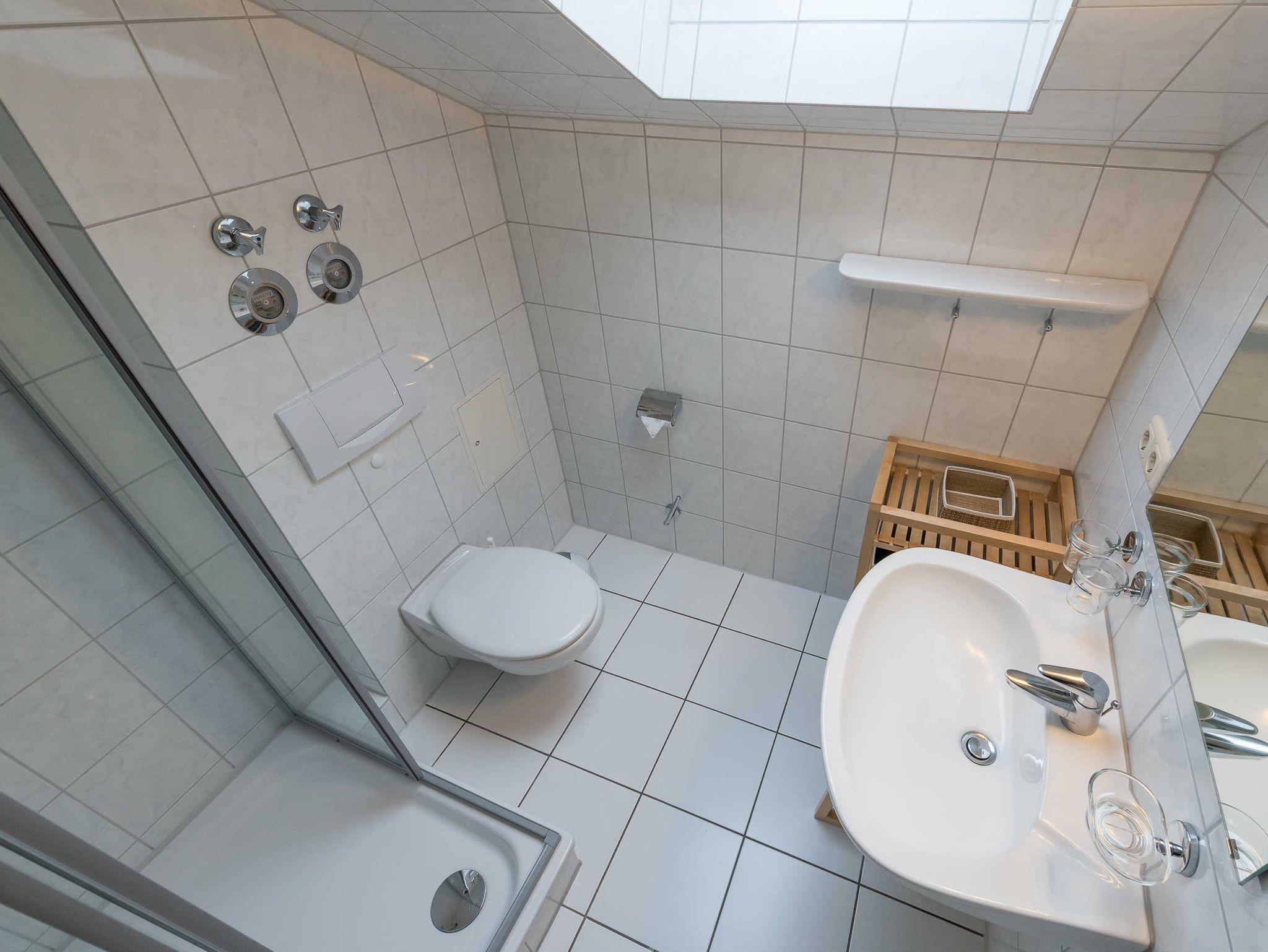 Im Badzimmer finden Sie eine Echtglasdusche und WC.