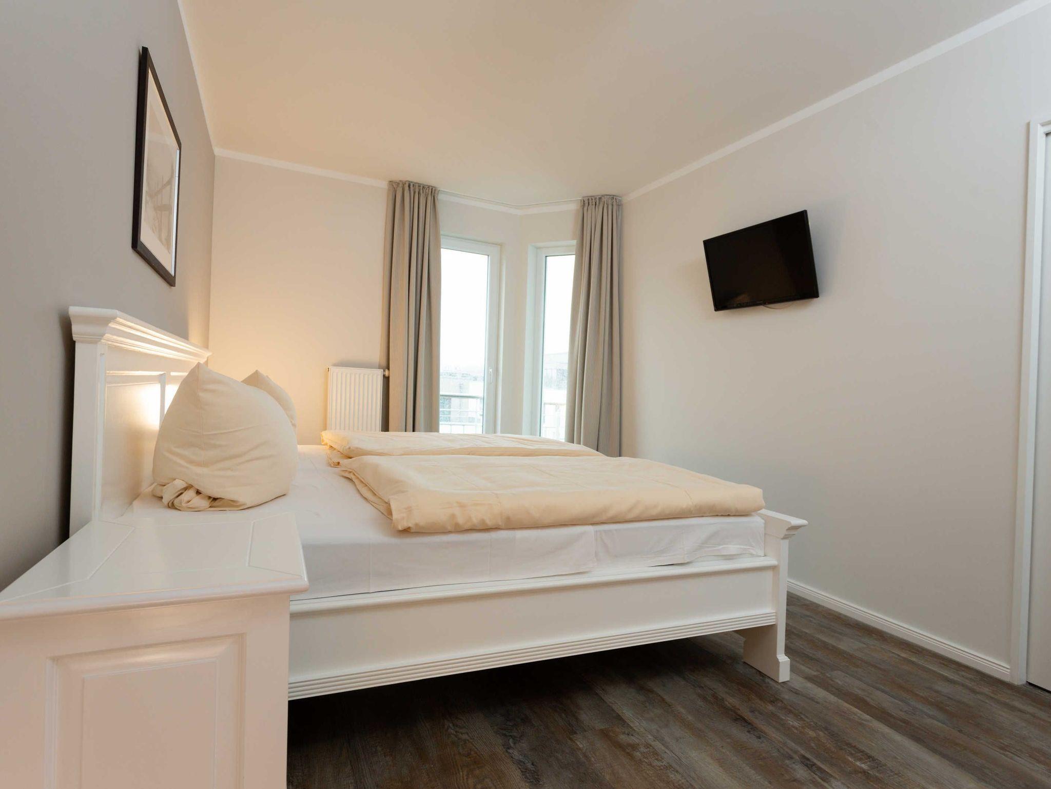 1 Schlafzimmer mit einem Doppelbett, Kleiderschrank und TV