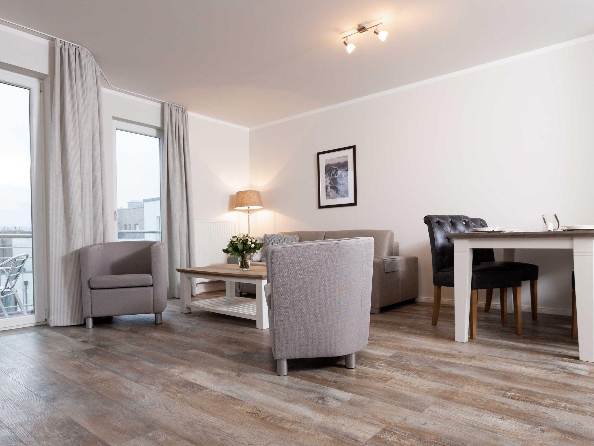 Ferienwohnung mit hochwertiger Möblierung und Balkon für 2-4 Personen im 3. OG mit 1 Schlafzimmer (2 Zimmer / 57 m²):