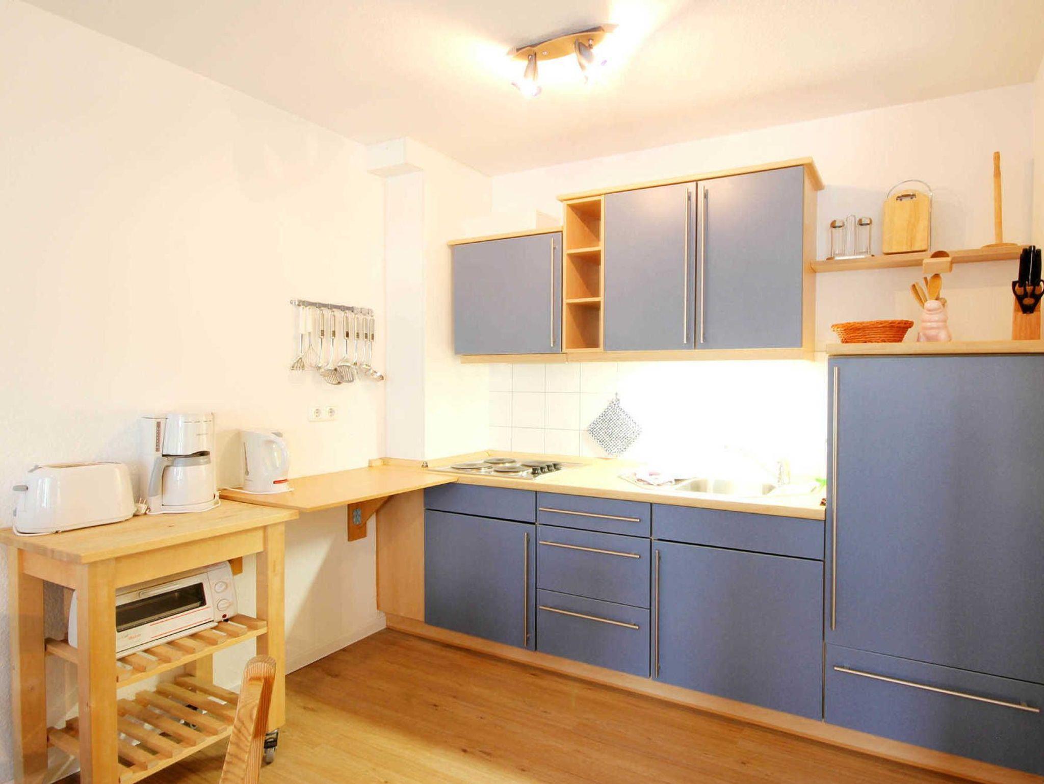 Ihre gemütliche 2-Zimmer Ferienwohnung 90295 ist ca. 55 qm groß und befindet sich im 1. Obergeschoss. Diese Wohnung teilt sich auf in ein Schlafzimmer mit Doppelbett und Kleiderschrank, ein Badezimmer mit Dusche, WC und Waschtisch sowie ein Wohnraum mit einer Schlafcouch, 2 Schwingsessel, TV, einer kleinen Musikanlage und separater Essecke. In der angrenzenden Küchenzeile können Sie einen Kühlschrank, Mini-Backofen, Kaffeemaschine, Toaster und Wasserkocher nutzen. Ebenso ist diese natürlich komplett mit Geschirr und diversen Kleinteilen ausgestattet. Zur Ferienwohnung gehört natürlich auch ein Süd-Balkon, der einen Blick auf die kleine Seitengasse und Nachbargrundstück bietet.