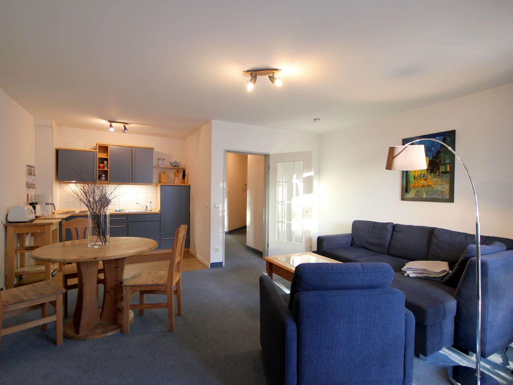 Gemütliche 2-Zimmer Ferienwohnung in Binz mit Süd-Balkon, kostenfreiem WLAN und eigenem PKW-Stellplatz nur 230 m vom Strand entfernt.