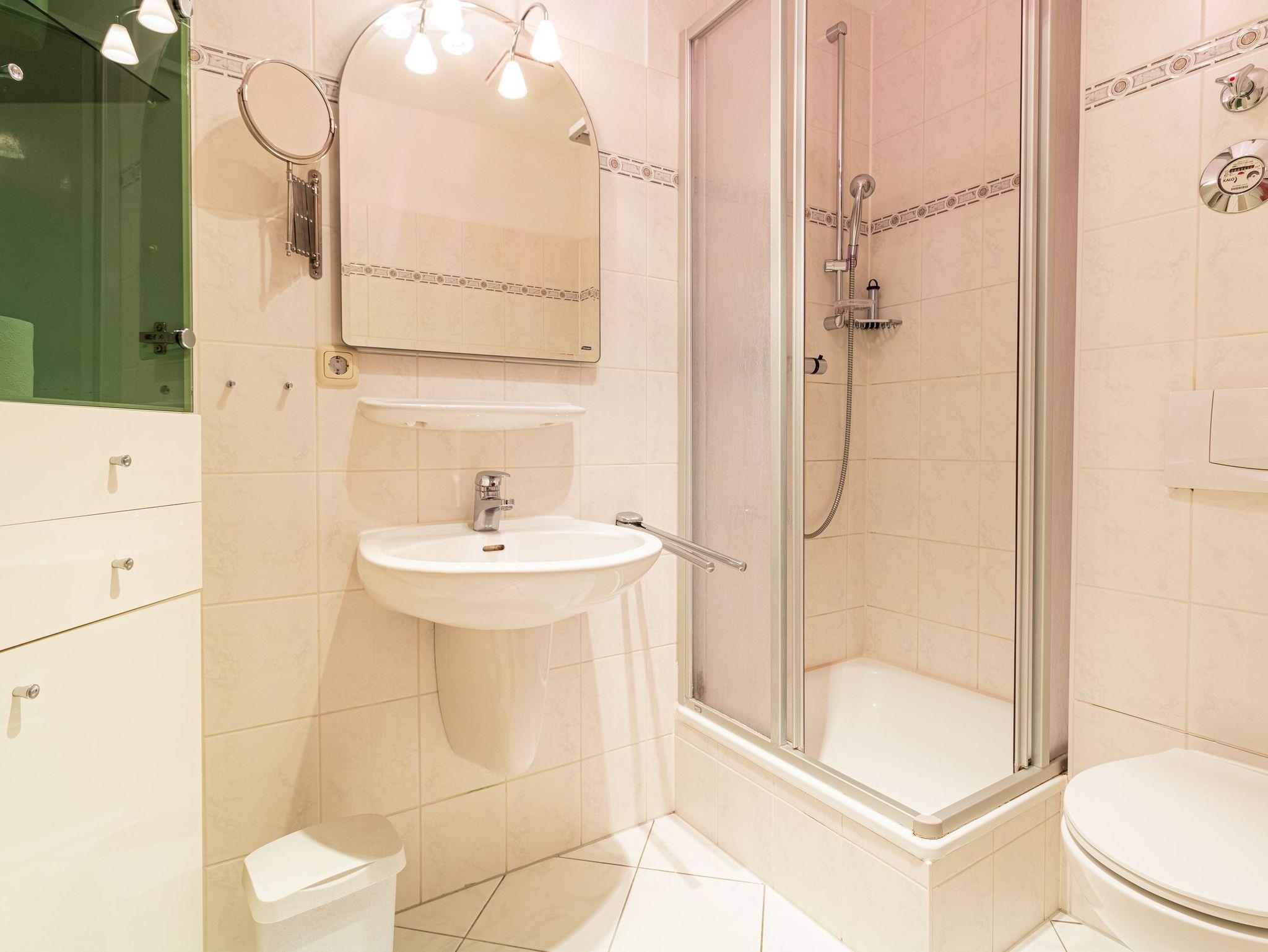 Das helle Bad lädt beim Frisch machen außerdem zum Entspannen und wohl fühlen ein.