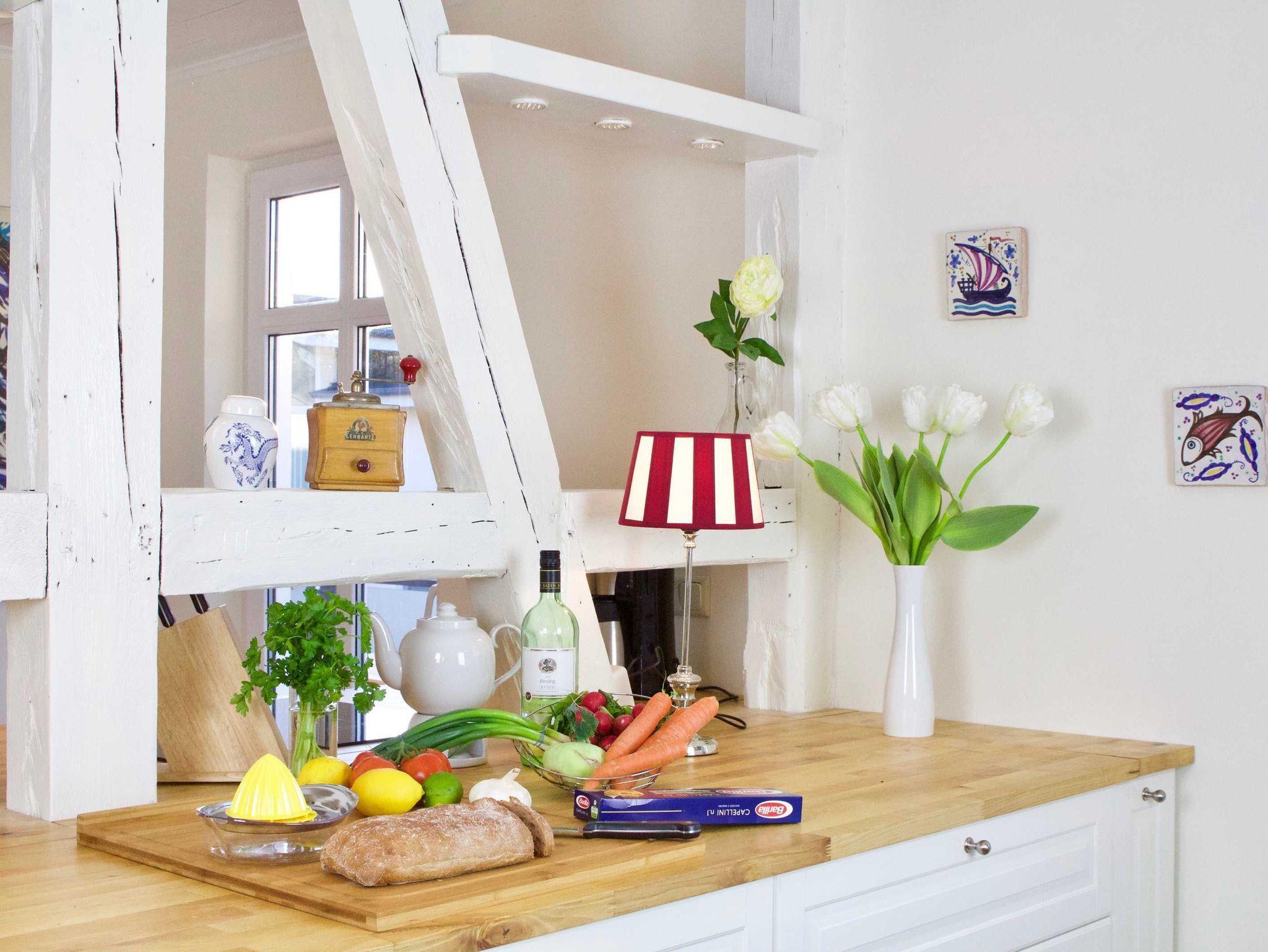 Ausstattung der Ferienwohnung im Obergeschoss (4 Zimmer/2 Bäder/110 m²)