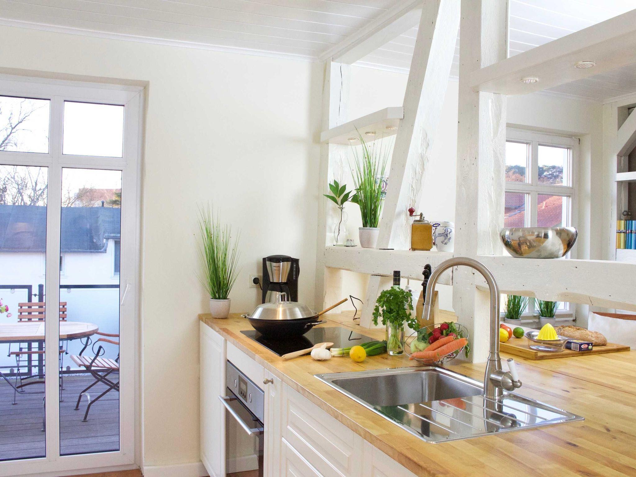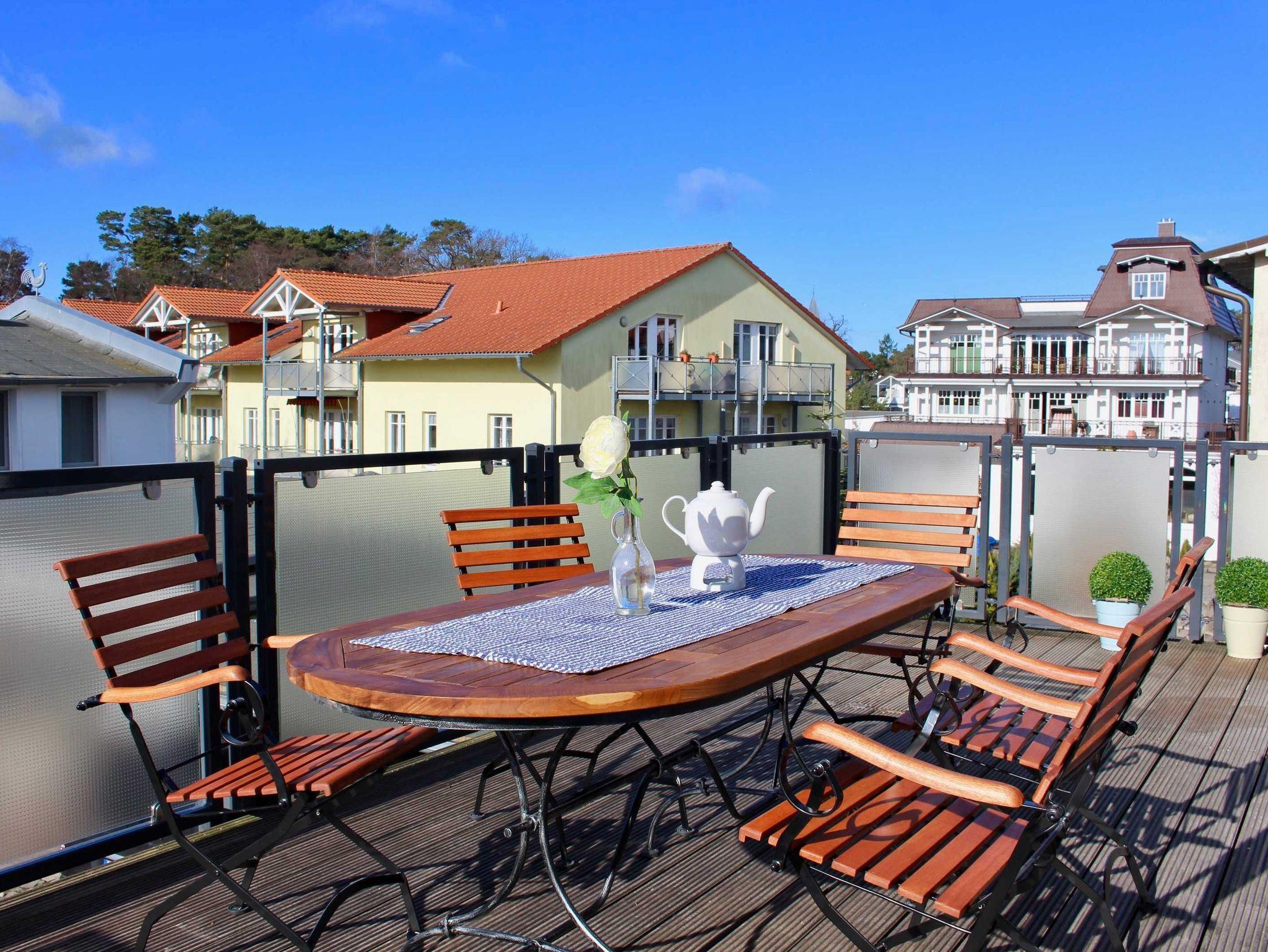 Großzügige Ferienwohnung in Binz, nur 300 m vom Strand entfernt, mit Balkon, Kamin und kostenfreien Parkplätzen.