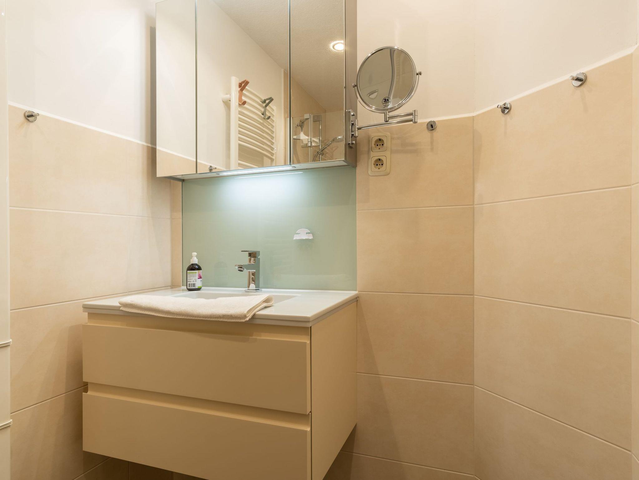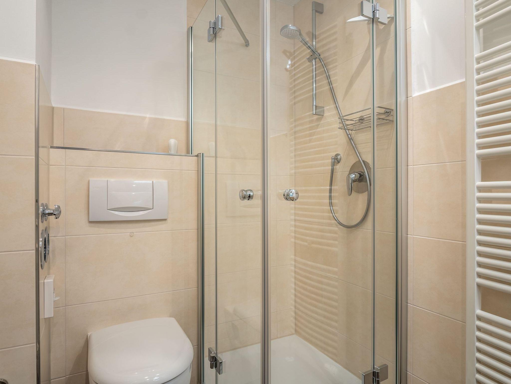 Zu der Ferienwohnung gehört natürlich auch ein modernes Duschbad.