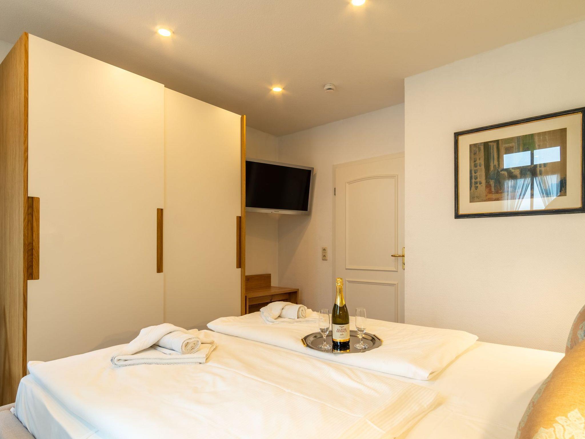 Das separate Schlafzimmer ist mit einem 1,80 m großen Doppelbett, Kleiderschrank und TV ausgestattet.