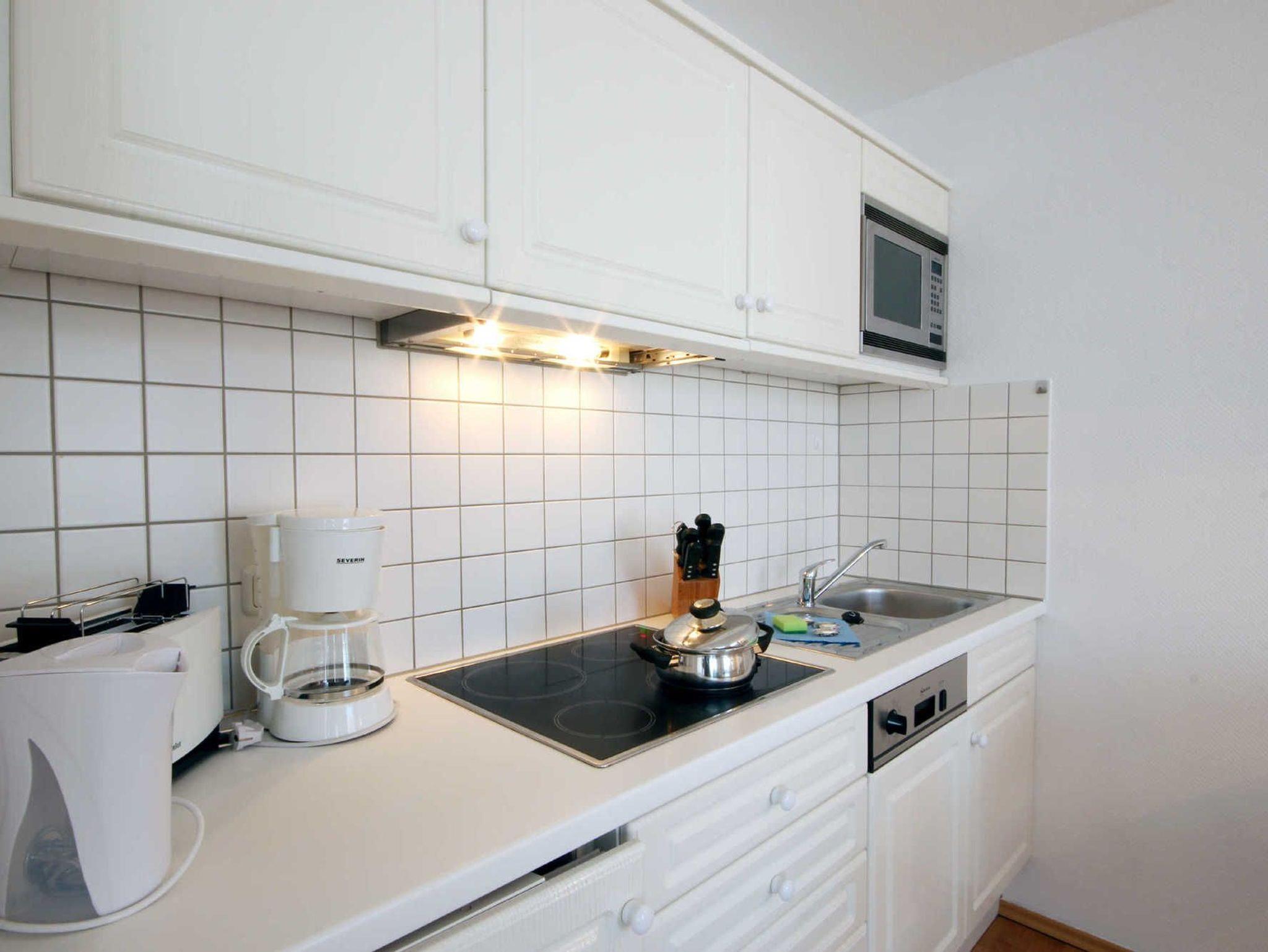 Dem kombinierten Wohn- Schlafraum schließt sich eine Küchenzeile und der Balkon an. Vom vorgelagerten Flur aus erreichen Sie das geräumige Duschbad mit Waschtisch, Handtuchheiztrockner und WC. Im Wohn-Schlafraum finden Sie neben einer Sitz- und einer Essecke ein Doppelbett, ein Flachbild-TV und einen kostenlosen WLAN-Zugang. Die Küche verfügt u.a. über Geschirrspülmaschine, Mikrowelle Kühlschrank, Kaffeemaschine, Toaster, Wasserkocher und diverse andere Küchenhelfer. Im Flur finden Sie einen geräumigen Kleiderschrank. Ihr Vierbeiner ist hier Herzlich Willkommen! Ein kostenloser PKW-Stellplatz steht Ihnen auf dem Parkplatz Zentrum (ca. 400 m vom Objekt entfernt) während Ihres Aufenthaltes zur Verfügung.