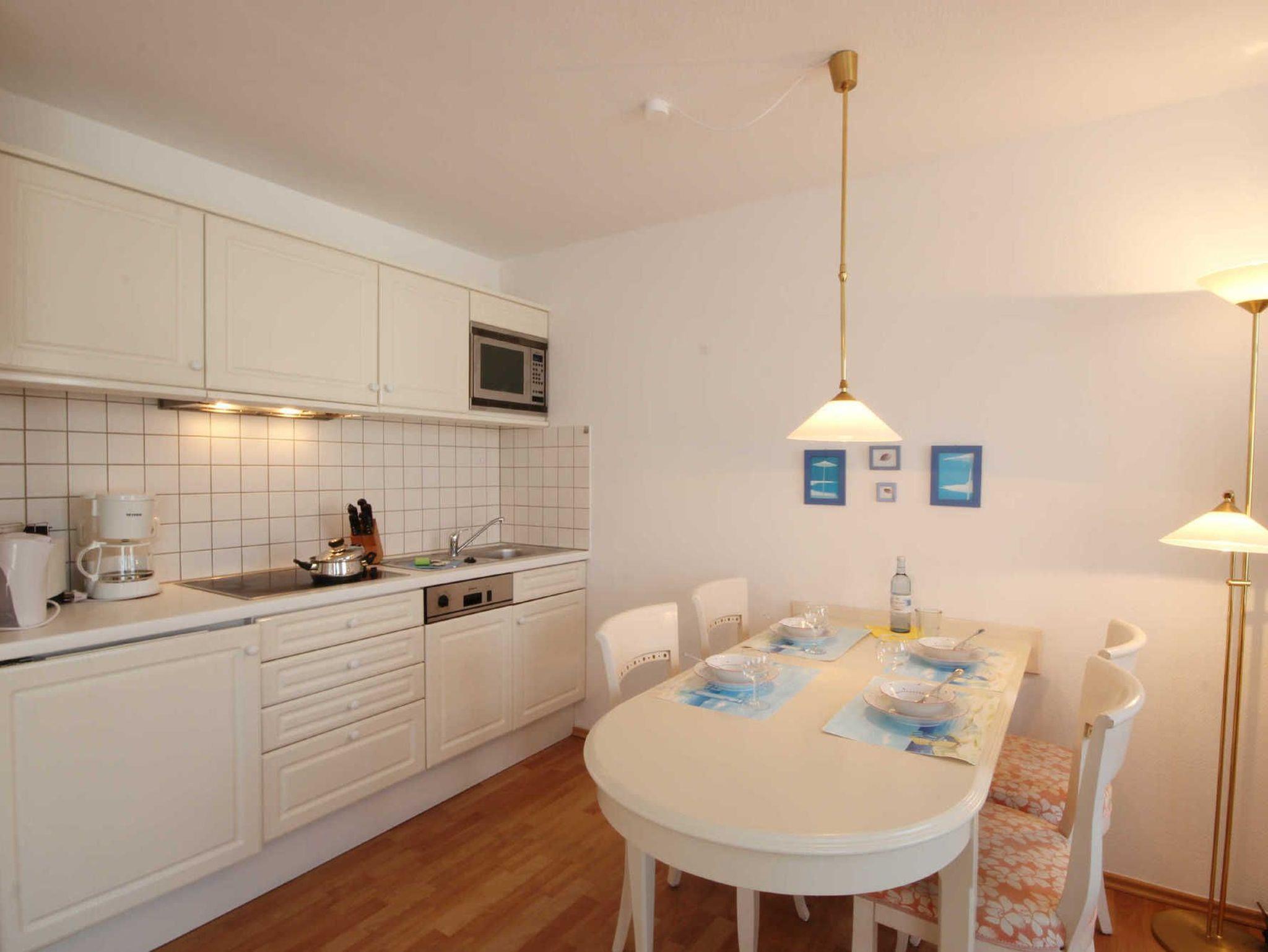 Moderne 1-Zimmerwohnung mit großem Balkon und Strandnähe in Binz, ideal für 2 Personen und Haustiere willkommen.