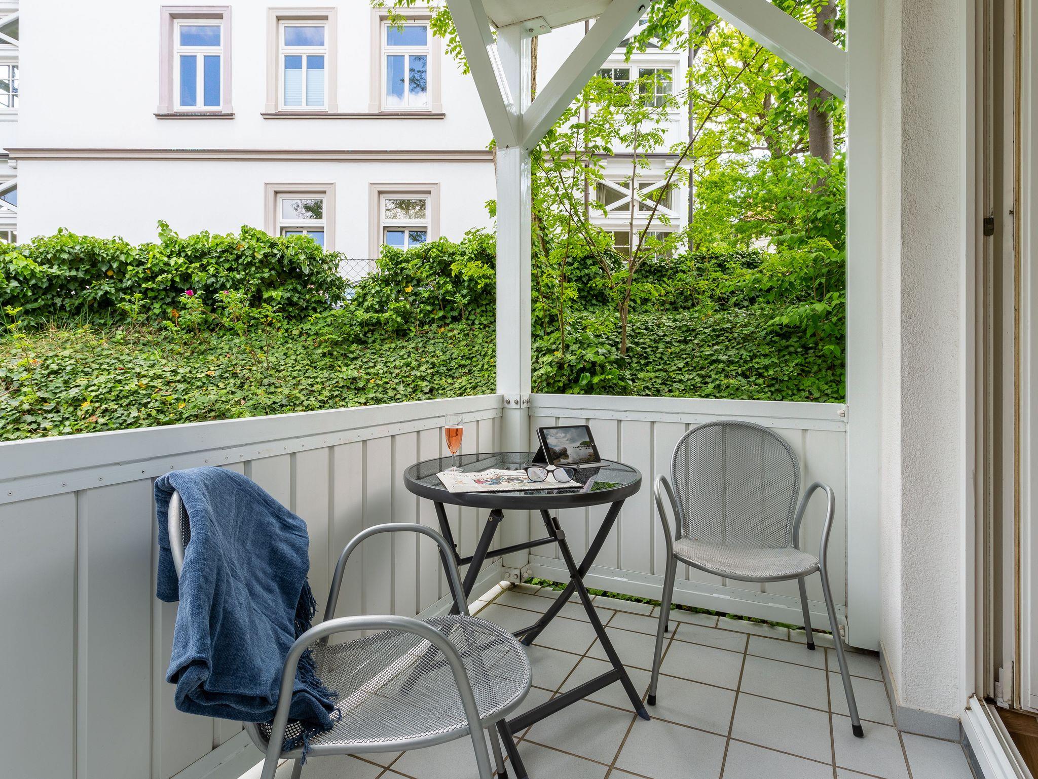 Modernes Appartement Wellenreiter in Binz mit Terrasse, Balkon und Strandkorb, nur 200 m vom Ostseestrand entfernt.