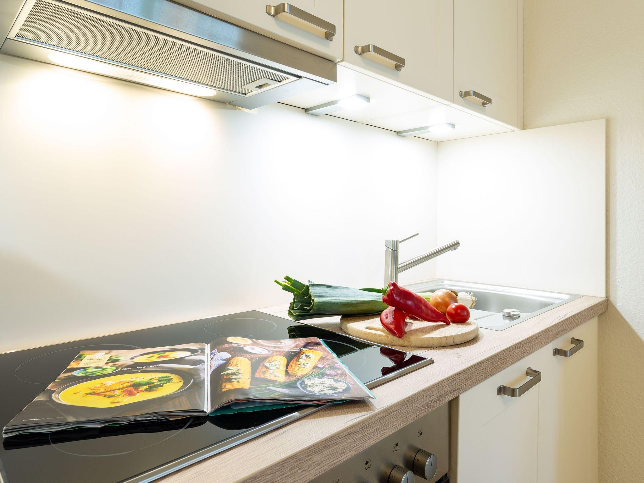 Im Wohnraum finden Sie neben der Sitzecke mit Schlaffunktion ein separater Essplatz. Die Kochzeile ist mit Geschirrspülmaschine, Backofen, Kühlschrank, Mikrowelle und diversen Kleingeräten komplett ausgestattet.