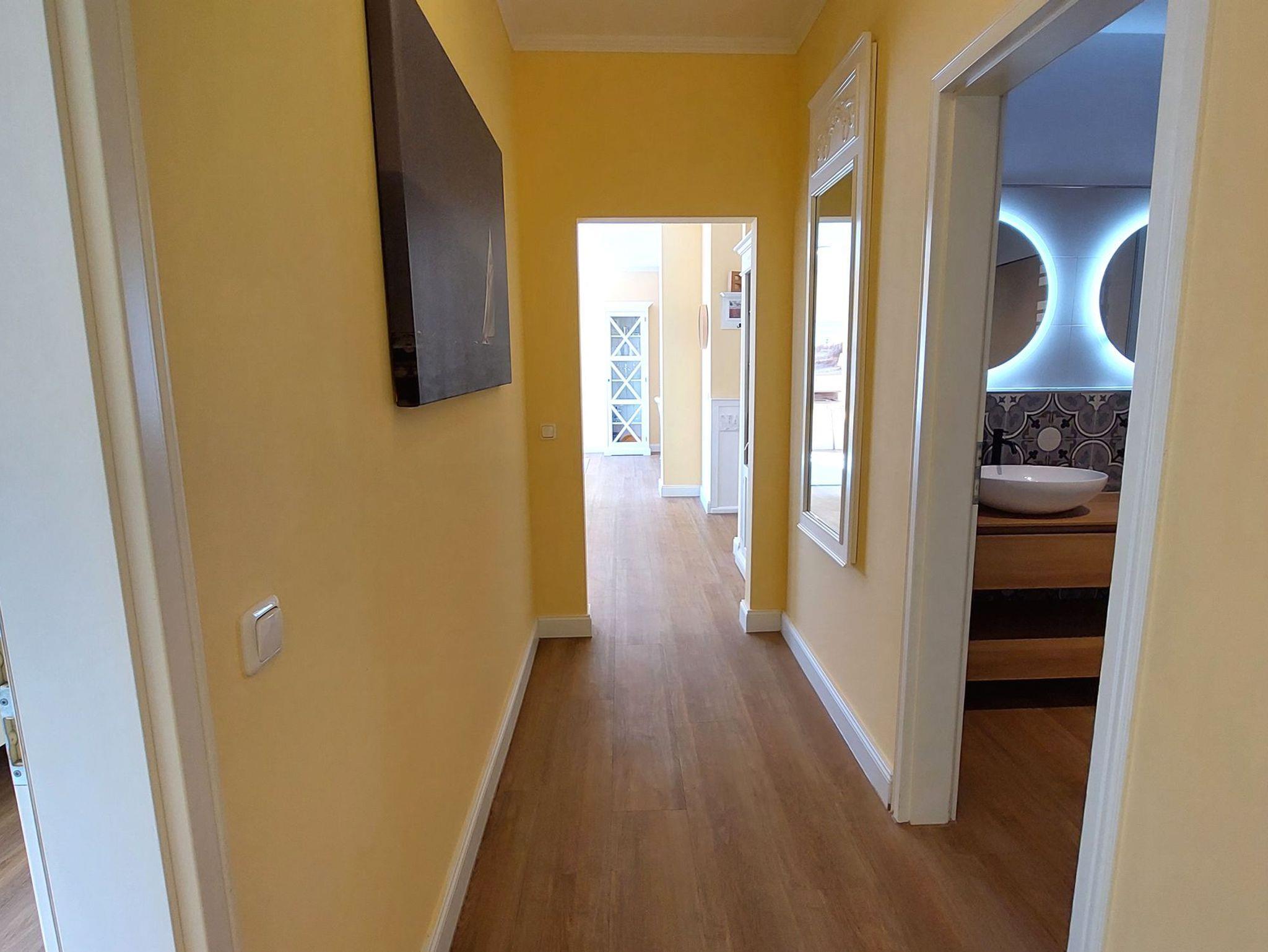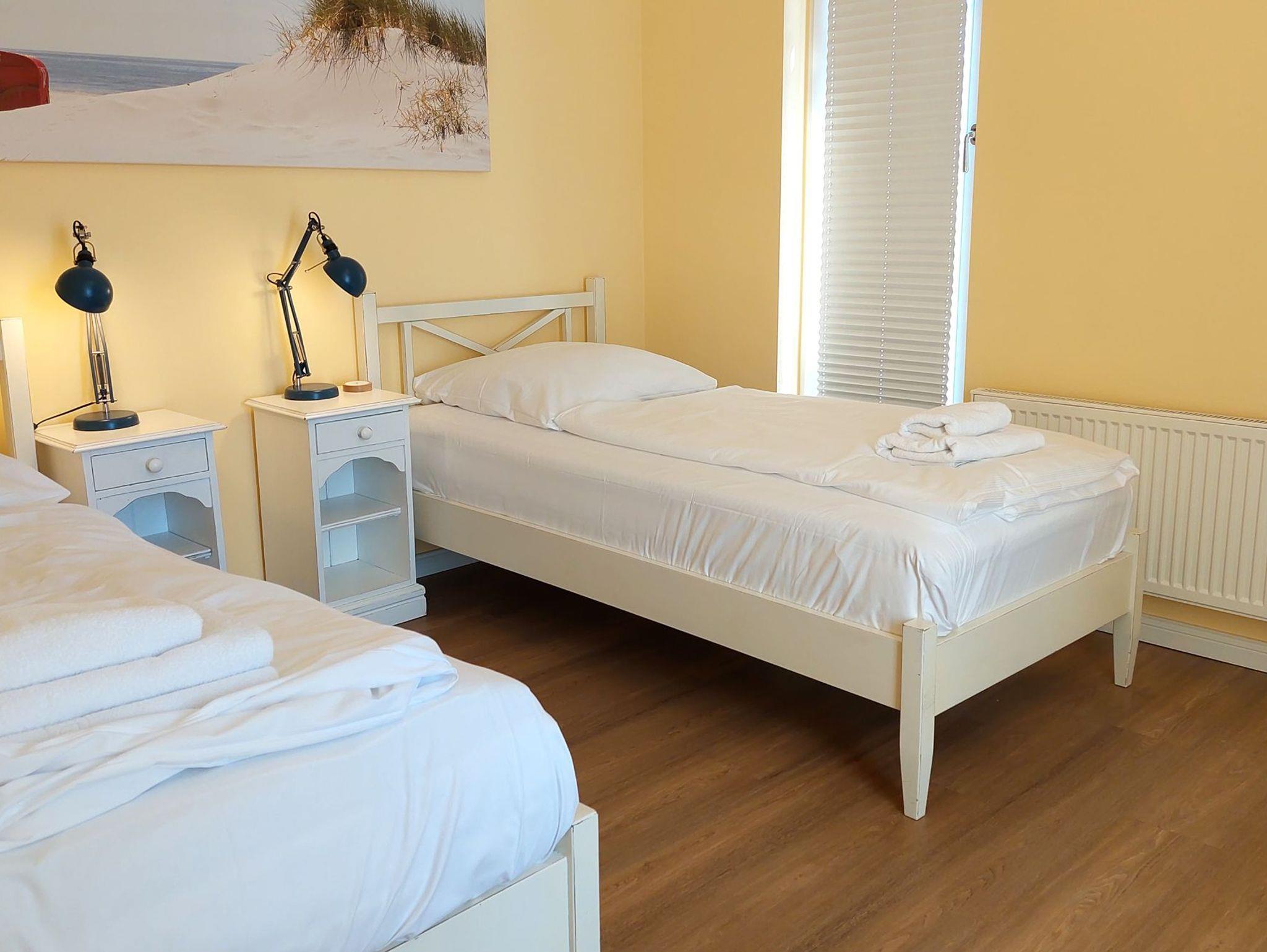 Neben dem Wohnraum mit integrierter Küche gibt es zwei separate Schlafräume, ein Badezimmer mit Waschtisch, Dusche und WC und eine separate Gästetoilette. Beide Schlafräum biete jeweils 2 Schlafgelegenheiten, einen Kleiderschrank und Zugang zum zweiten Balkon.