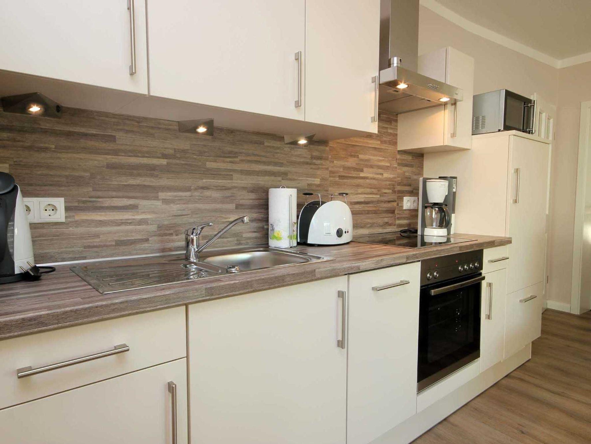 Die Küchenzeile ist mit Geschirrspüler, Cerankochfeld, Backofen, Kühlschrank mit Gefrierfach, Mikrowelle, Kaffeemaschine, Wasserkocher, Toaster sowie umfangreichem Kücheninventar komplett ausgestattet. Zusätzlichen Stauraum für Ihre Koffer oder Strandutensilien bietet der wohnungseigene Abstellraum. Zudem stehen Kinderreisebett sowie Hochstuhl für unsere kleinen Gäste zur Verfügung. Rundum eine erstklassig eingerichtete Wohnung zum Abschalten vom Alltag und Genießen des Urlaubes.