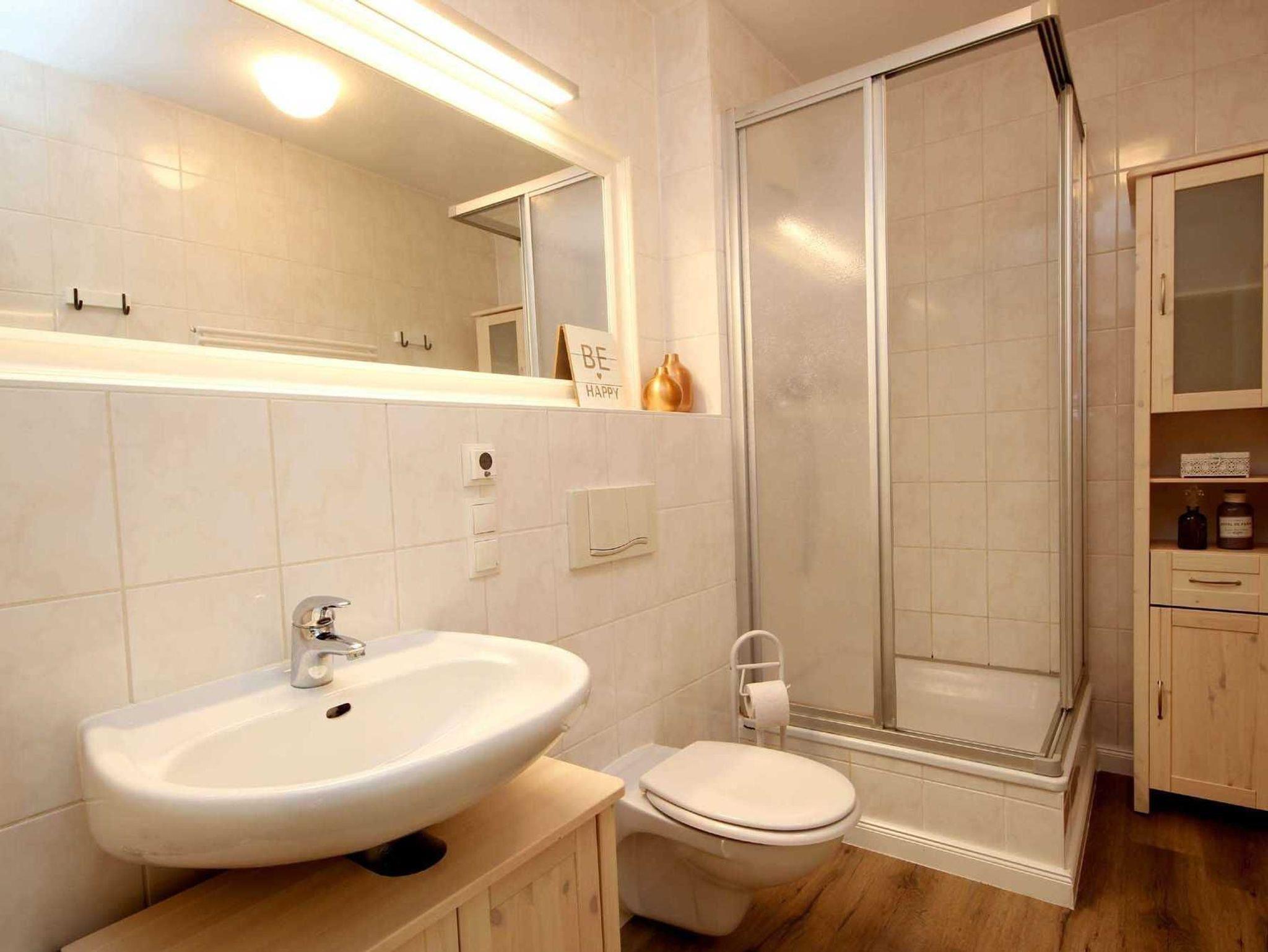 Die hell und hochwertig eingerichtete Ferienwohnung teilt sich auf in einen Flur mit Garderobe, gemütlichen Wohnraum mit zusätzlichem modernen Schrankbett für die 3. und 4. Person, Essbereich und kompletter Wohnküche sowie ein separates Schlafzimmer mit großem Doppelbett und erstklassigen Boxspringmatratzen für einen erholsamen Schlaf, zusätzlichem Flachbild-TV und Kleiderschrank mit Spiegel sowie ein Badezimmer mit Waschtisch, WC und Dusche.