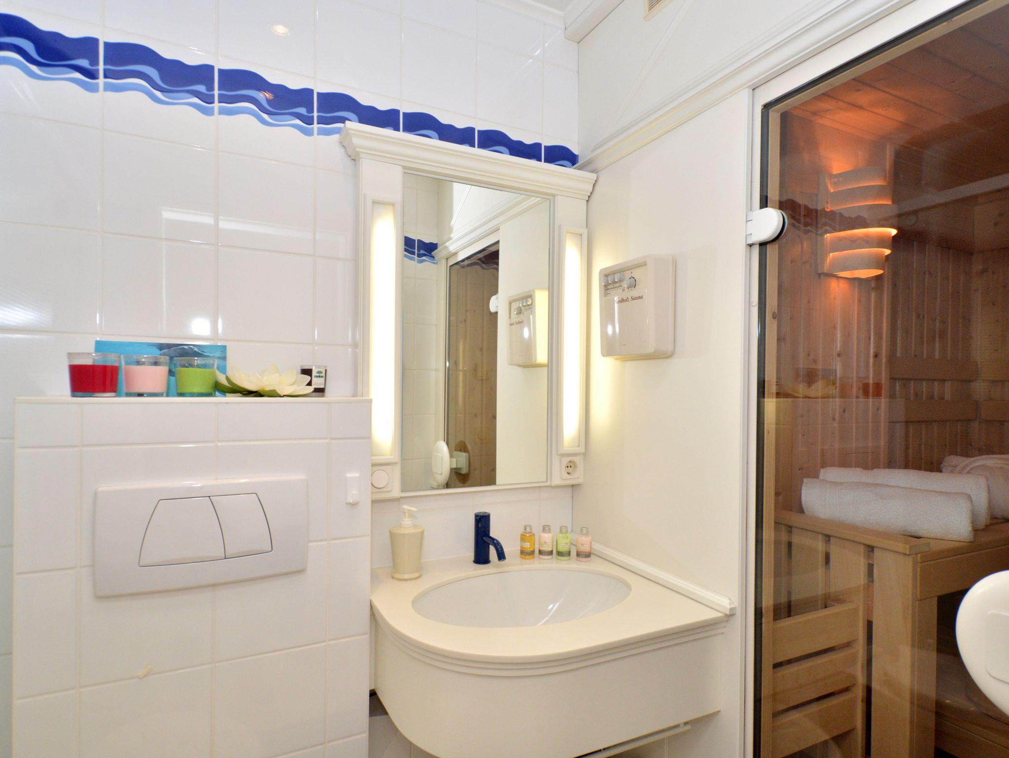 Die Wohnung verfügt über zwei Badezimmer: eines mit einer luxuriösen Doppelsitz-Badewanne von Villeroy & Boch, das andere mit einer großzügigen Dusche und einer integrierten Sauna ? perfekt für entspannende Stunden.