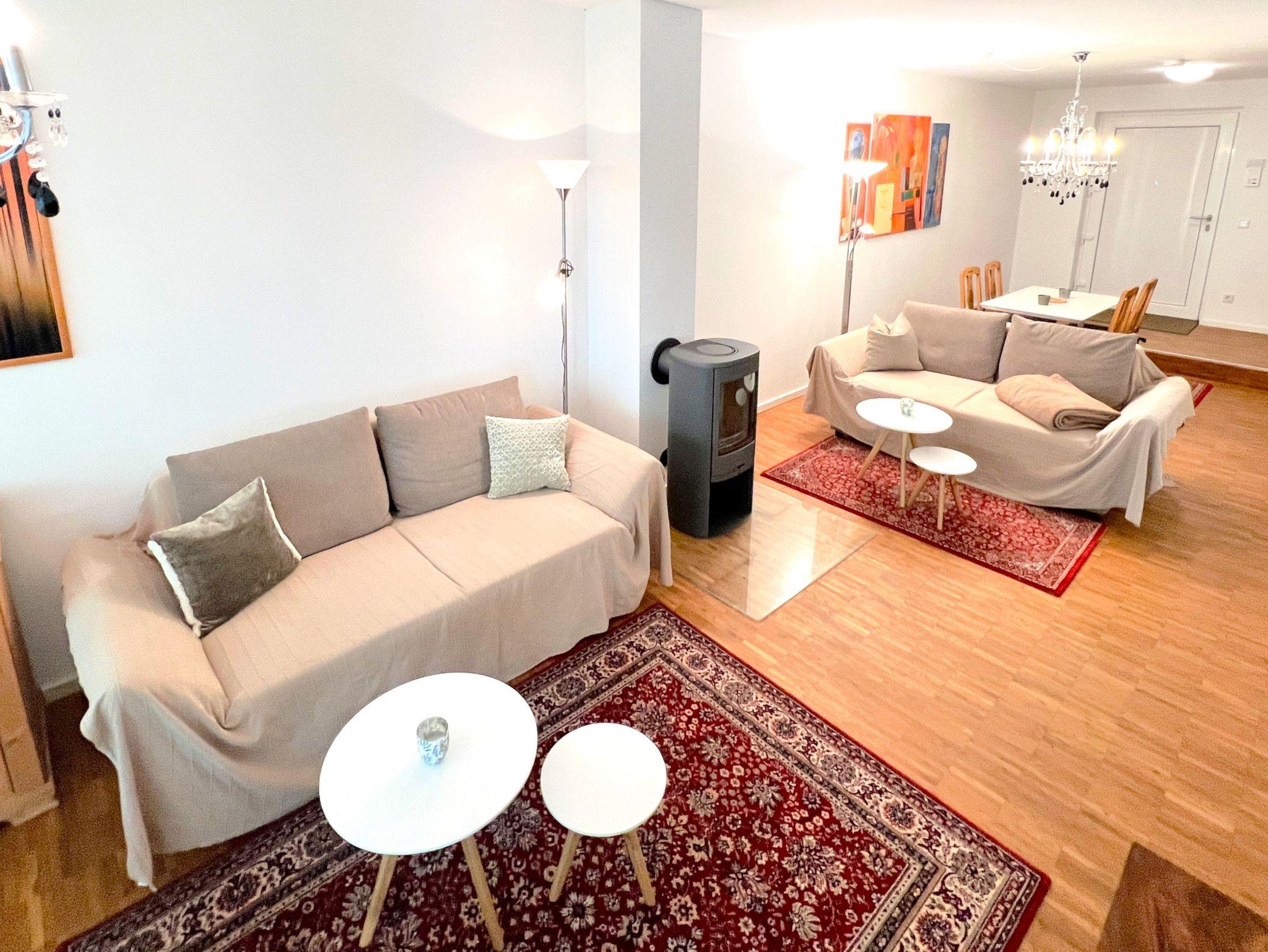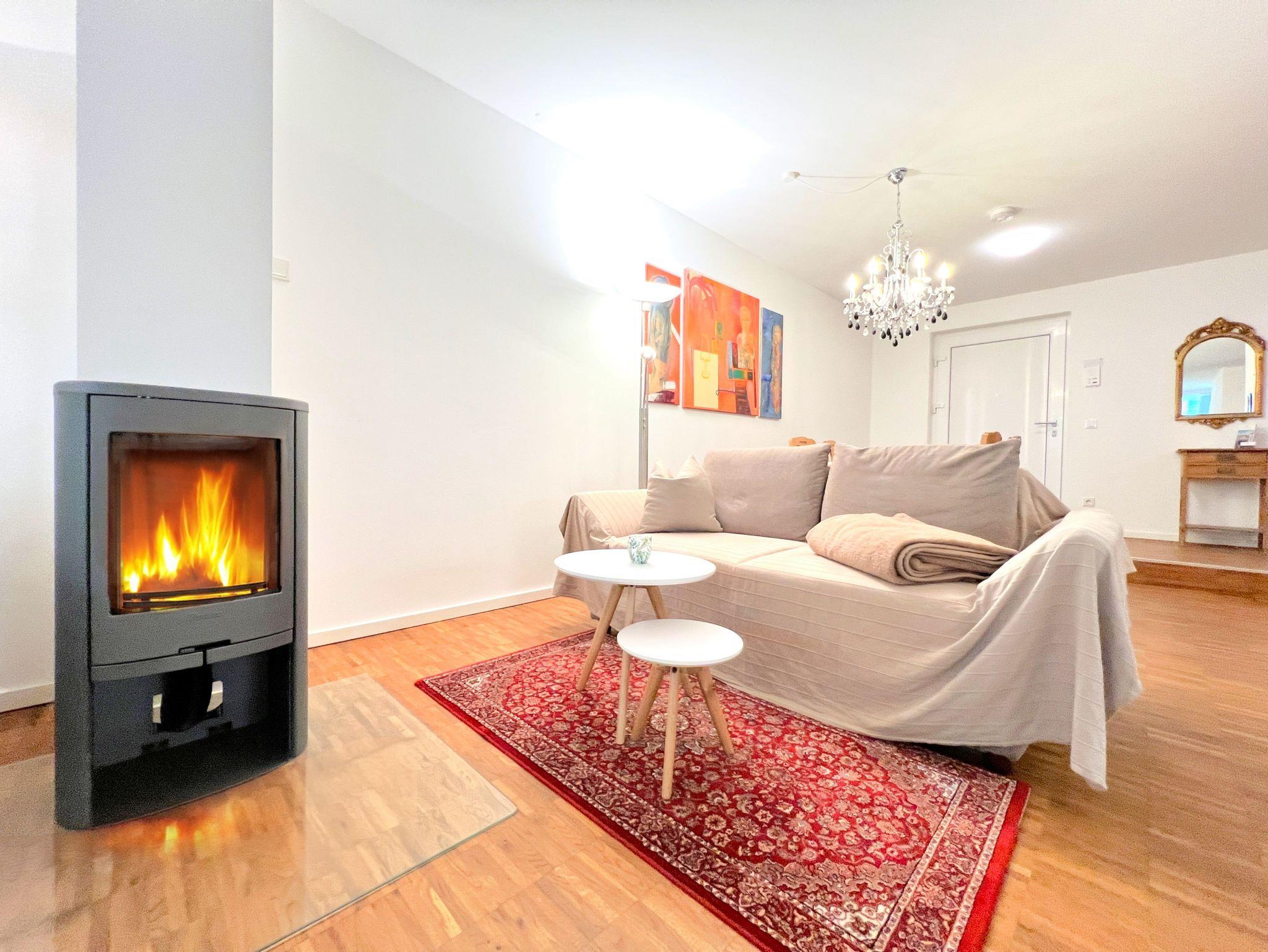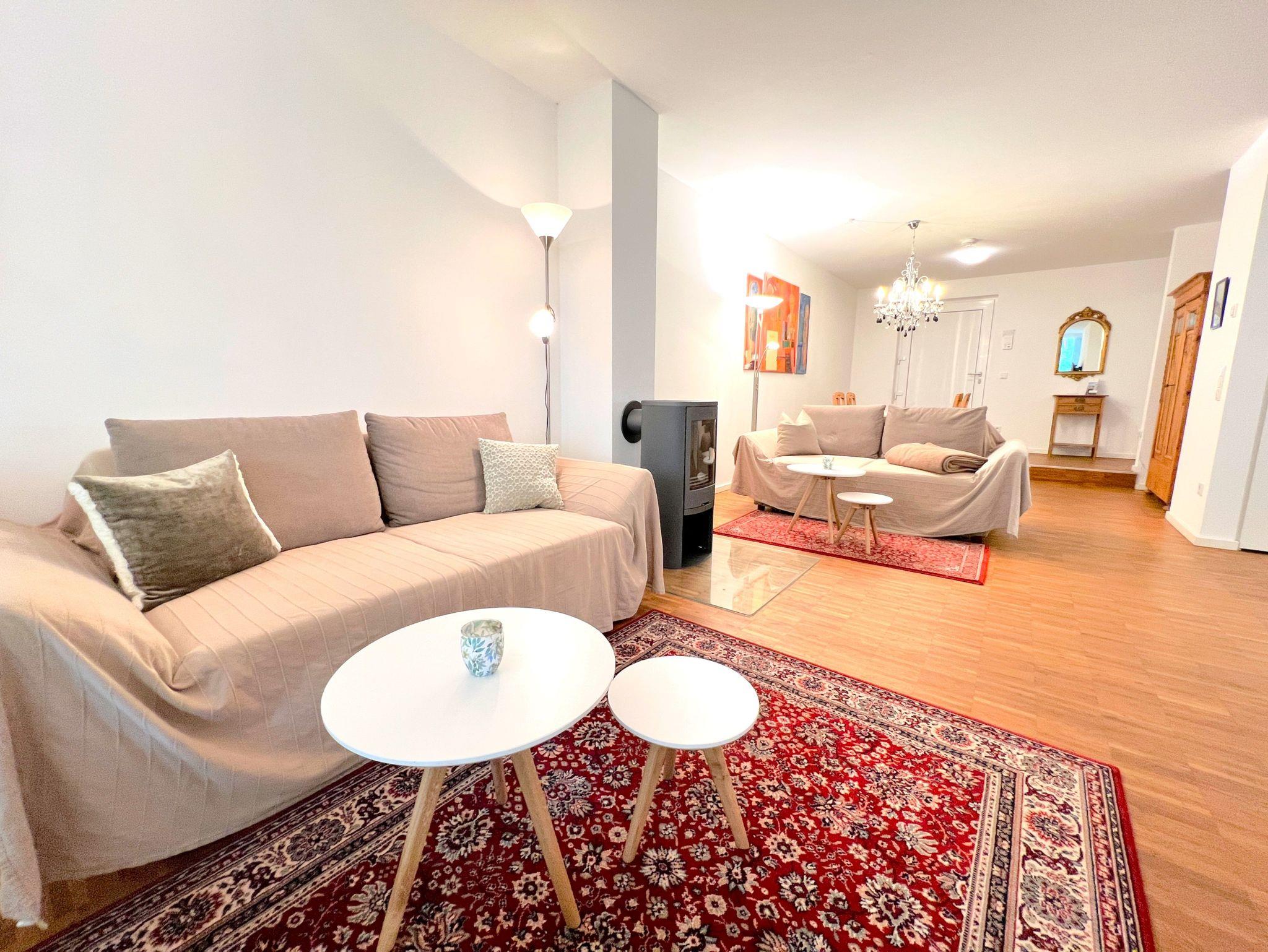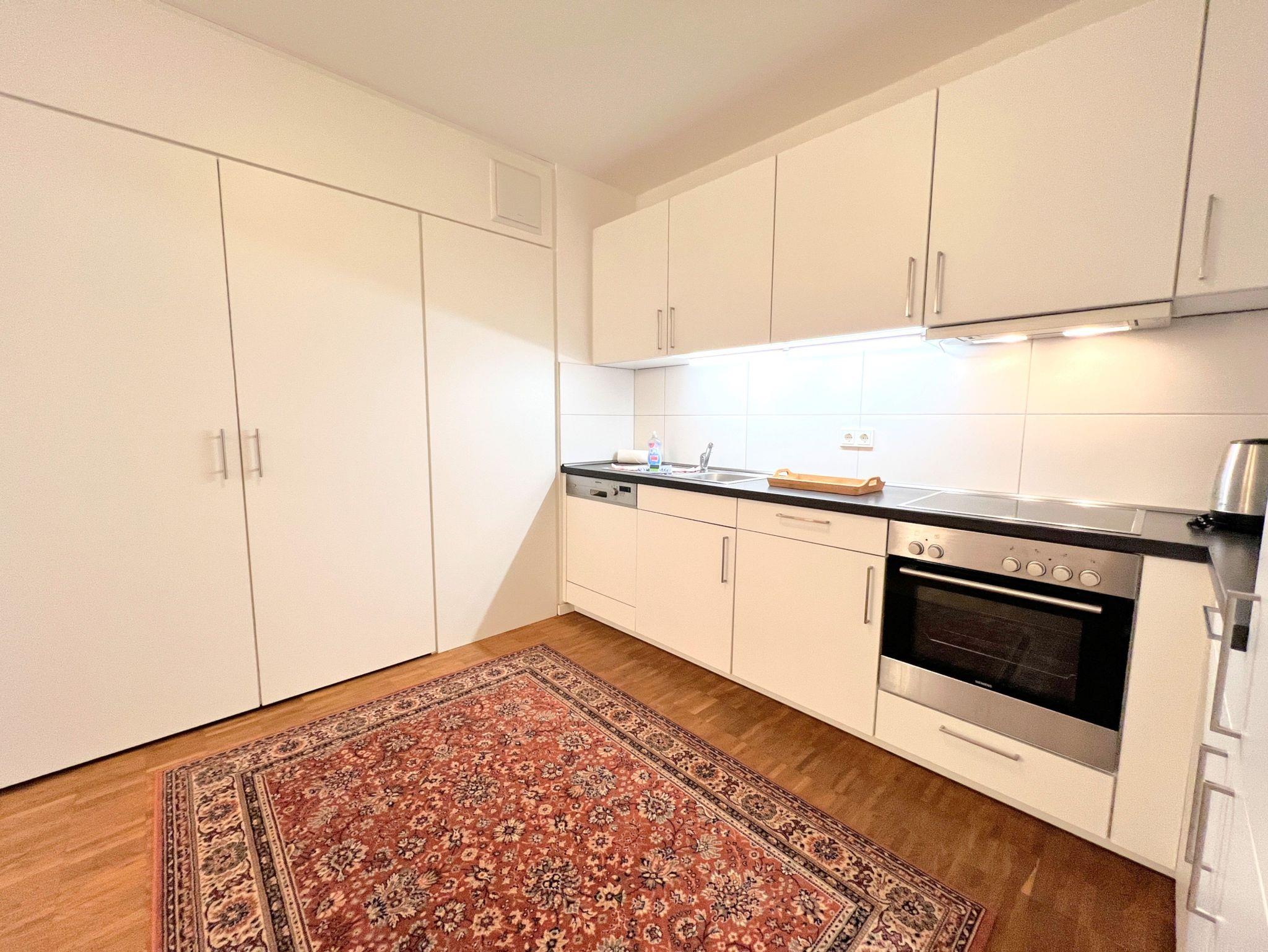 Das separate Schlafzimmer ist mit einem komfortablen Boxspringbett (1,80×2,00m) und TV ausgestattet. Die offene Küche verfügt u.a. über Backofen, Herd, Geschirrspüler, Kühlschrank mit Gefrierfach sowie Kaffeemaschine, Wasserkocher und Toaster. Das moderne Badezimmer bietet eine bodengleiche Dusche und eine Waschmaschine. WLAN, zwei Fernseher, Fußbodenheizung, ein Arbeitsplatz sowie ein Aufzug im Haus sorgen für zusätzlichen Komfort. Die Wohnung ist Nichtraucherbereich, Haustiere auf Anfrage.