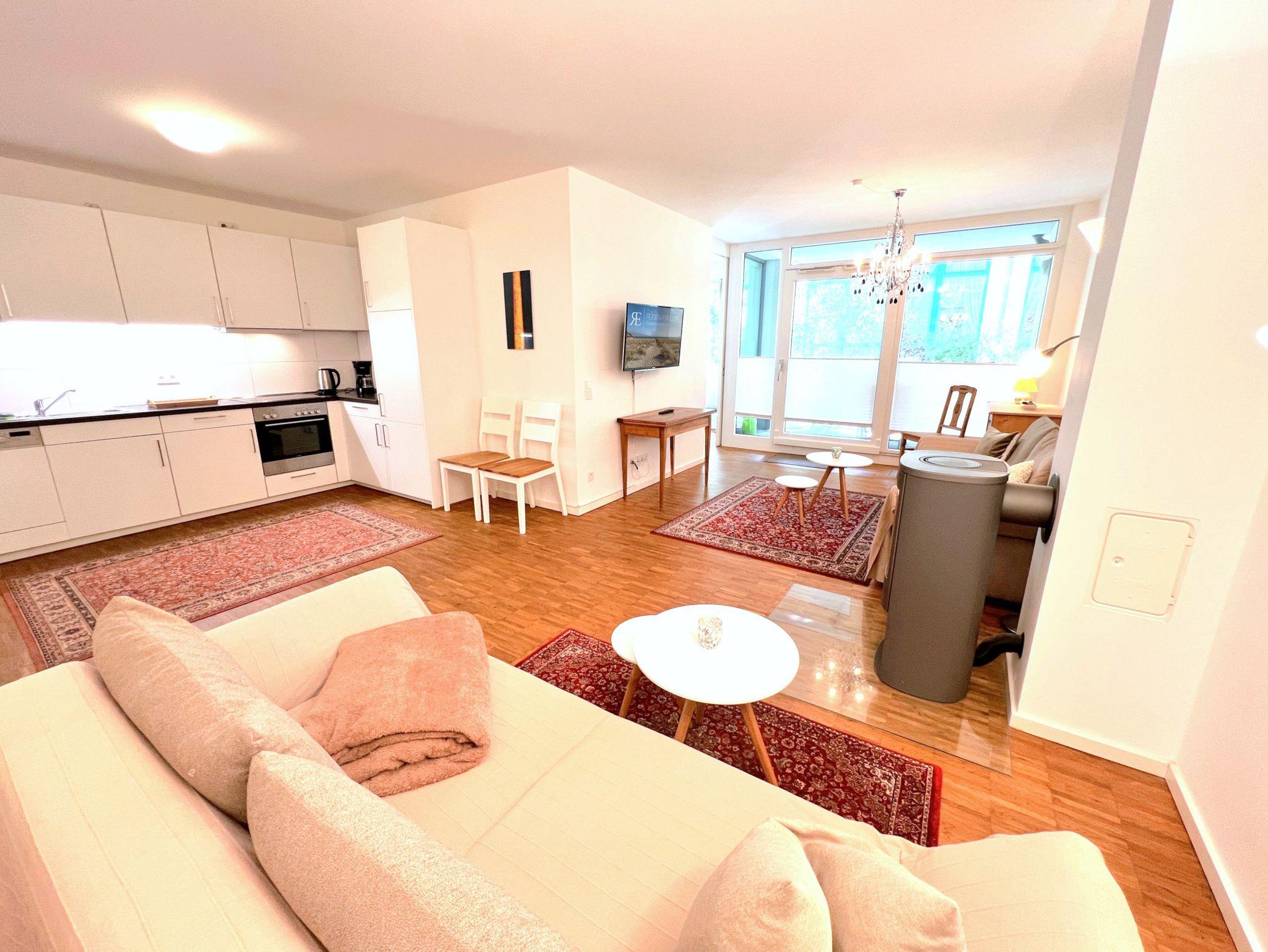Modernes DünenResort Binz mit Kamin, Terrasse und Strandnähe lädt zu erholsamen Tagen ein.