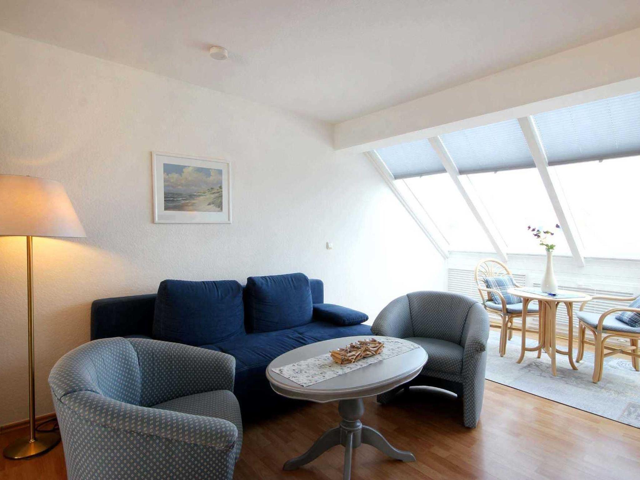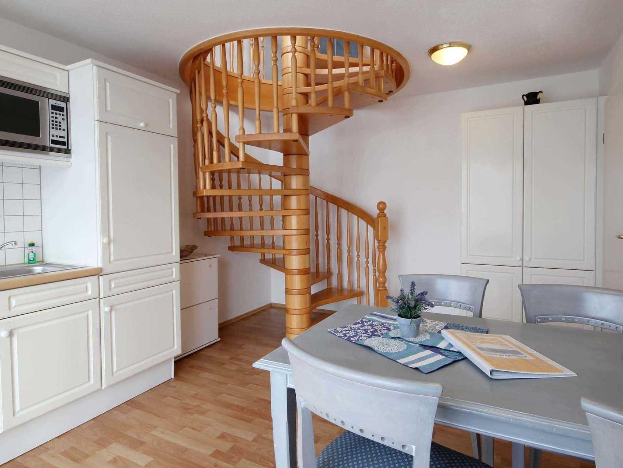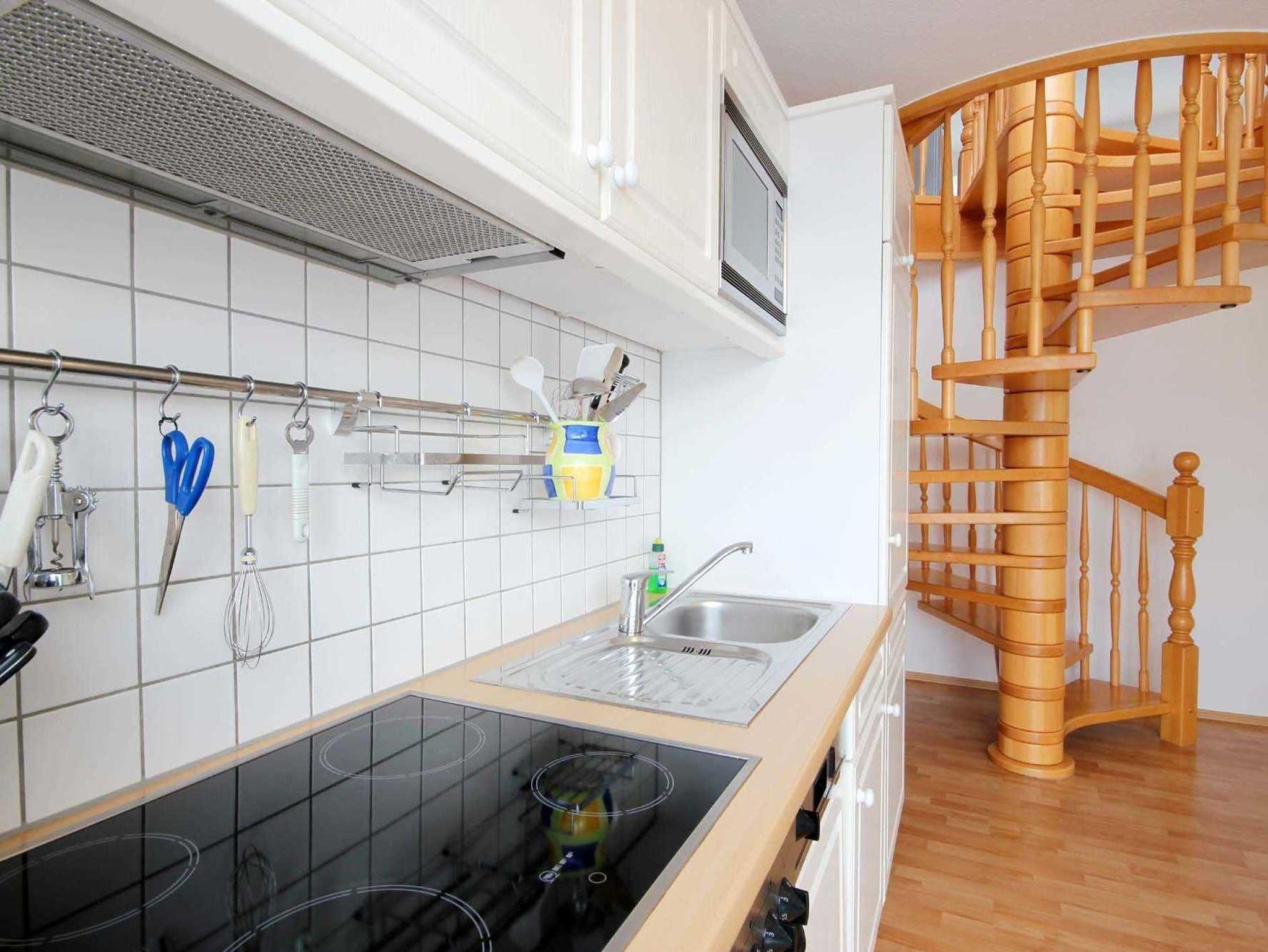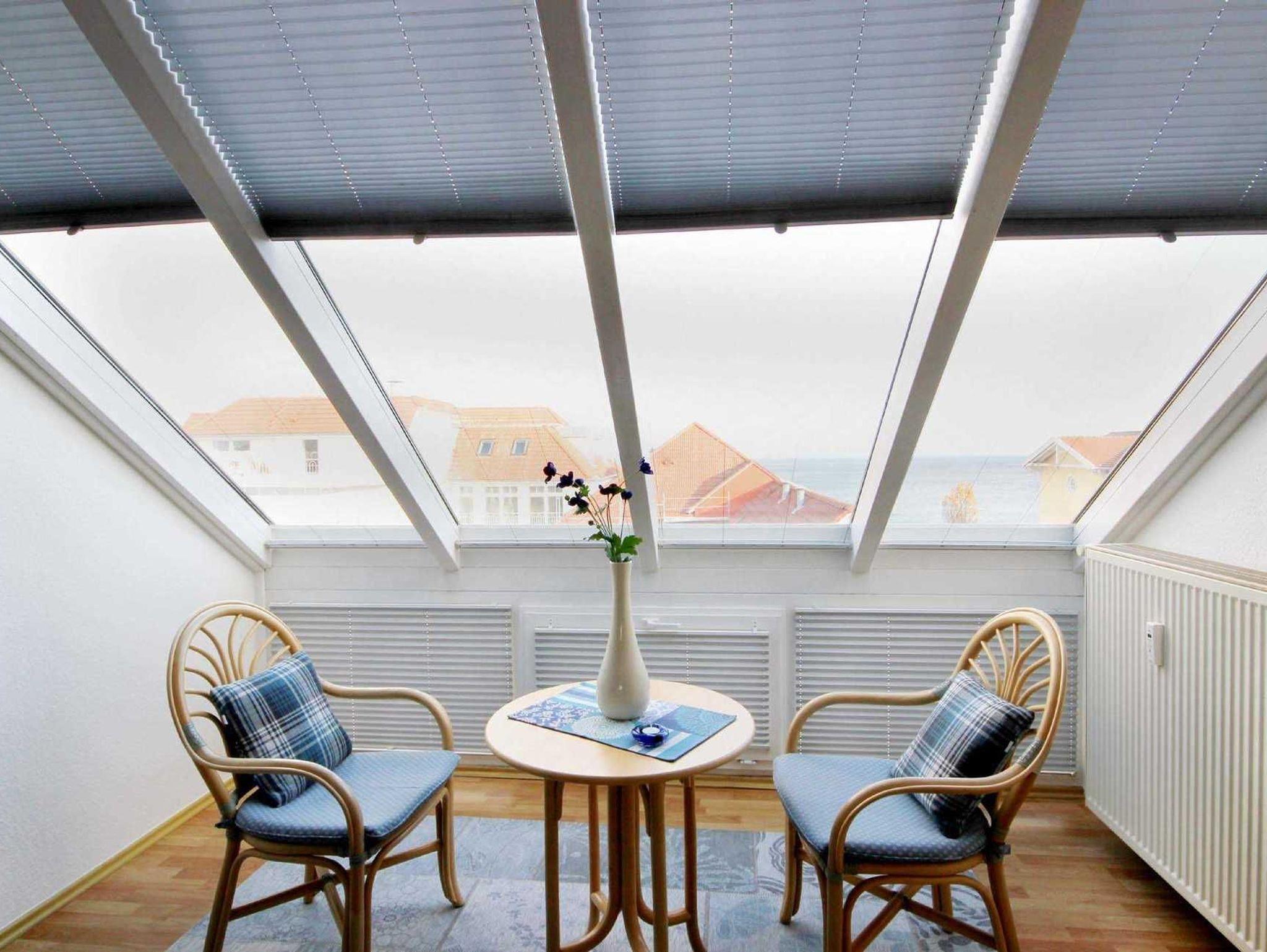 Ihre gemütliche Nichtraucher-Meerblick-Wohnung 23RB27 hat eine Größe von ca. 70 qm und ist für 4 Personen eingerichtet. Sie befindet sich im 3. und 4. Obergeschoss und verfügt über zwei Südbalkone. Im 3. Obergeschoß befindet sich das Schlafzimmer, die Küche mit Essplatz und das Badezimmer mit Waschtisch, Dusche und WC. Im separaten Schlafraum finden Sie ein Doppelbett und einen Kleiderschrank. Die Küche ist mit Cerankochfeld, Backofen, Geschirrspüler, Mikrowelle und diversen Kleingeräten komplett ausgestattet. Die Verbindung zwischen dem 3. und dem 4. Obergeschoß schafft eine geräumige Wendeltreppe. Das Wohnzimmer befindet sich im 4. Obergeschoß und erstreckt sich über die gesamte Breite des Hauses. Hier befindet sich eine gemütliche Sitzgruppe mit Schlafsofa und eine Schmökerecke. Von hier aus haben Sie einen schönen Blick auf die Promenade und die Ostsee. Zur technischen Ausstattung gehören ein TV-Gerät, kostenloses WLAN und eine Musikanlage. Ihren PKW können Sie kostenfrei auf dem wohnungseigenen Parkplatz im nahegelegenen Parkhaus einstellen. Haustiere sind in dieser Wohnung nicht erlaubt.
