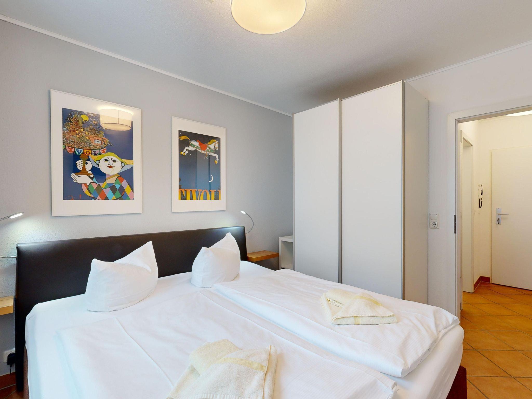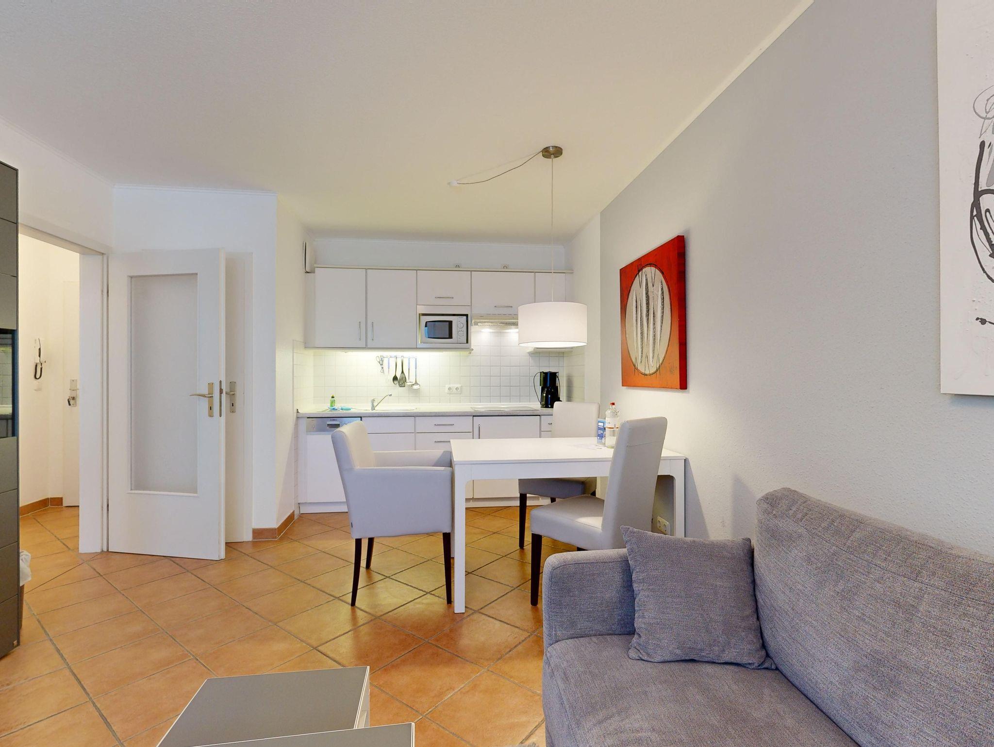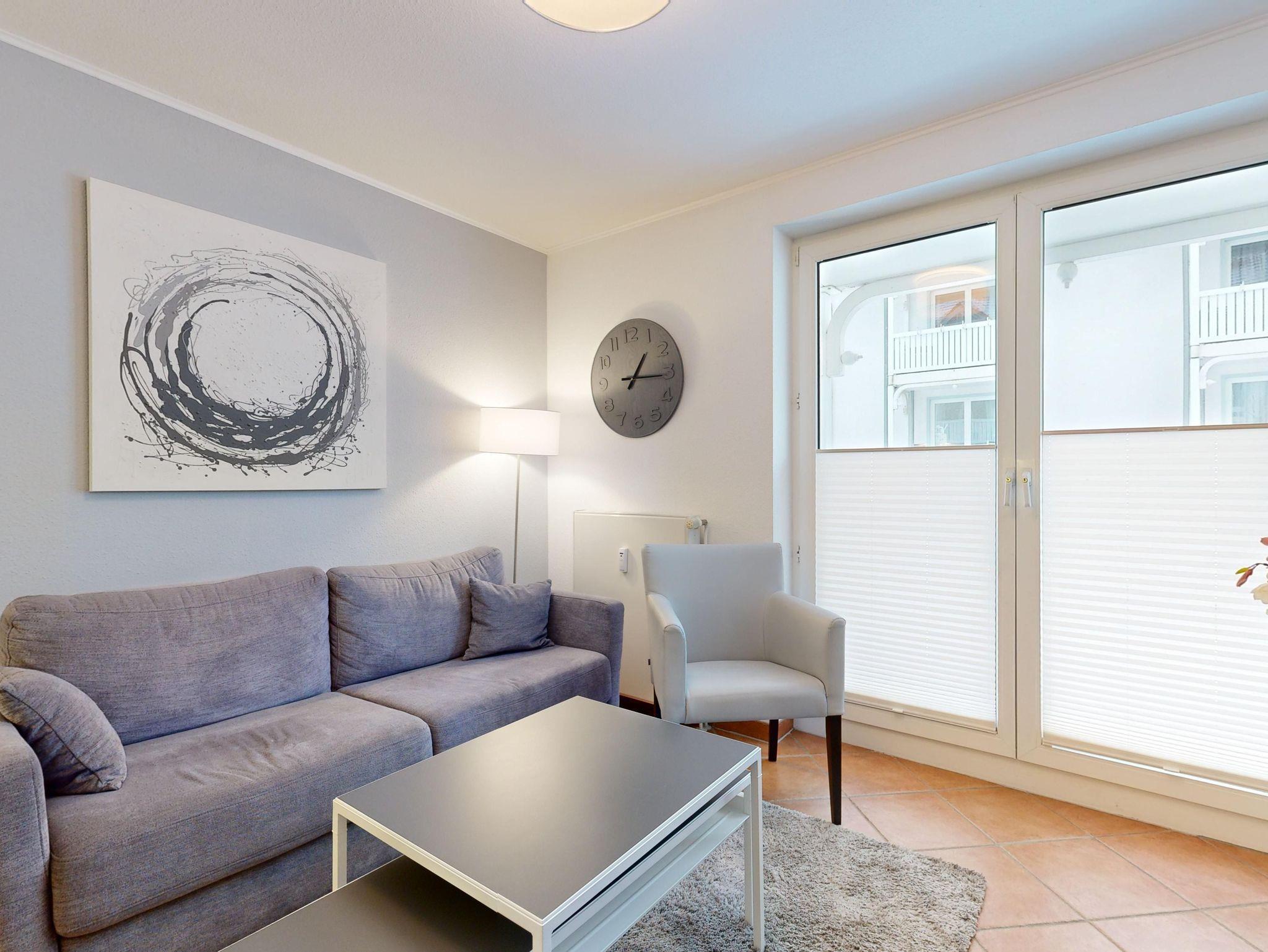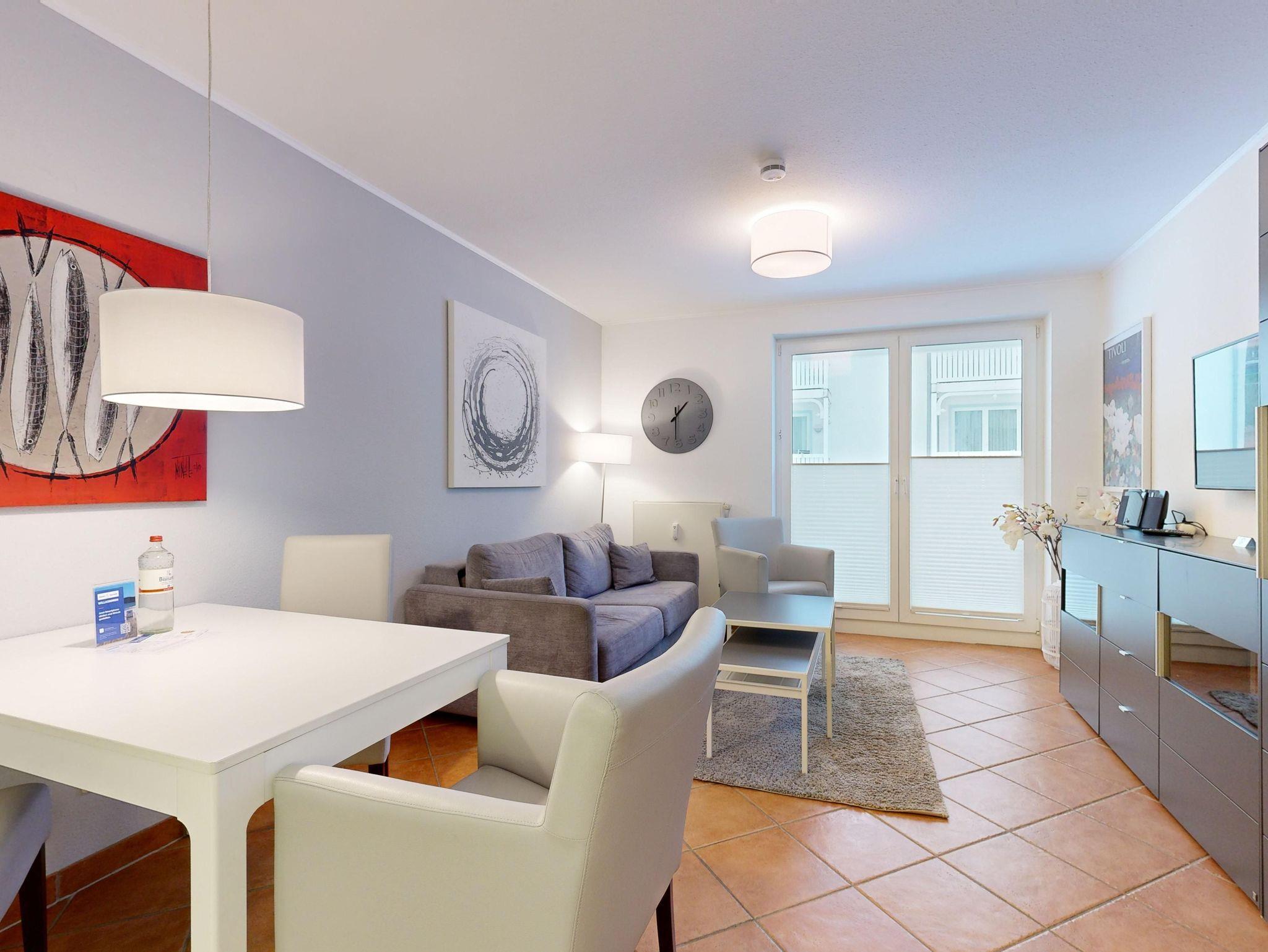 Komfort-Ferienwohnung im Erdgeschoss, Typ A (2 Zimmer / 40 m²) des Appartementhauses Binzer Sterne, 1 Schlafzimmer, Parkplatz (gegen Gebühr) und freies WLAN.